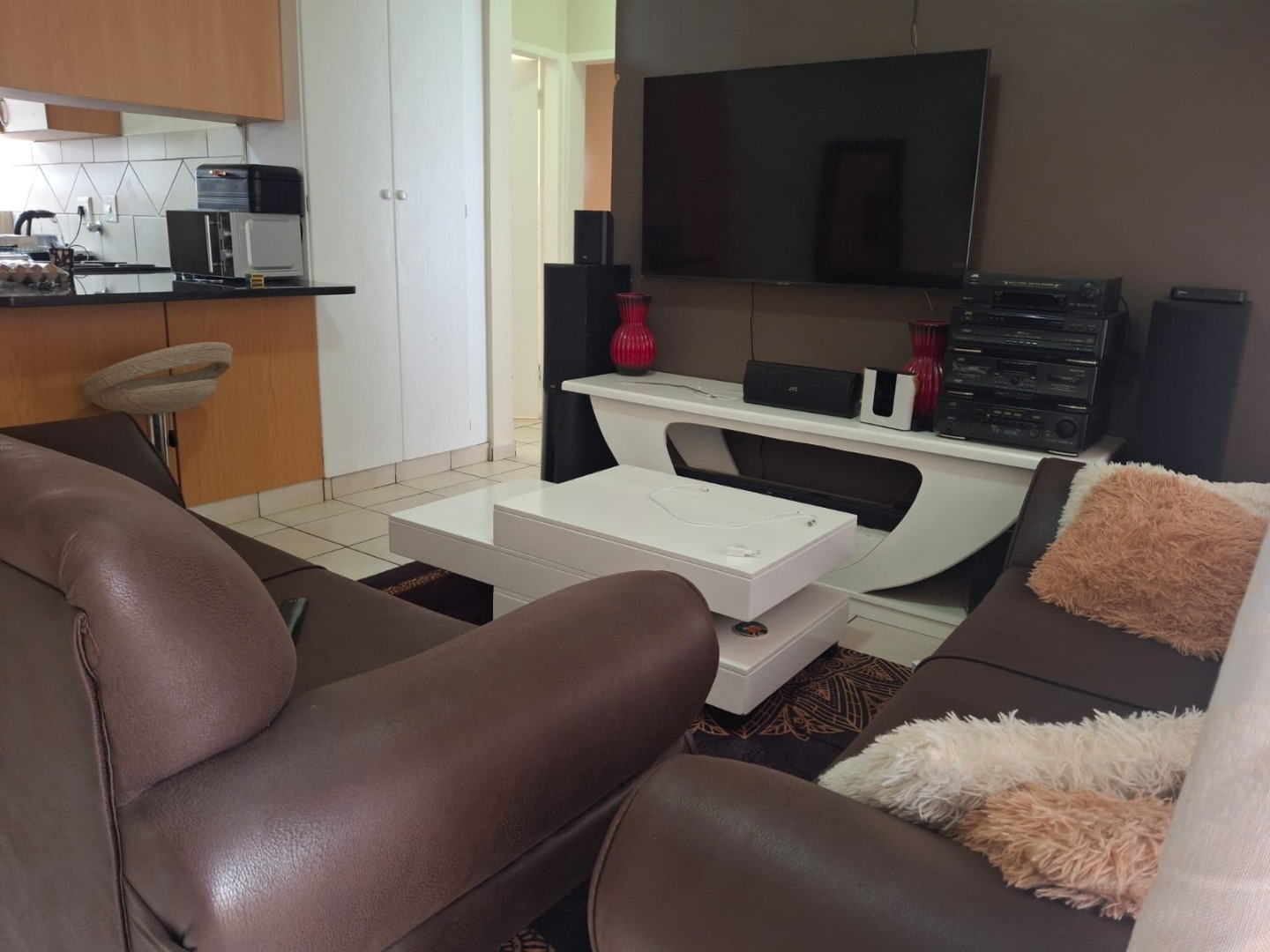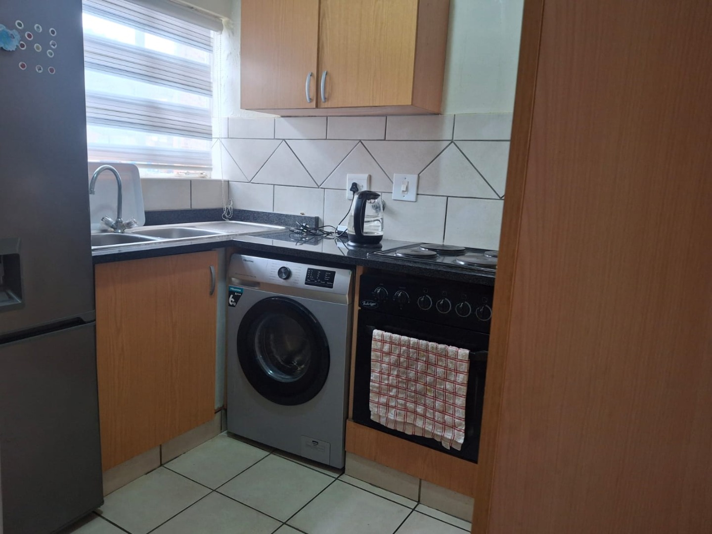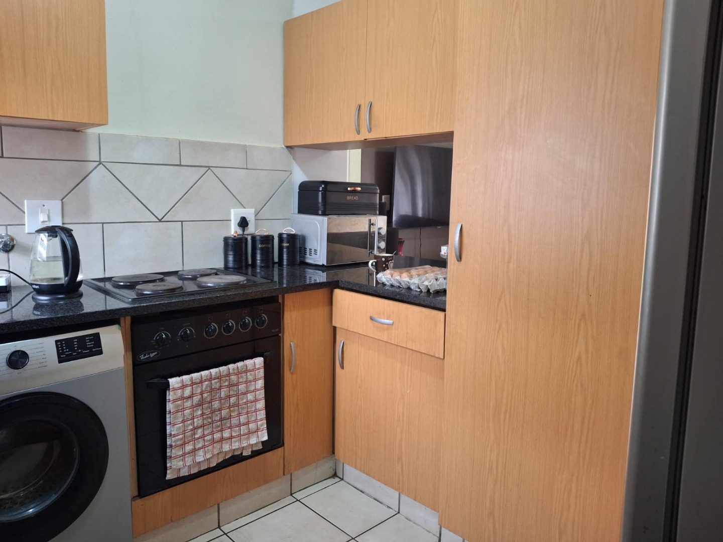 Discover this inviting 2-bedroom, 1-bathroom home located in the suburban area of Clarina, Akasia. The residence features an open-plan lounge and a functional kitchen, complete with light wood-look cabinetry, an integrated washing machine, electric hob, and oven. Tiled flooring extends throughout the property for easy maintenance. Step outside to a private garden and paved patio area, perfect for outdoor enjoyment, complemented by access to a communal pool. Security is enhanced with an access gate, electric fencing, and 24-hour security, ensuring peace of mind. This property also offers two parking spaces and allows pets.