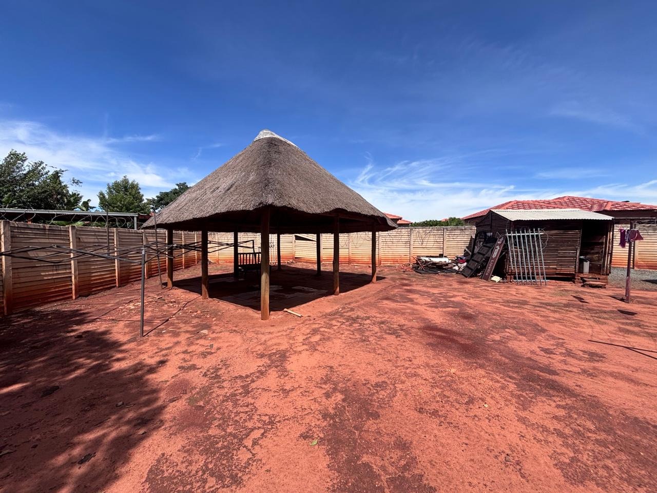 The backyard is a true opportunity for expansion, complete with a quaint Wendy house and a delightful thatch lapa, perfect for hosting unforgettable gatherings.
