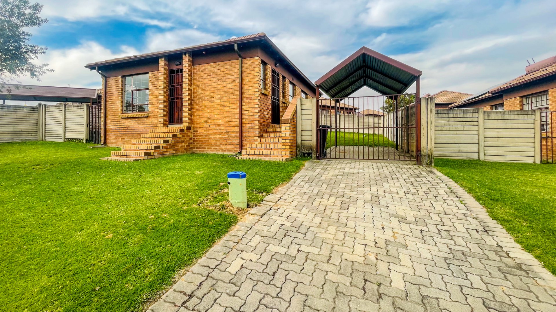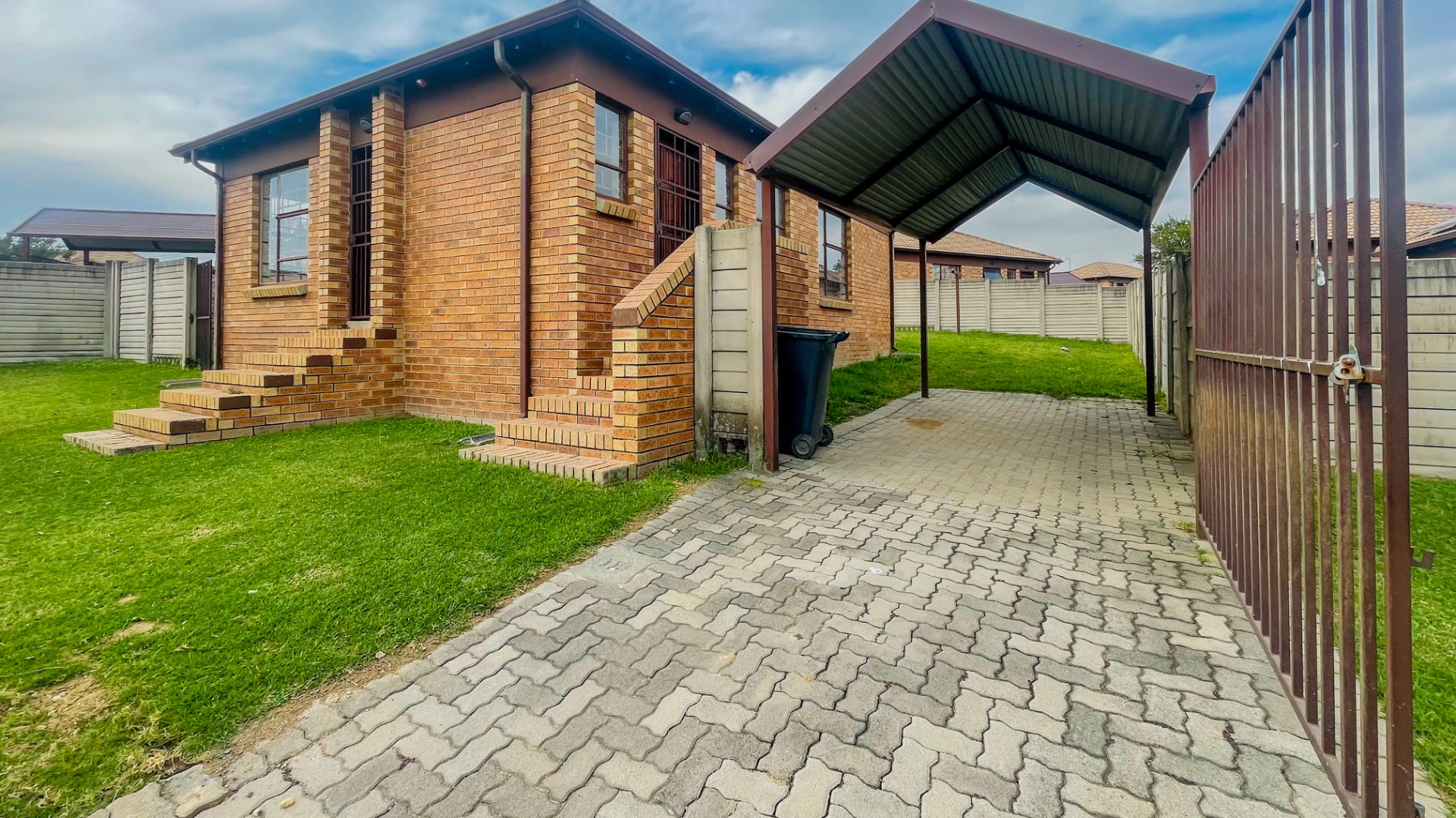 This meticulously maintained residence, situated within the esteemed Thatch Hill Estate in Centurion, presents an exceptional opportunity for secure and sophisticated living. The property immediately impresses with its durable brick exterior, a well-maintained lawn, and a paved driveway leading to a covered carport. Enhanced security is evident through the presence of a security gate and robust security bars on all windows and doors, ensuring peace of mind within this gated community.