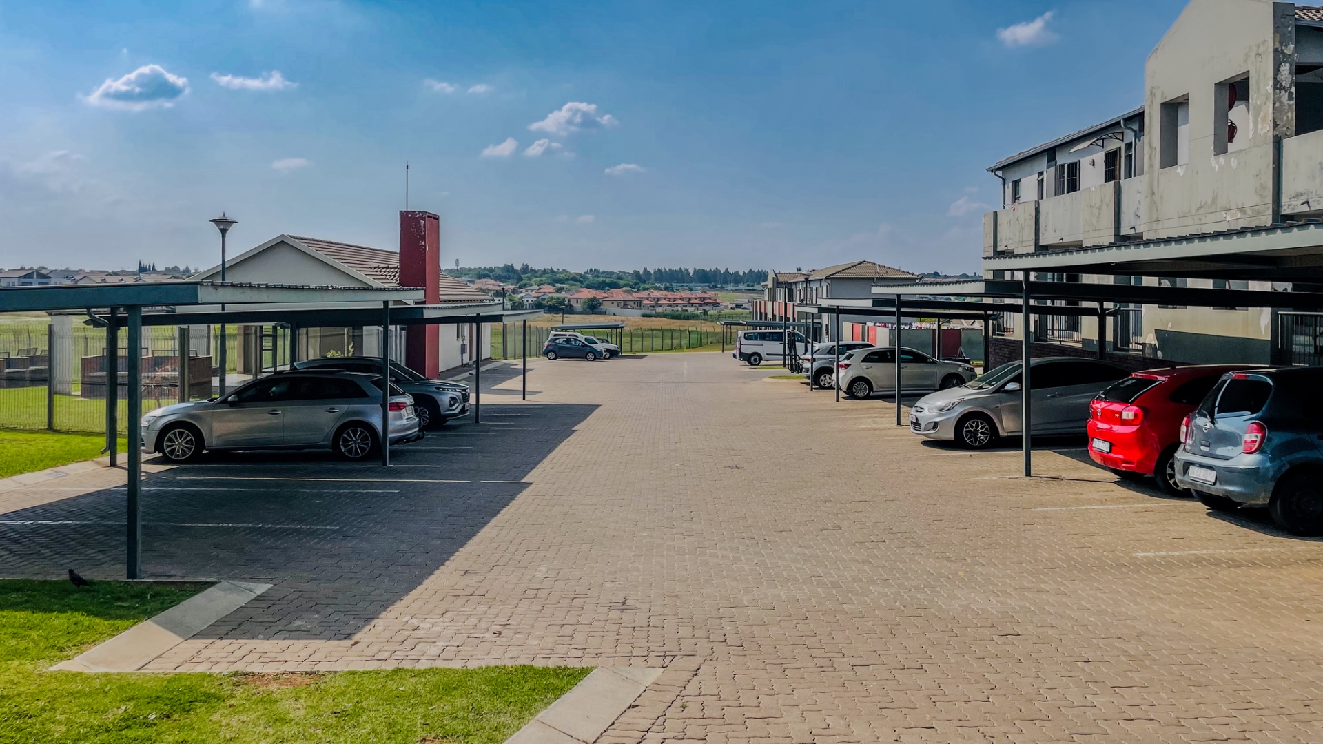 Externally, the property includes one designated parking space, offering convenient vehicle accommodation. While individual garages are not a feature, the complex provides ample paved parking areas, some of which include covered carports, as evidenced by the visual documentation. Residents can also enjoy the estate's well-maintained common green spaces and neat landscaping, which contribute to a pleasant communal aesthetic and enhance the overall living experience.