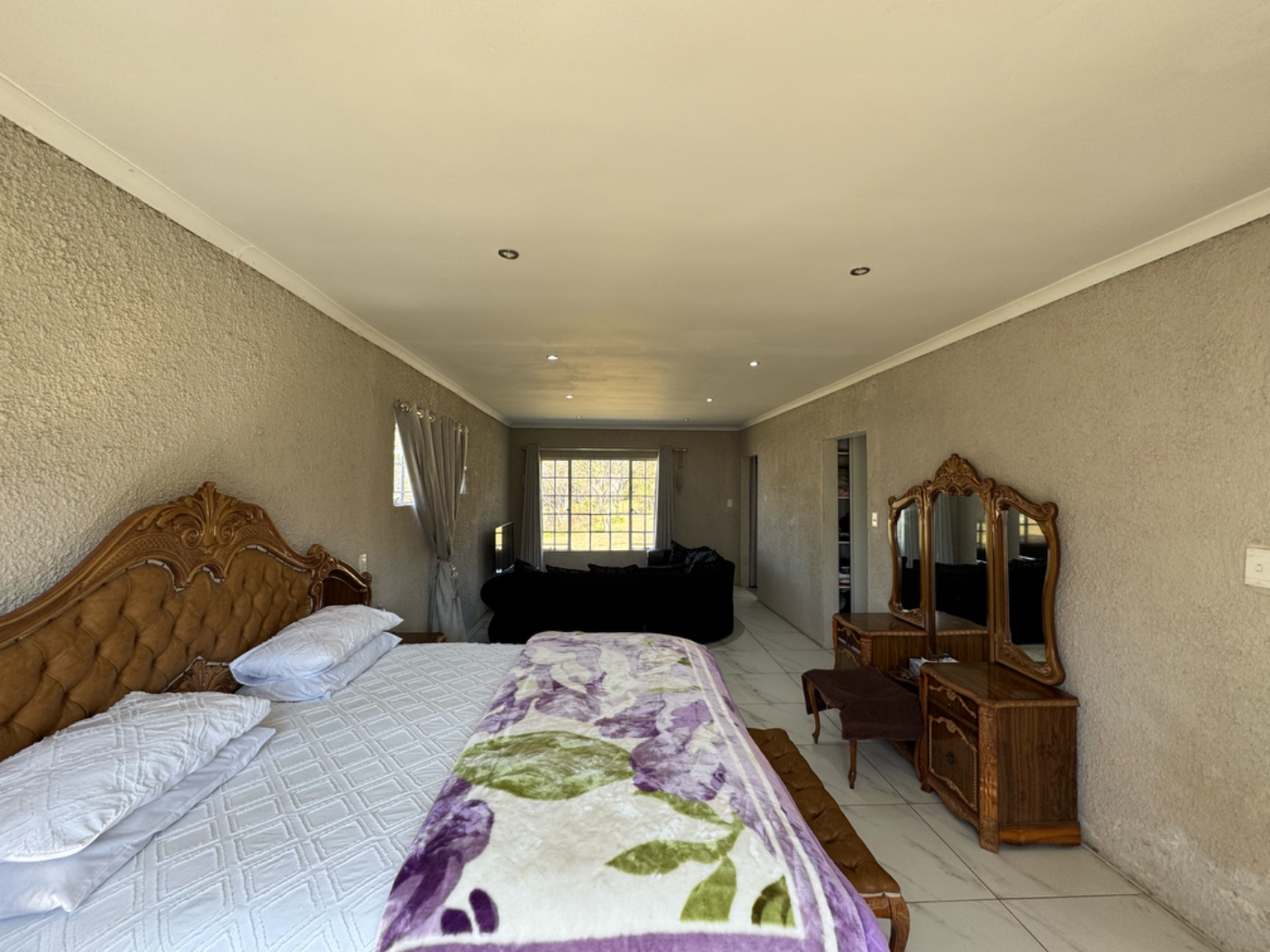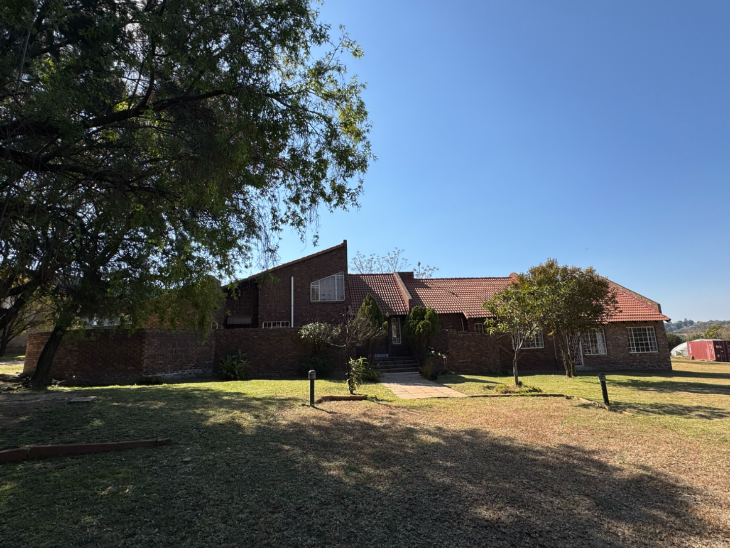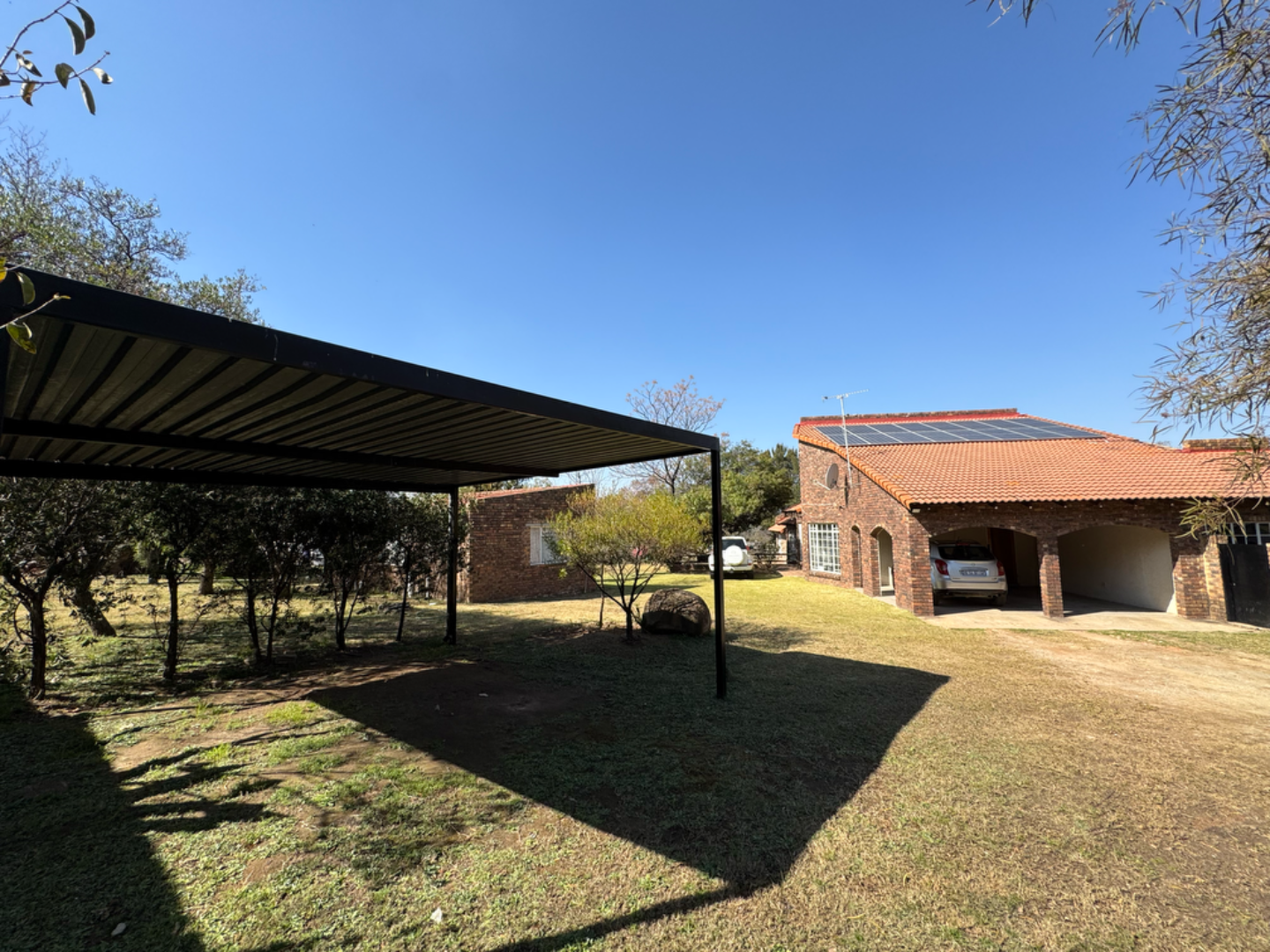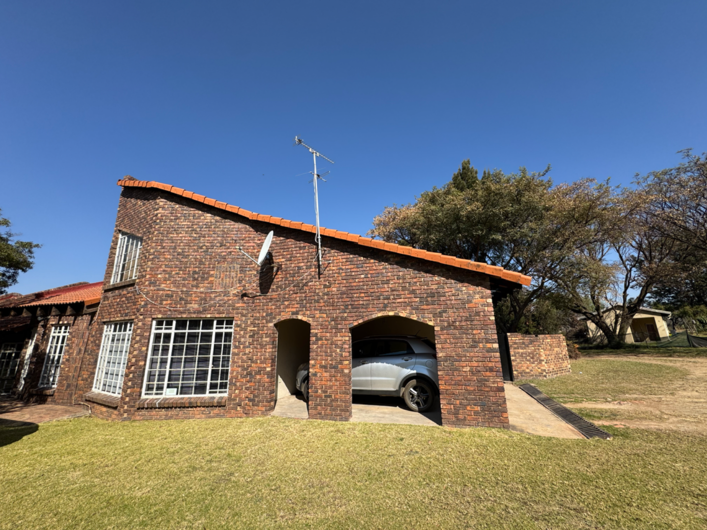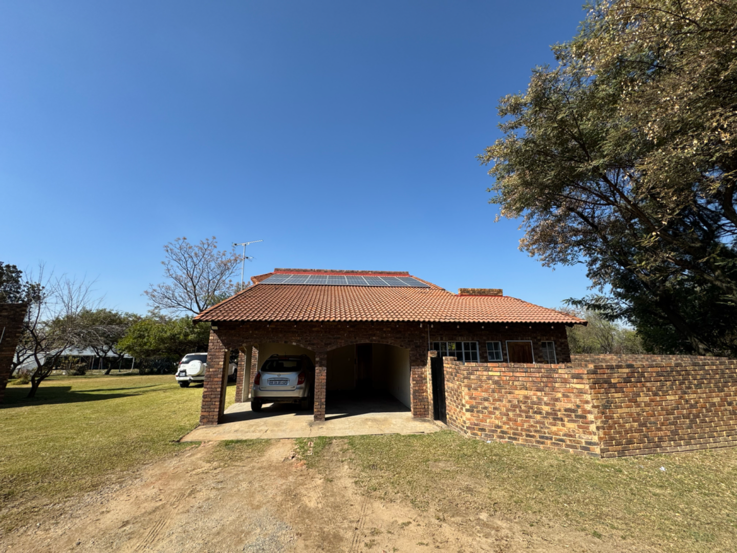 This expansive property offers dual-living potential with 2 spacious homes, ideal for the extended family, rental income or even a home-business set-up. Main House features: 5 spacious bedrooms + loft. Massive lounge & dining room - ideal for entertaining. Neat kitchen with gas and electric stove, eye level oven, scullery and spacious laundry. Main bedroom retreat: en-suite, private pajama lounge and study. Big windows flood the home with natural light. 2 full bathrooms + guest toilet. Fully tiled throughout. Outside room + toilet. Double carport. Functional alarm system for peace of mind. Eco friendly extra's - 16 panel solar system with 8kVA inverter and 2 batteries. Second Home: 3 bedrooms. Kitchen with ample cupboard space. 2 Bedrooms (main en-suite) Double Carport. Outside potential galore: Huge open space perfect for agriculture use, crops or animals. 2 Greenhouse frames (30m x 10m each) - poly sheeting needs replacing. 2 strong boreholes (1 in active use) Septic tank system. DEVELOPMENT HIGHLIGHT: With ample land and layout, this property holds huge potential for housing development.