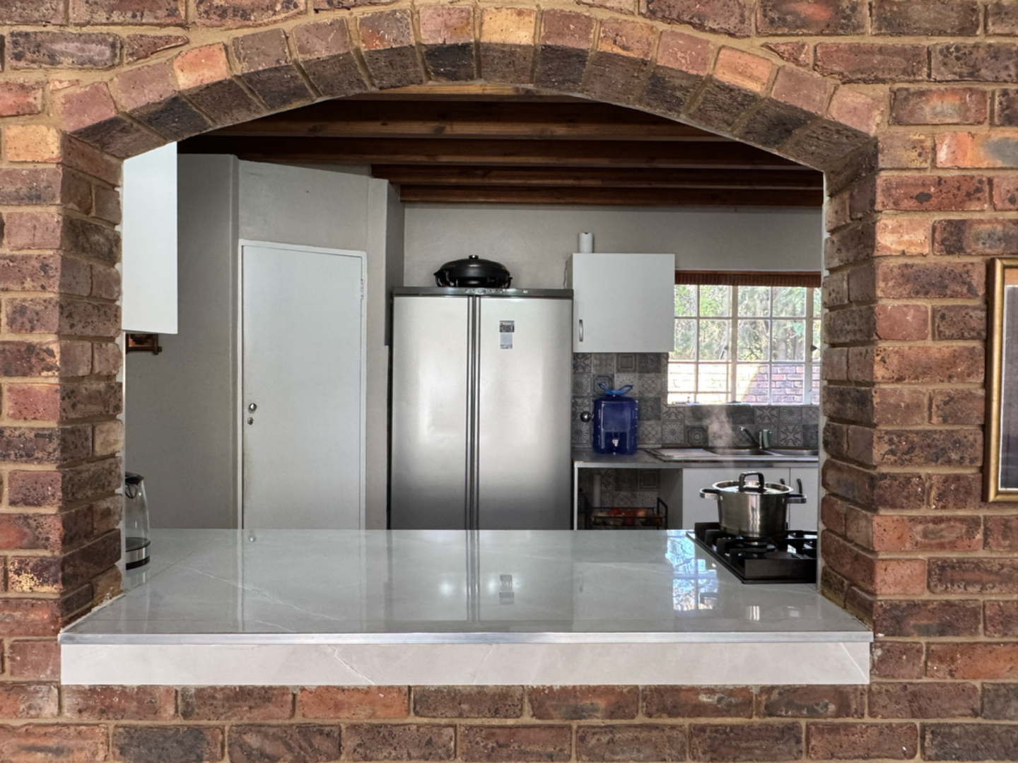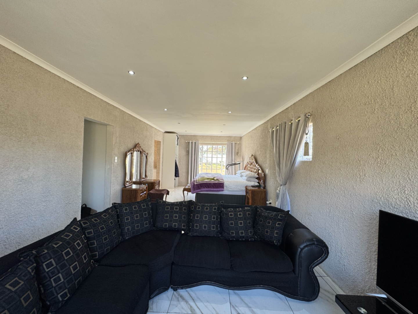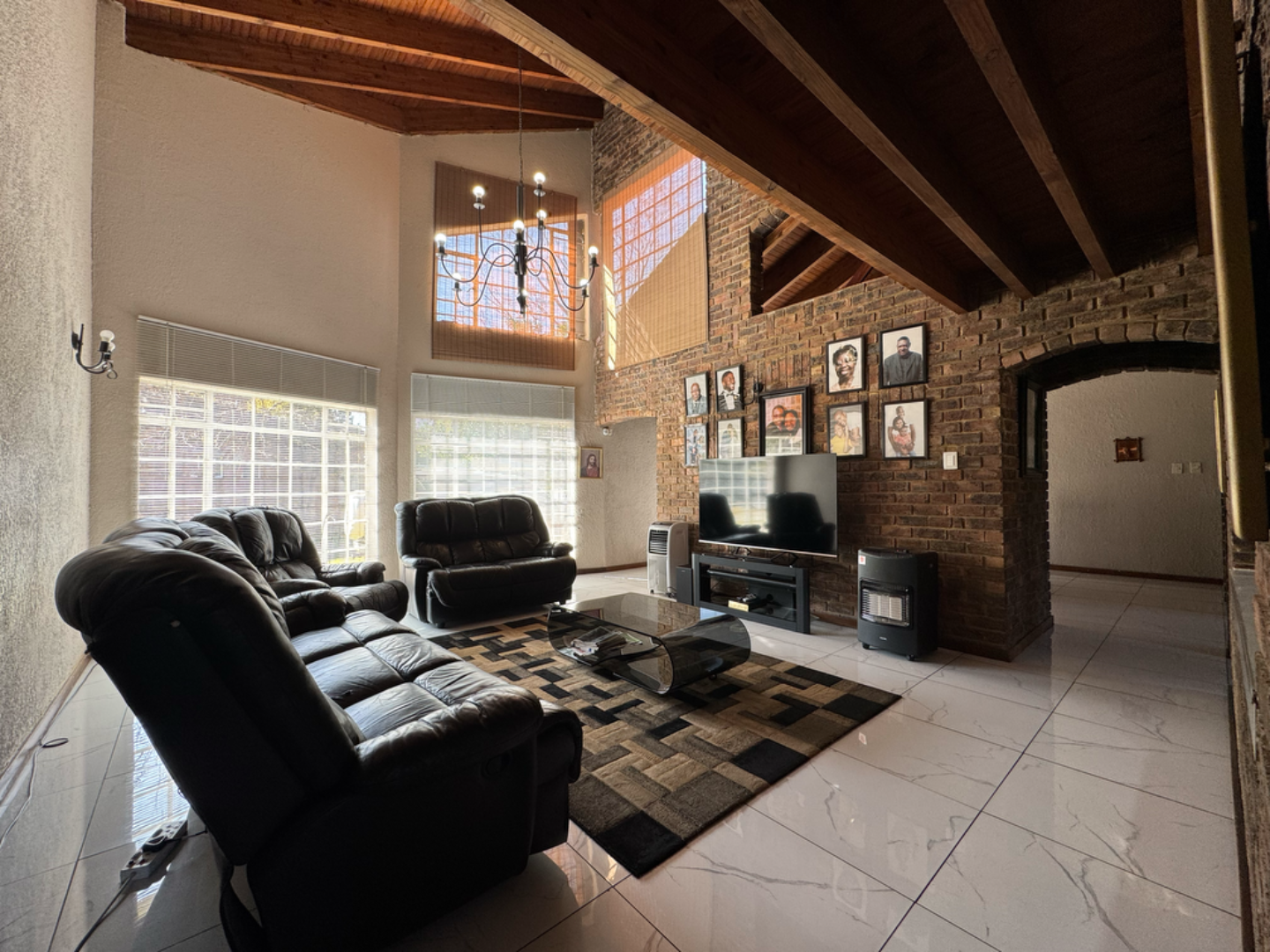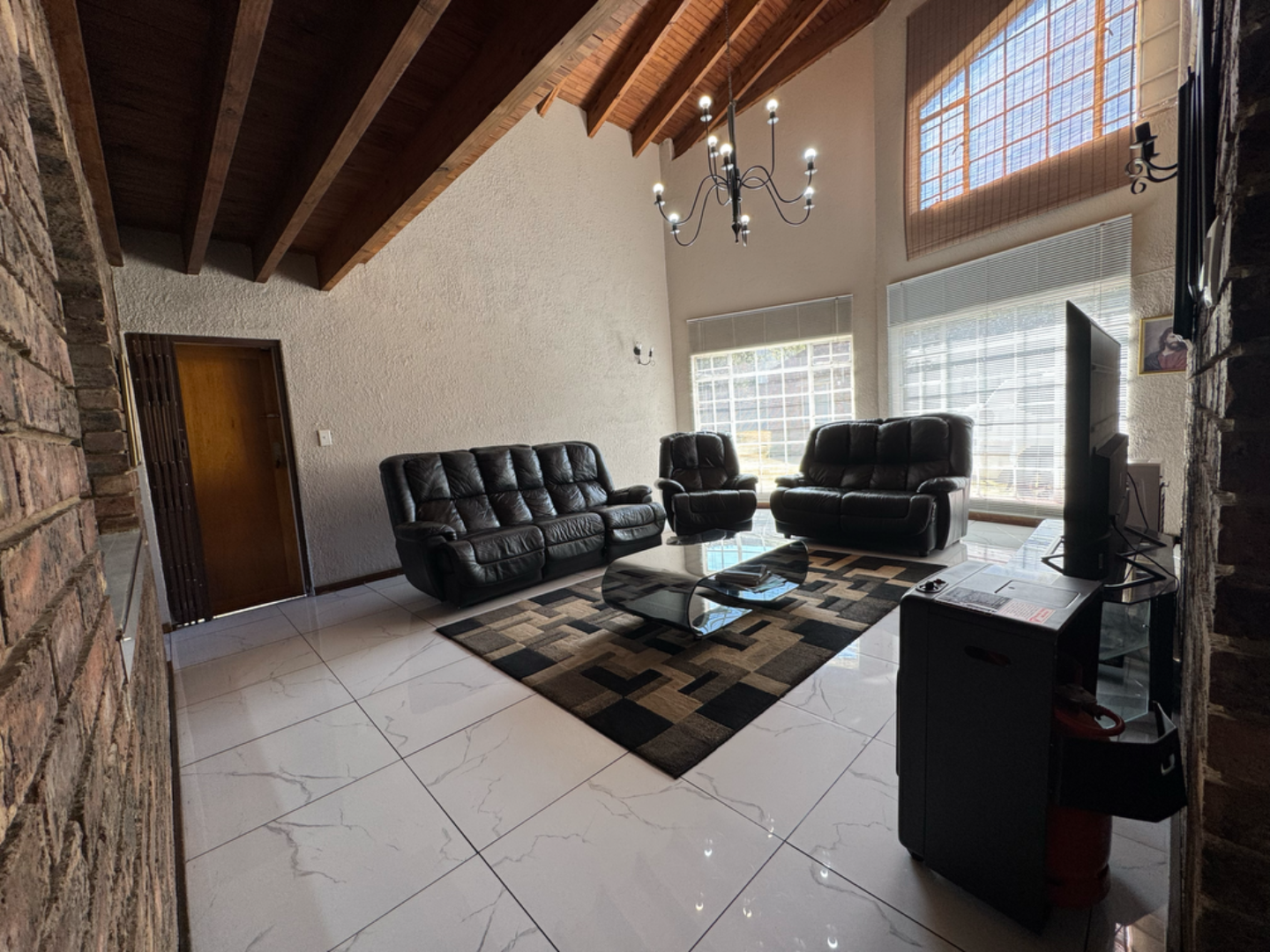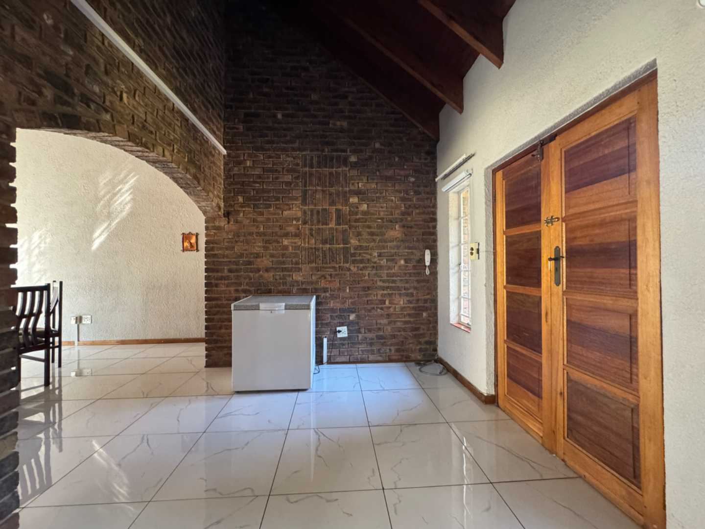 This expansive property offers dual-living potential with 2 spacious homes, ideal for the extended family, rental income or even a home-business set-up. Main House features: 5 spacious bedrooms + loft. Massive lounge & dining room - ideal for entertaining. Neat kitchen with gas and electric stove, eye level oven, scullery and spacious laundry. Main bedroom retreat: en-suite, private pajama lounge and study. Big windows flood the home with natural light. 2 full bathrooms + guest toilet. Fully tiled throughout. Outside room + toilet. Double carport. Functional alarm system for peace of mind. Eco friendly extra's - 16 panel solar system with 8kVA inverter and 2 batteries. Second Home: 3 bedrooms. Kitchen with ample cupboard space. 2 Bedrooms (main en-suite) Double Carport. Outside potential galore: Huge open space perfect for agriculture use, crops or animals. 2 Greenhouse frames (30m x 10m each) - poly sheeting needs replacing. 2 strong boreholes (1 in active use) Septic tank system. DEVELOPMENT HIGHLIGHT: With ample land and layout, this property holds huge potential for housing development.