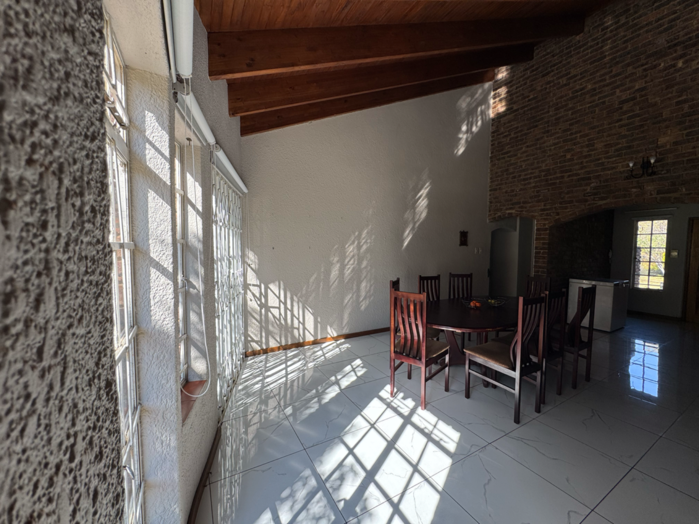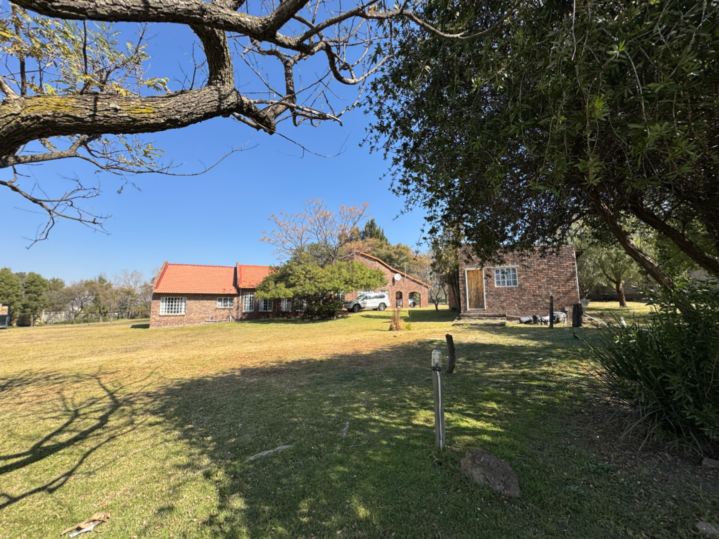 This expansive property offers dual-living potential with 2 spacious homes, ideal for the extended family, rental income or even a home-business set-up. Main House features: 5 spacious bedrooms + loft. Massive lounge & dining room - ideal for entertaining. Neat kitchen with gas and electric stove, eye level oven, scullery and spacious laundry. Main bedroom retreat: en-suite, private pajama lounge and study. Big windows flood the home with natural light. 2 full bathrooms + guest toilet. Fully tiled throughout. Outside room + toilet. Double carport. Functional alarm system for peace of mind. Eco friendly extra's - 16 panel solar system with 8kVA inverter and 2 batteries. Second Home: 3 bedrooms. Kitchen with ample cupboard space. 2 Bedrooms (main en-suite) Double Carport. Outside potential galore: Huge open space perfect for agriculture use, crops or animals. 2 Greenhouse frames (30m x 10m each) - poly sheeting needs replacing. 2 strong boreholes (1 in active use) Septic tank system. DEVELOPMENT HIGHLIGHT: With ample land and layout, this property holds huge potential for housing development.