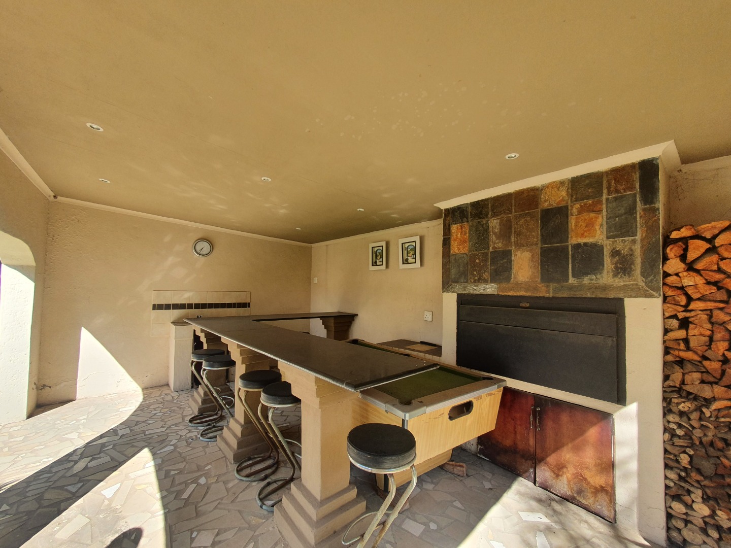undercover patio with build in braai and bar