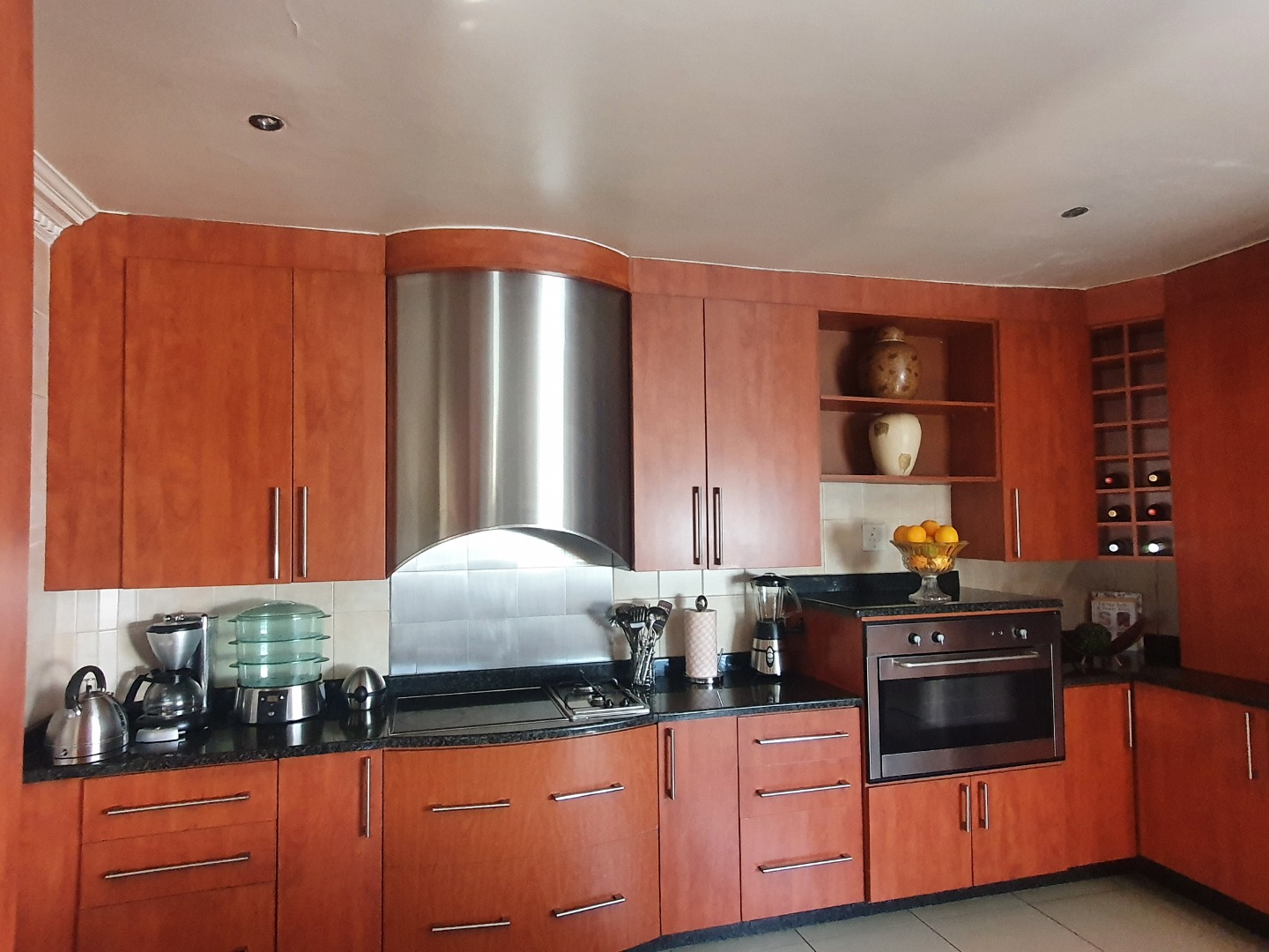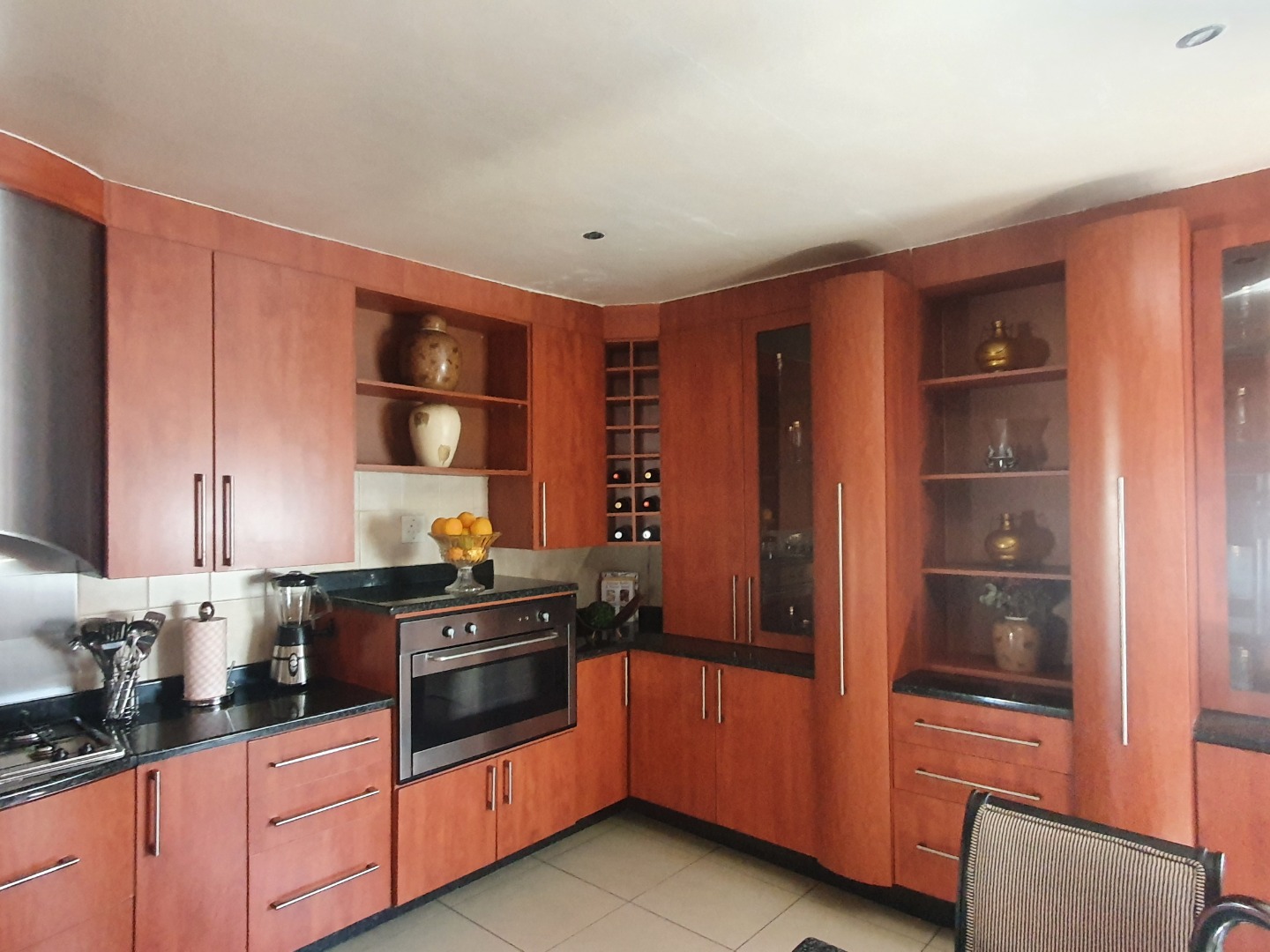 The kitchen is fitted with ample of BIC and granite, gas stove and scullery