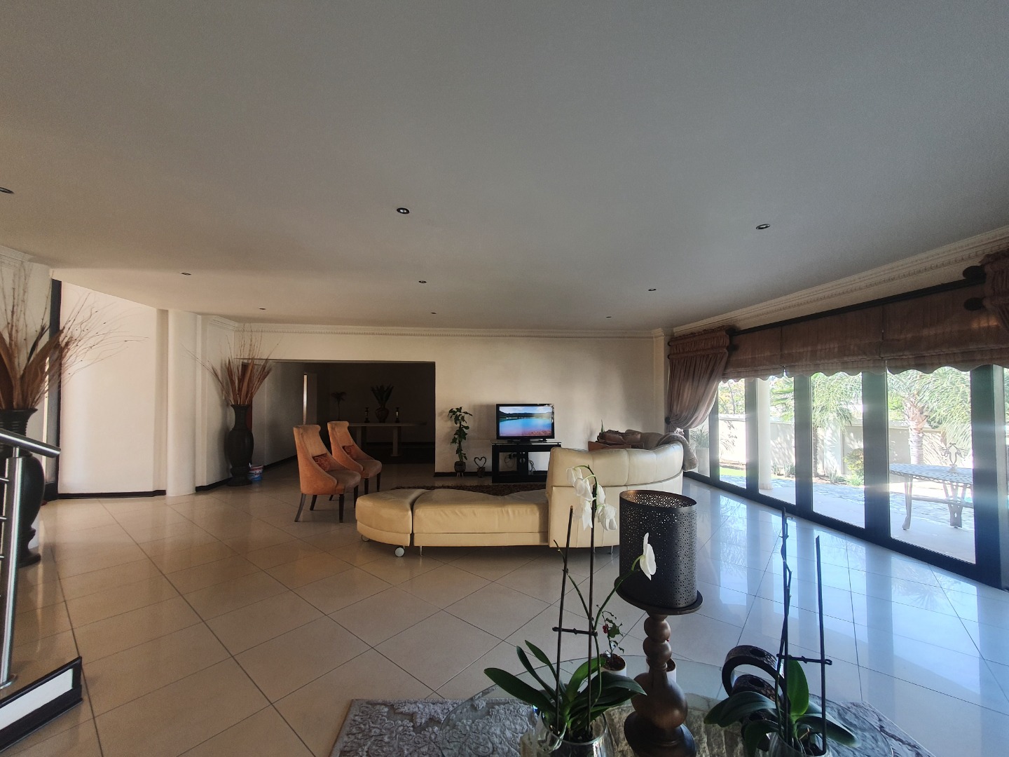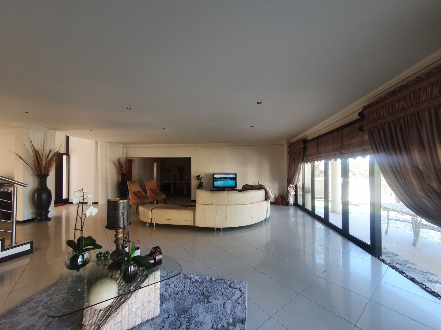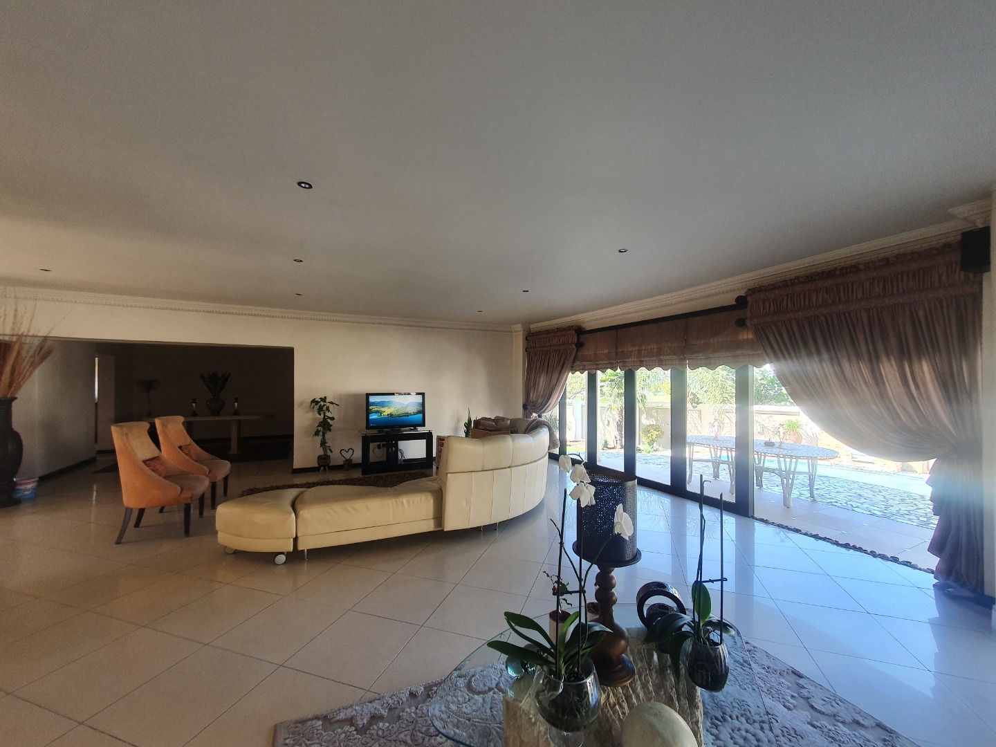 the dining room is open plan to the lounge which leads to the patio and entertainment area