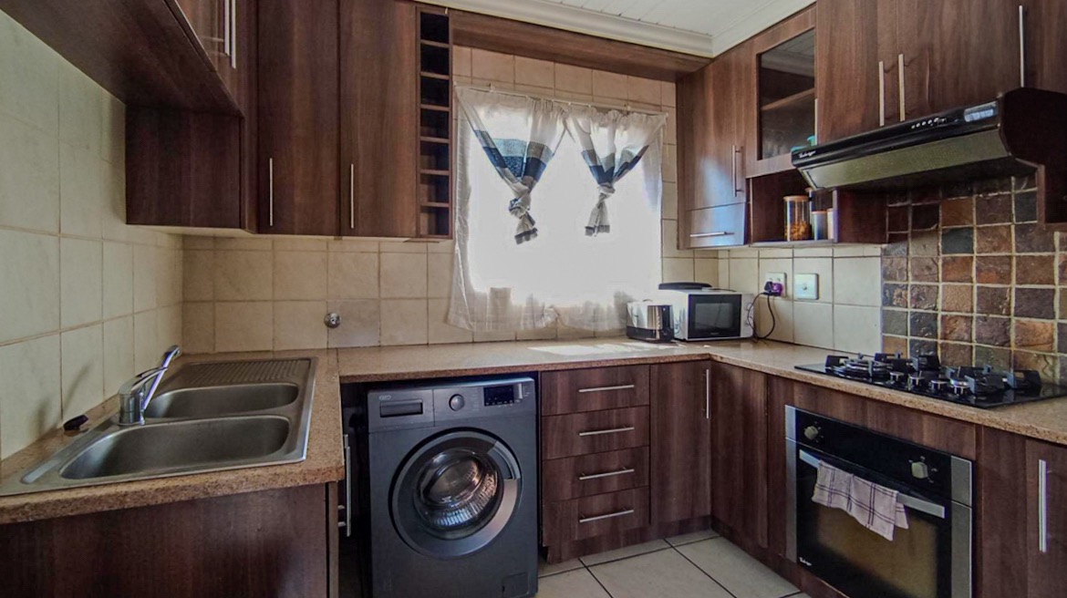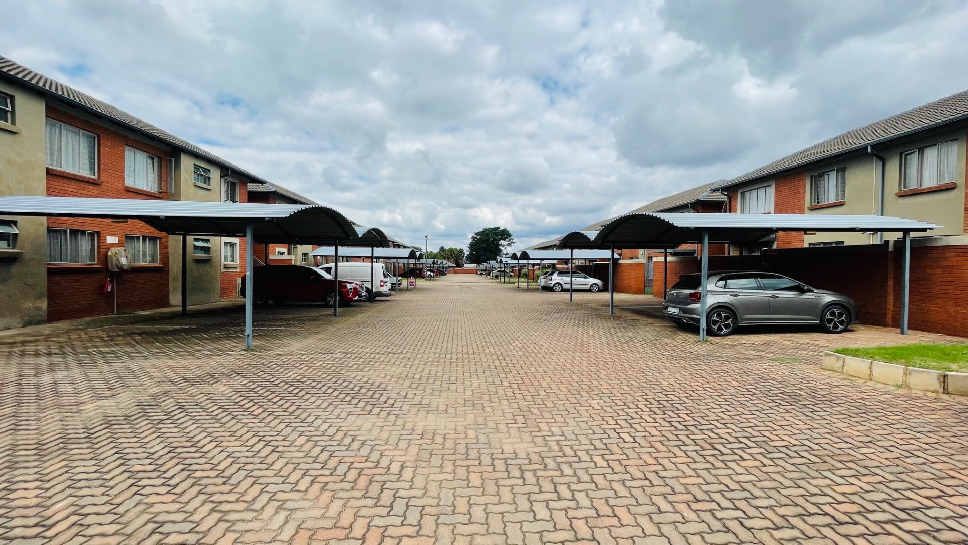 This meticulously presented two-bedroom, one-bathroom residence offers a refined living experience within a secure complex in Andeon, Pretoria. The property boasts robust kerb appeal with its multi-story brick construction, tiled roofs, and extensive brick paving throughout the common areas. A dedicated security guardhouse at the gated entrance ensures controlled access, complemented by perimeter fencing and security bars on windows, providing residents with enhanced peace of mind. Ample covered carport parking is available, underscoring convenience and protection for vehicles.