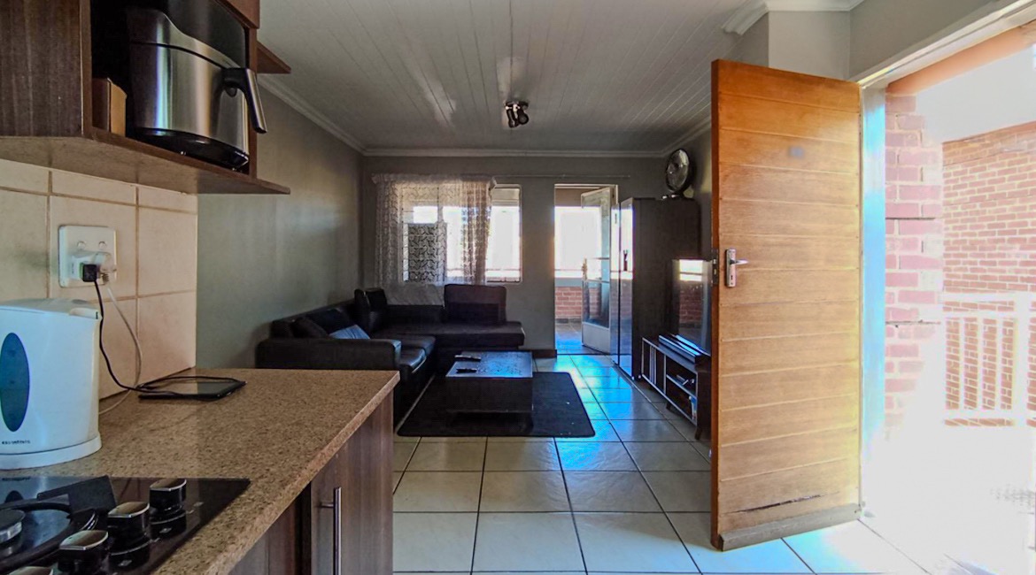 This meticulously presented two-bedroom, one-bathroom residence offers a refined living experience within a secure complex in Andeon, Pretoria. The property boasts robust kerb appeal with its multi-story brick construction, tiled roofs, and extensive brick paving throughout the common areas. A dedicated security guardhouse at the gated entrance ensures controlled access, complemented by perimeter fencing and security bars on windows, providing residents with enhanced peace of mind. Ample covered carport parking is available, underscoring convenience and protection for vehicles.