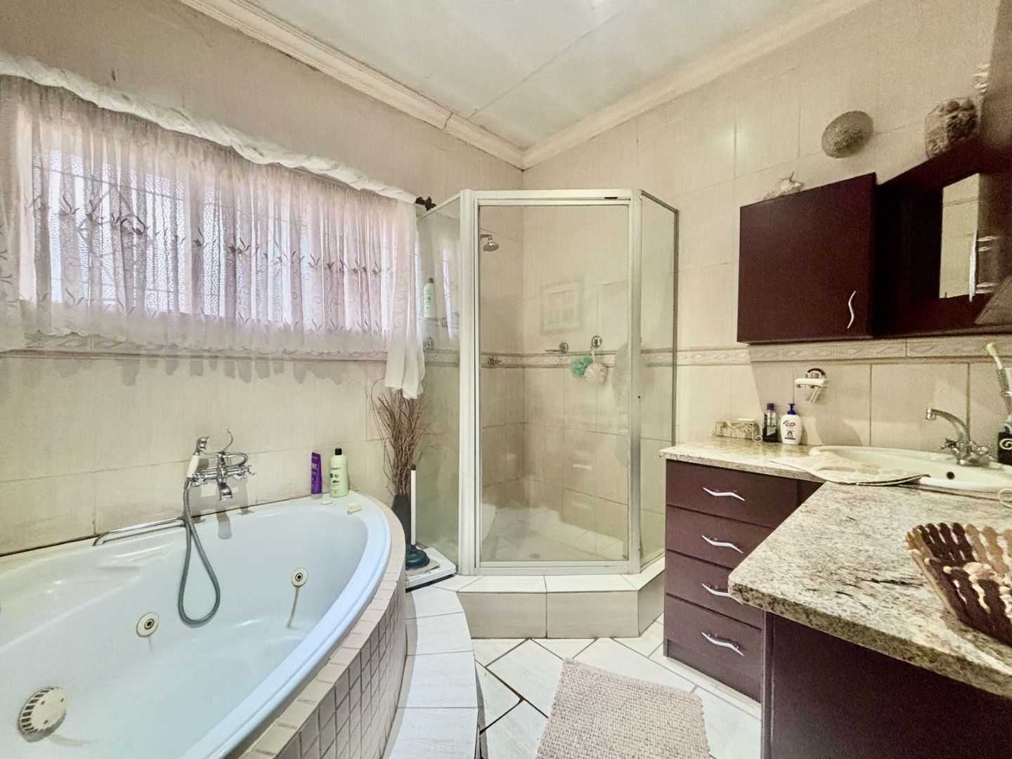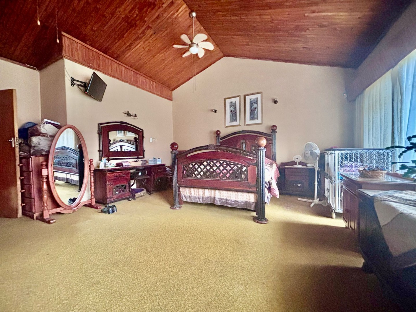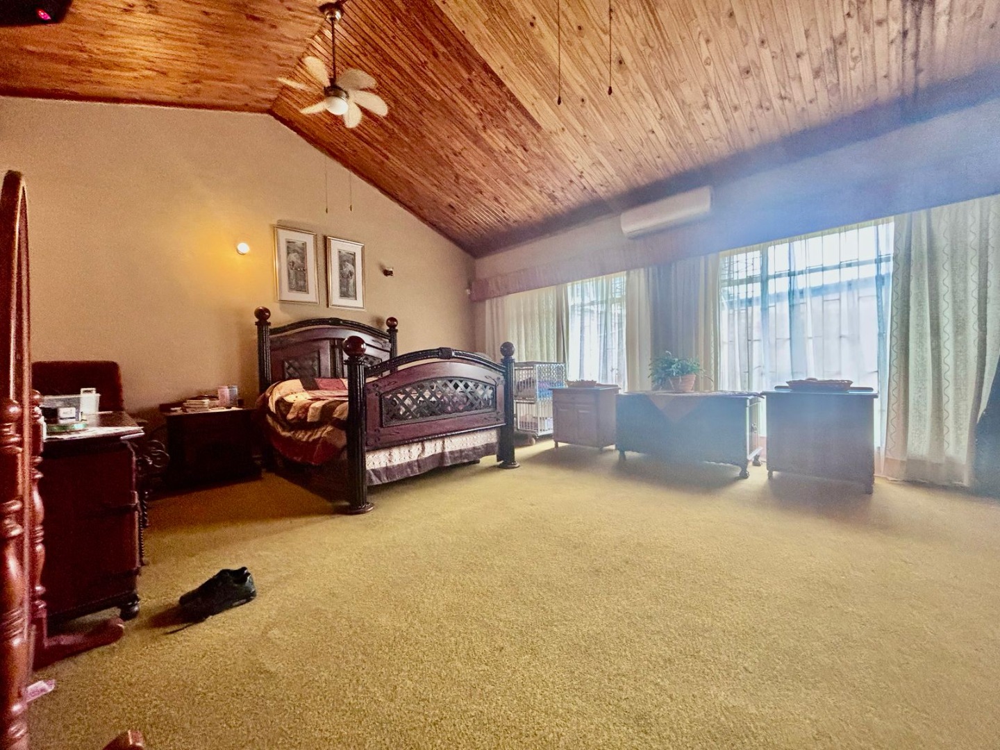 This impressive 8-bedroom, 6-bathroom residence in Andeon, Pretoria, offers a unique blend of country living and suburban convenience. The property immediately captivates with its well-maintained exterior, featuring a classic terracotta tiled roof, a light-coloured facade complemented by brick accents, and a welcoming paved driveway. Mature trees provide natural shade, enhancing the serene atmosphere, while a charming separate thatched-roof structure adds character and versatility to the expansive 20000 sqm erf. Step inside to discover a generously proportioned interior designed for comfortable family living and entertaining. The home boasts three distinct lounges and three dining rooms, providing ample space for various activities and gatherings. An inviting family TV room and an open-plan layout contribute to a seamless flow. The heart of the home features three well-appointed kitchens, each offering extensive light wood cabinetry, practical granite-look countertops, and large central islands with seating. These culinary spaces are equipped with integrated ovens and hobs, ample storage, and dedicated areas for multiple full-sized refrigerators, complemented by a scullery and pantry for ultimate convenience. Accommodation includes eight spacious bedrooms and six bathrooms, with two ensuites ensuring privacy and comfort. A dedicated study provides an ideal space for work or quiet contemplation. The property further benefits from a flatlet, offering potential for extended family or rental income, along with staff quarters, a dedicated laundry room, and ample storage solutions. For leisure and entertainment, enjoy the convenience of a braai room and a lapa, perfect for outdoor gatherings. Additional practical features include a wendy house and a garden. The outdoor areas are designed for enjoyment, featuring a well-maintained garden and offering scenic views. With two garages and an impressive 24 parking spaces, accommodating vehicles is never an issue. Security is paramount, with a perimeter fence, CCTV surveillance, and burglar bars on windows and gates providing peace of mind. Embracing modern sustainability, the property is equipped with solar panels, a battery inverter, and water tanks, ensuring energy efficiency and water resilience. A borehole further enhances self-sufficiency. Key Features: * 8 Bedrooms, 6 Bathrooms (2 Ensuites, 1 Guest Toilet) * 3 Kitchens, 3 Lounges, 3 Dining Rooms * Expansive 20000 sqm Erf * 2 Garages, 24 Parking Spaces * Solar Panels, Battery Inverter, Water Tanks, Borehole * Flatlet, Staff Quarters, Study, Laundry, Storage * Braai Room, Lapa, Wendy House, Garden * CCTV, Burglar Bars, Fence, Scenic View * Ideal for Country Living in a Suburban Setting