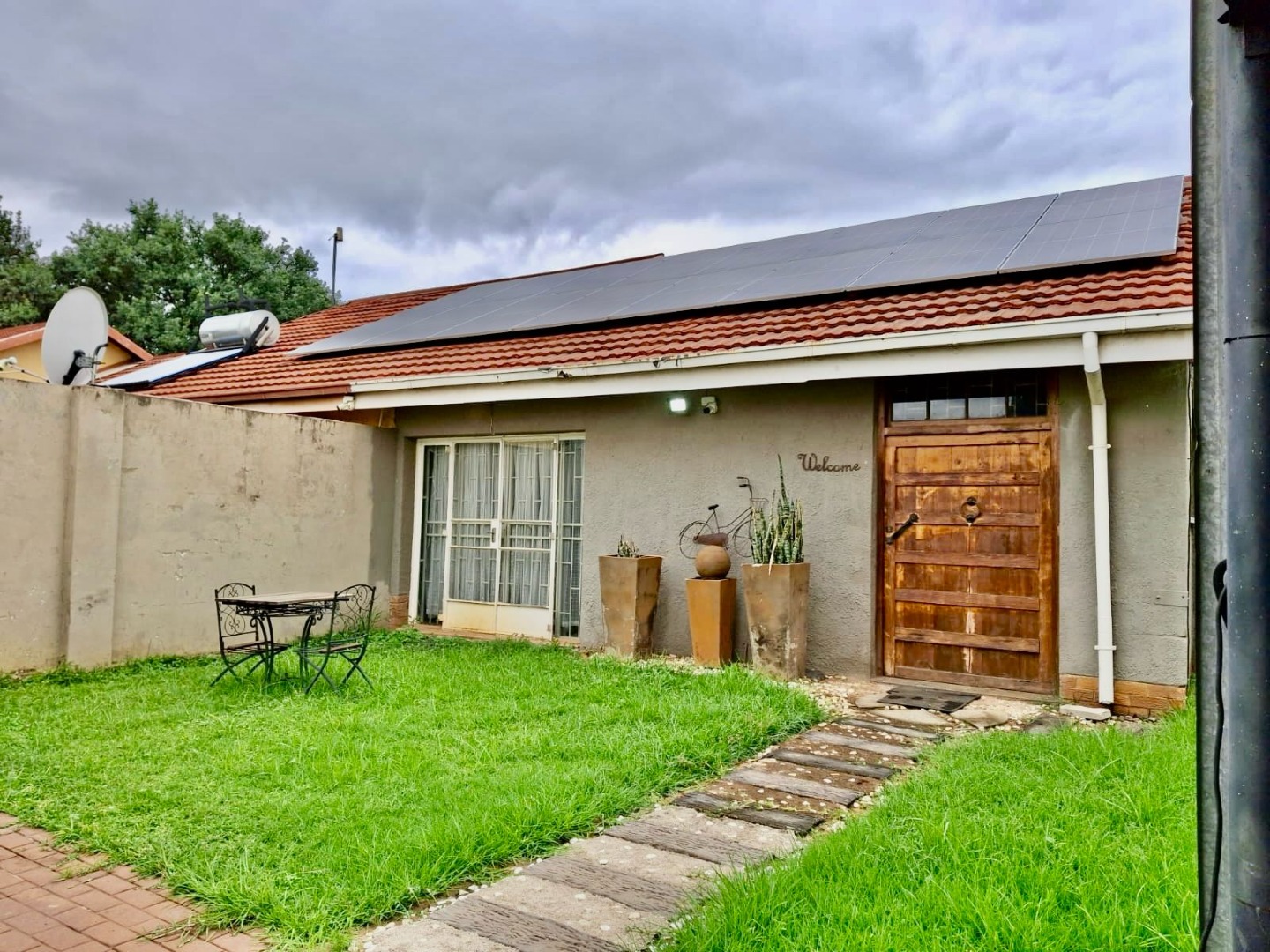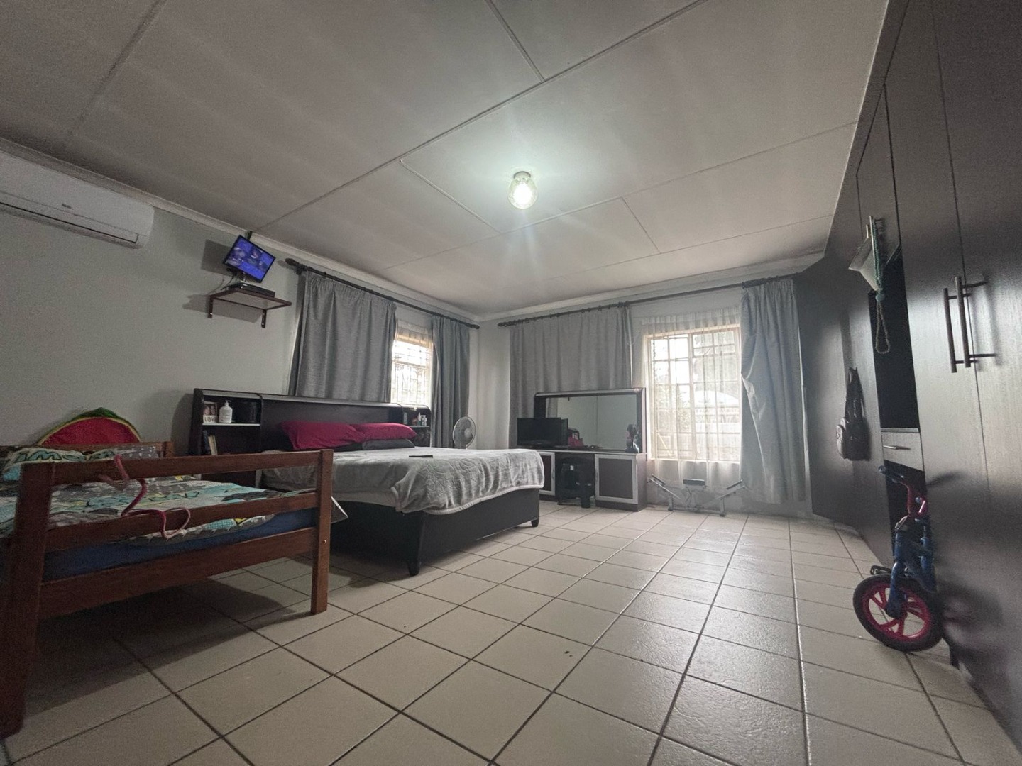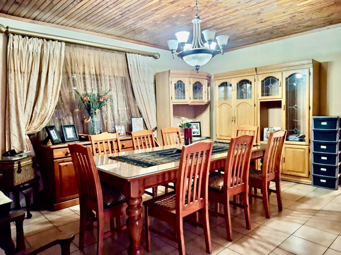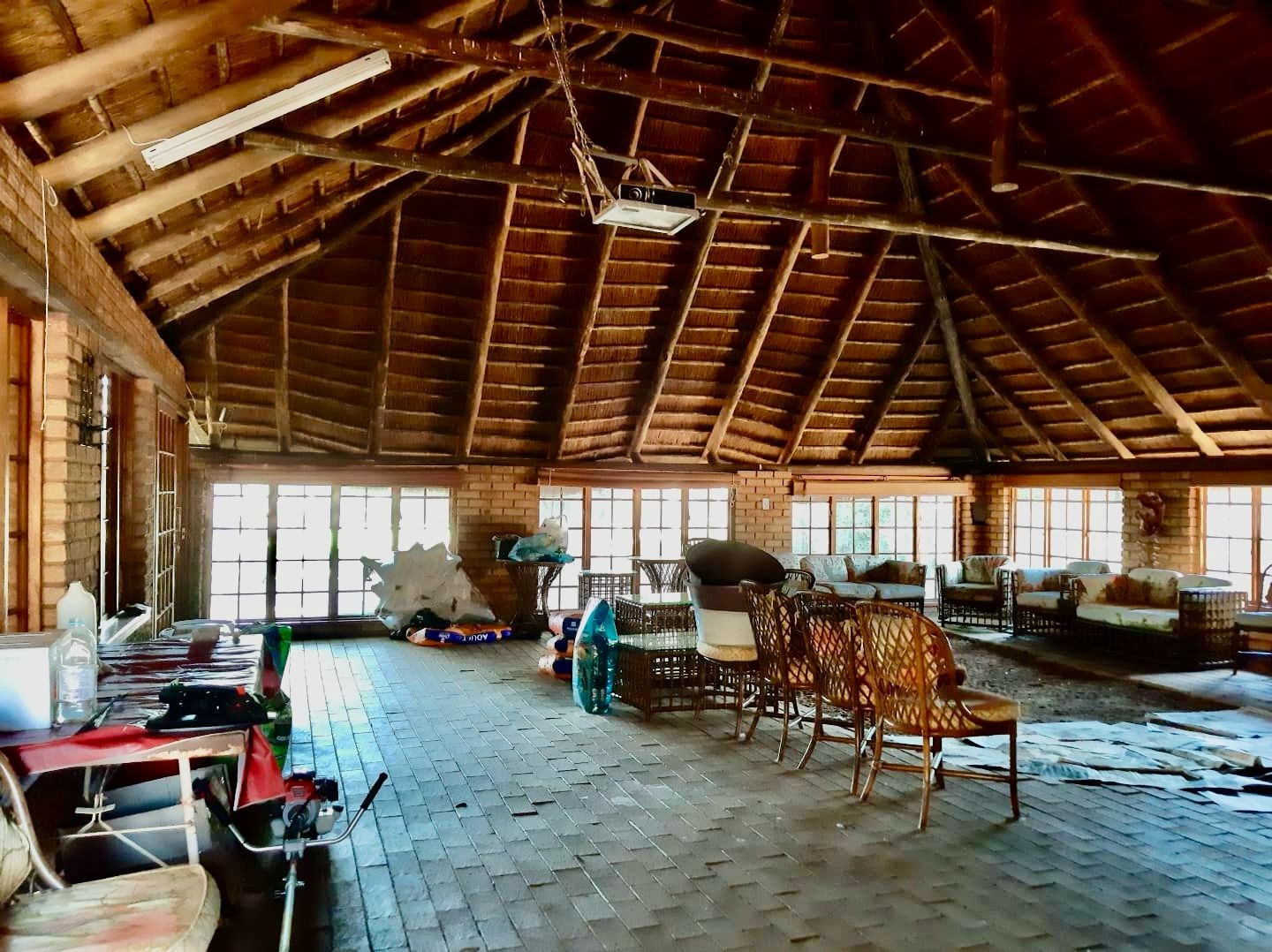 This impressive 8-bedroom, 6-bathroom residence in Andeon, Pretoria, offers a unique blend of country living and suburban convenience. The property immediately captivates with its well-maintained exterior, featuring a classic terracotta tiled roof, a light-coloured facade complemented by brick accents, and a welcoming paved driveway. Mature trees provide natural shade, enhancing the serene atmosphere, while a charming separate thatched-roof structure adds character and versatility to the expansive 20000 sqm erf. Step inside to discover a generously proportioned interior designed for comfortable family living and entertaining. The home boasts three distinct lounges and three dining rooms, providing ample space for various activities and gatherings. An inviting family TV room and an open-plan layout contribute to a seamless flow. The heart of the home features three well-appointed kitchens, each offering extensive light wood cabinetry, practical granite-look countertops, and large central islands with seating. These culinary spaces are equipped with integrated ovens and hobs, ample storage, and dedicated areas for multiple full-sized refrigerators, complemented by a scullery and pantry for ultimate convenience. Accommodation includes eight spacious bedrooms and six bathrooms, with two ensuites ensuring privacy and comfort. A dedicated study provides an ideal space for work or quiet contemplation. The property further benefits from a flatlet, offering potential for extended family or rental income, along with staff quarters, a dedicated laundry room, and ample storage solutions. For leisure and entertainment, enjoy the convenience of a braai room and a lapa, perfect for outdoor gatherings. Additional practical features include a wendy house and a garden. The outdoor areas are designed for enjoyment, featuring a well-maintained garden and offering scenic views. With two garages and an impressive 24 parking spaces, accommodating vehicles is never an issue. Security is paramount, with a perimeter fence, CCTV surveillance, and burglar bars on windows and gates providing peace of mind. Embracing modern sustainability, the property is equipped with solar panels, a battery inverter, and water tanks, ensuring energy efficiency and water resilience. A borehole further enhances self-sufficiency. Key Features: * 8 Bedrooms, 6 Bathrooms (2 Ensuites, 1 Guest Toilet) * 3 Kitchens, 3 Lounges, 3 Dining Rooms * Expansive 20000 sqm Erf * 2 Garages, 24 Parking Spaces * Solar Panels, Battery Inverter, Water Tanks, Borehole * Flatlet, Staff Quarters, Study, Laundry, Storage * Braai Room, Lapa, Wendy House, Garden * CCTV, Burglar Bars, Fence, Scenic View * Ideal for Country Living in a Suburban Setting
