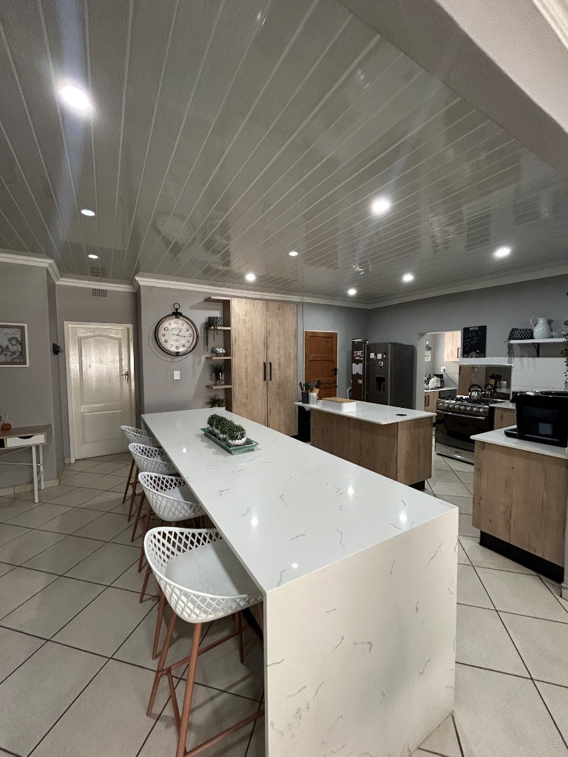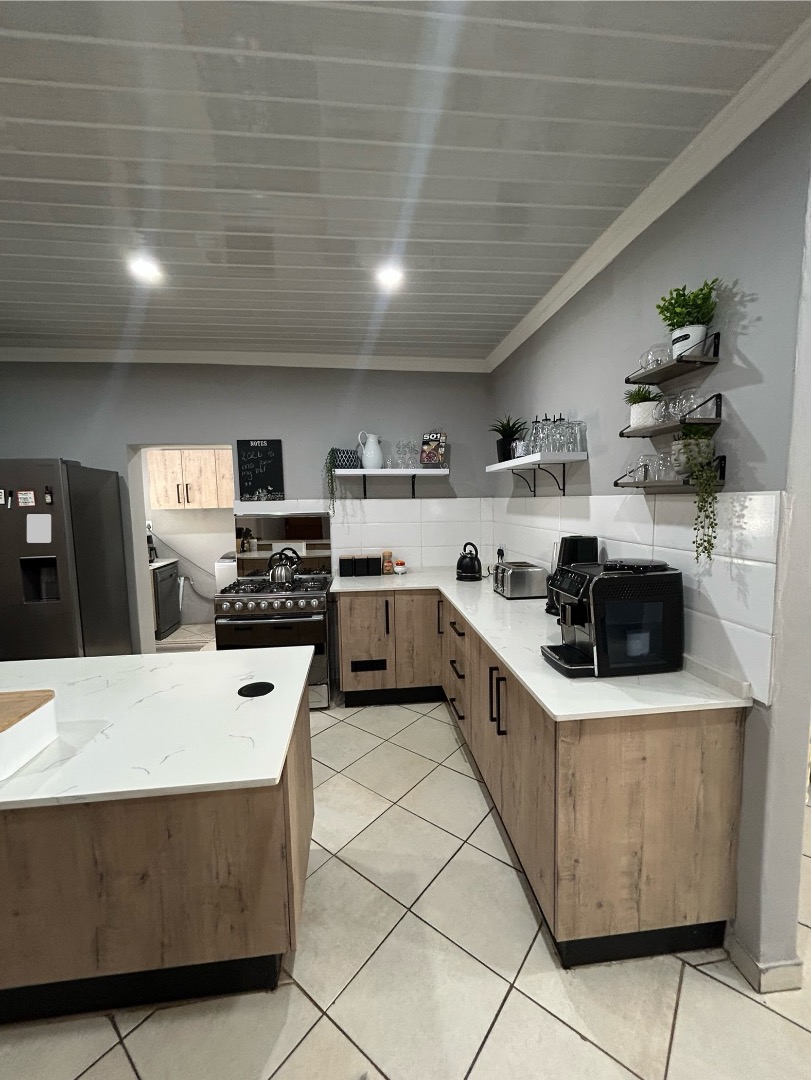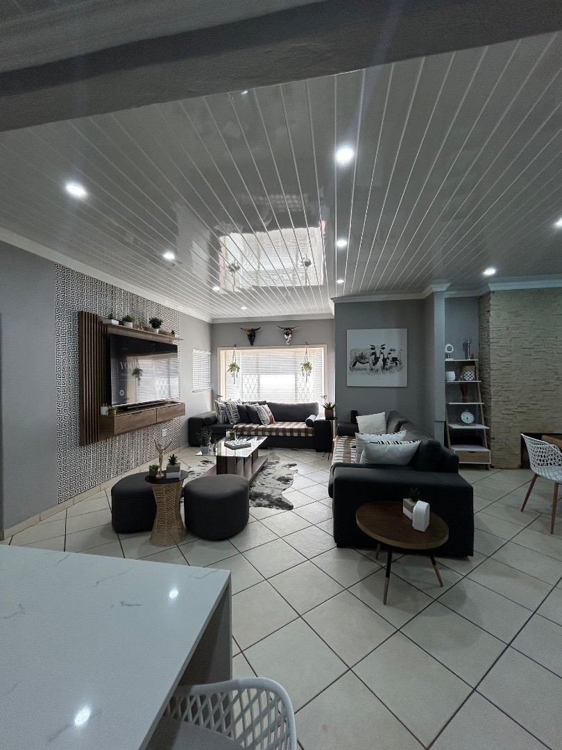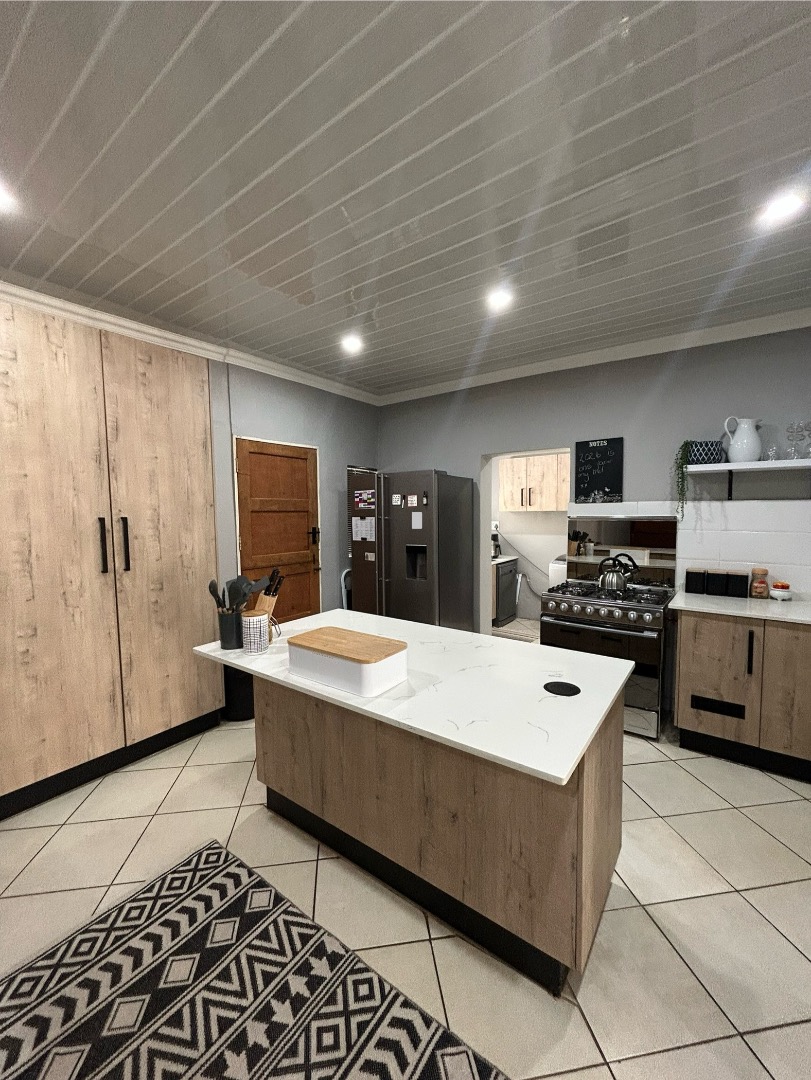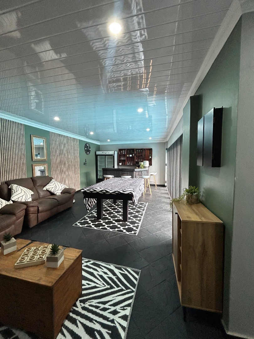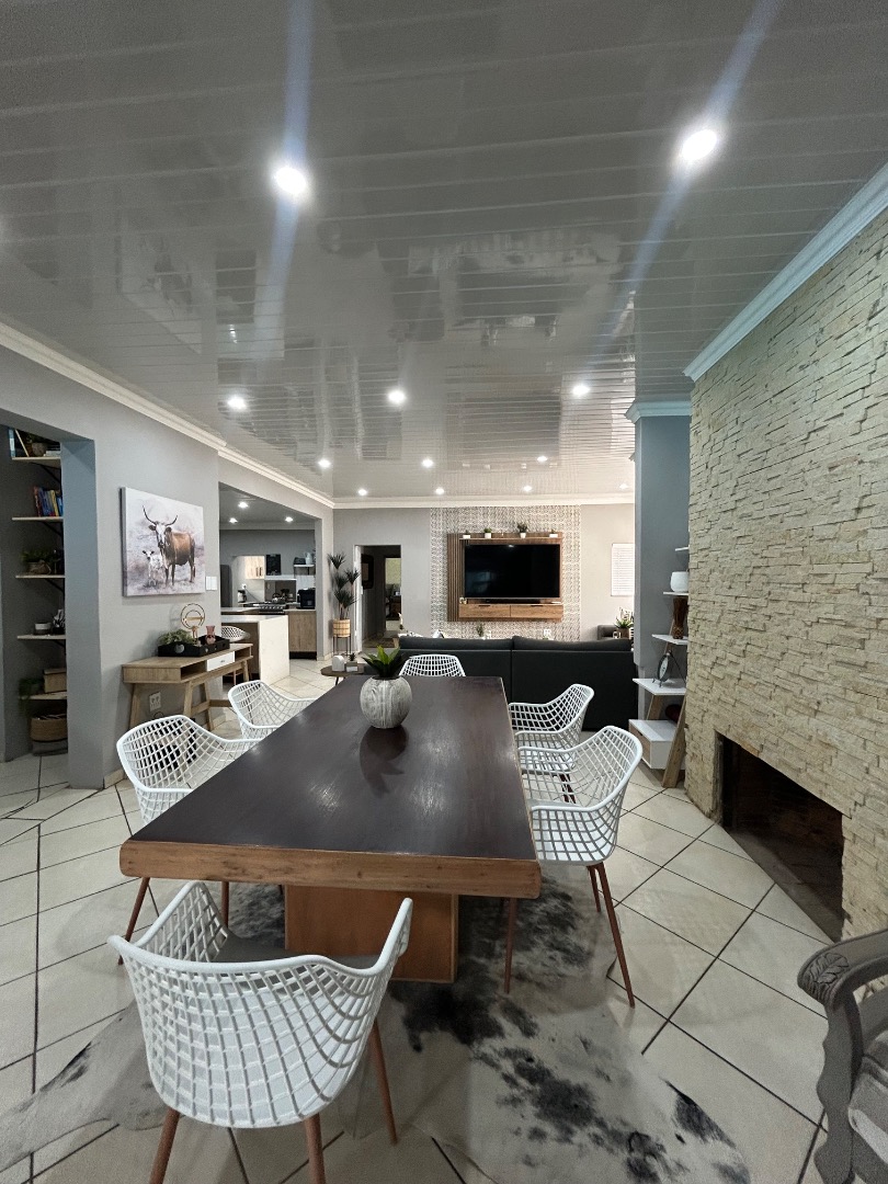 This stunning property offers 5 spacious bedrooms, including 2 en-suite bedrooms and 3 bathrooms in total. The home features a modern kitchen with a separate scullery, flowing into a spacious dining and lounge area. These living spaces connect effortlessly to a private entertainment area overlooking a well-maintained garden and swimming pool, perfect for hosting family and friends.
