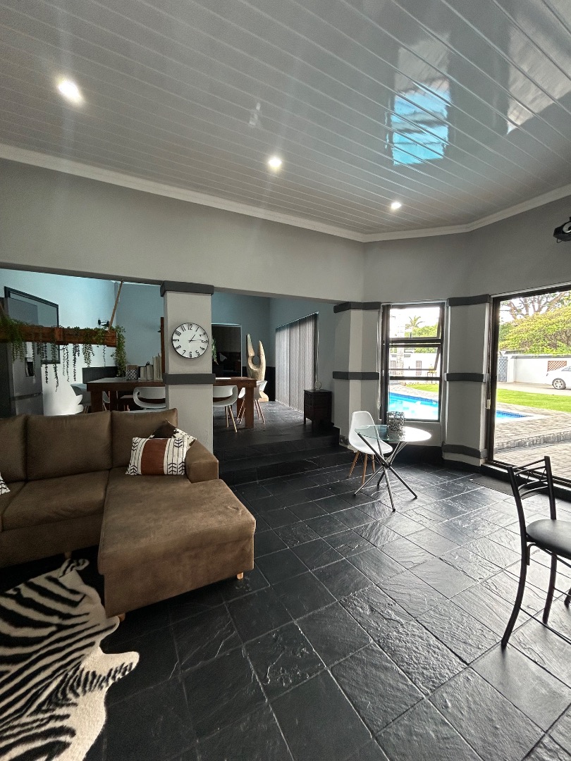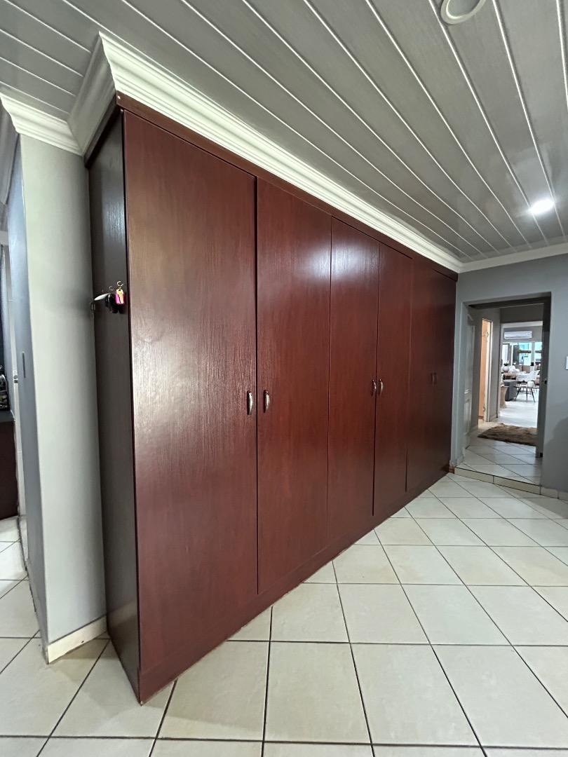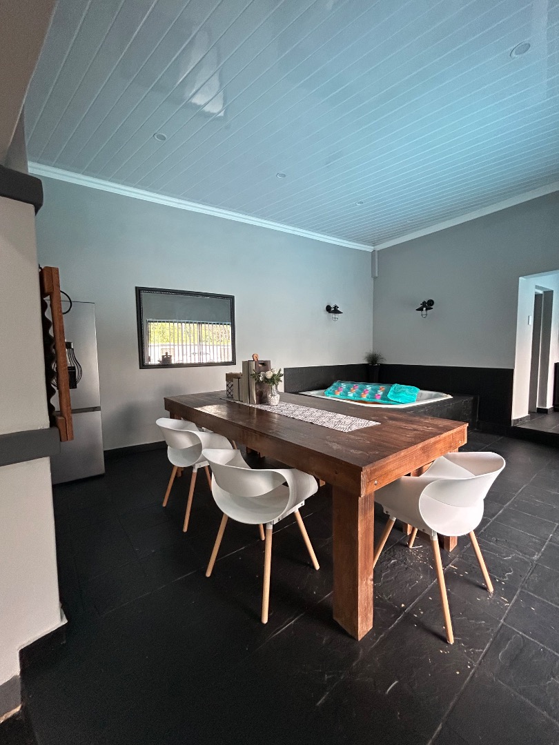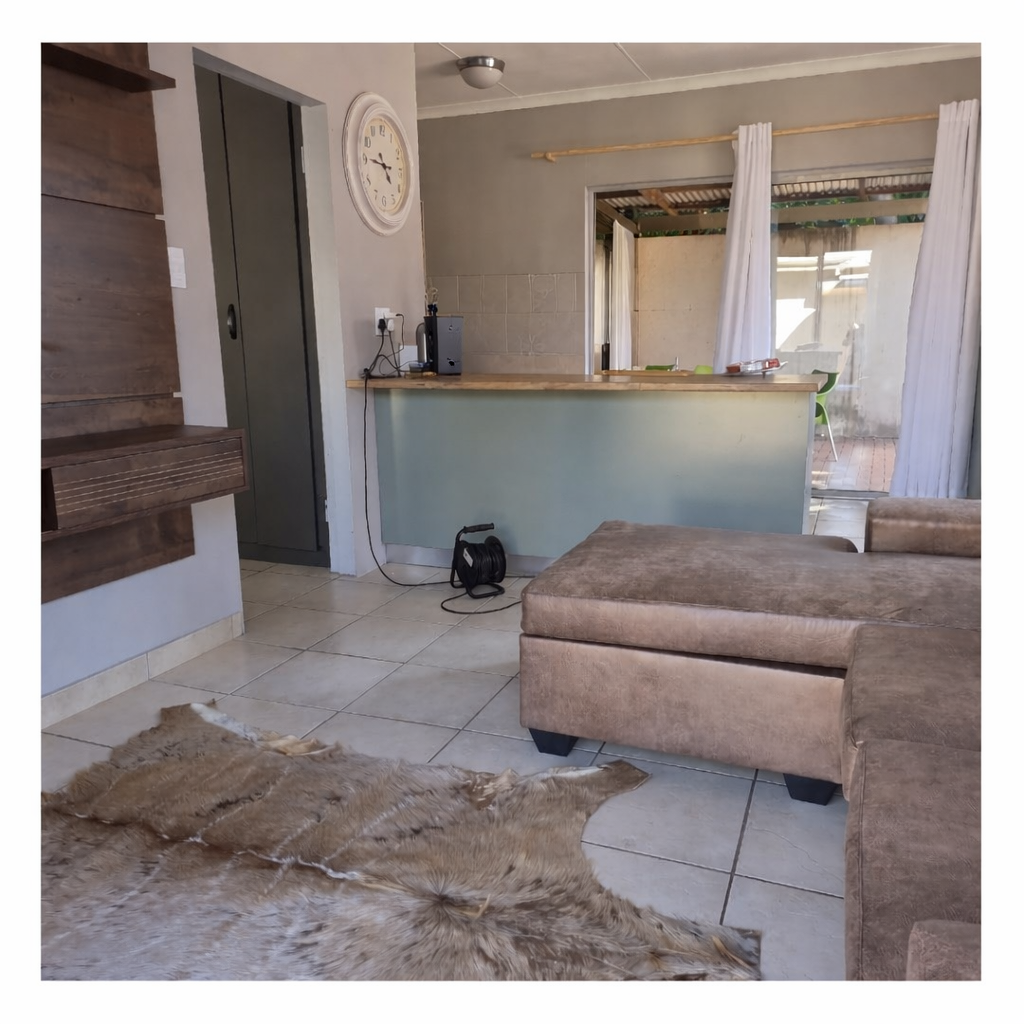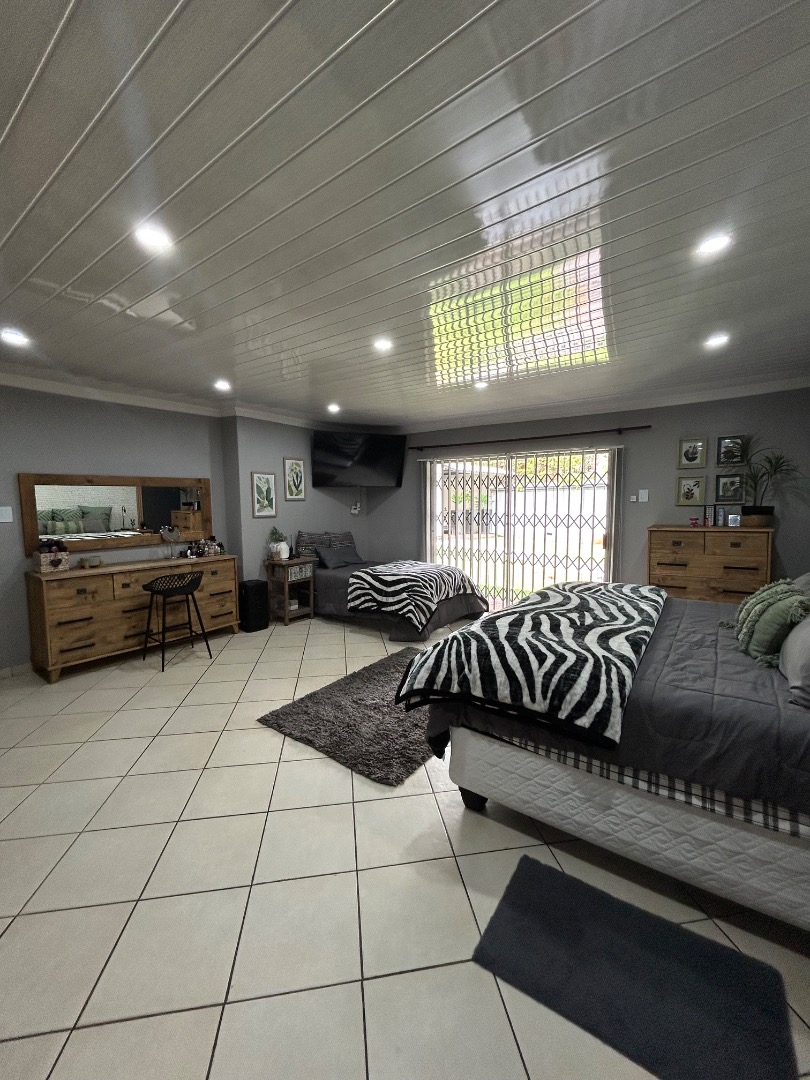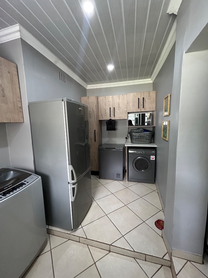 This stunning property offers 5 spacious bedrooms, including 2 en-suite bedrooms and 3 bathrooms in total. The home features a modern kitchen with a separate scullery, flowing into a spacious dining and lounge area. These living spaces connect effortlessly to a private entertainment area overlooking a well-maintained garden and swimming pool, perfect for hosting family and friends.