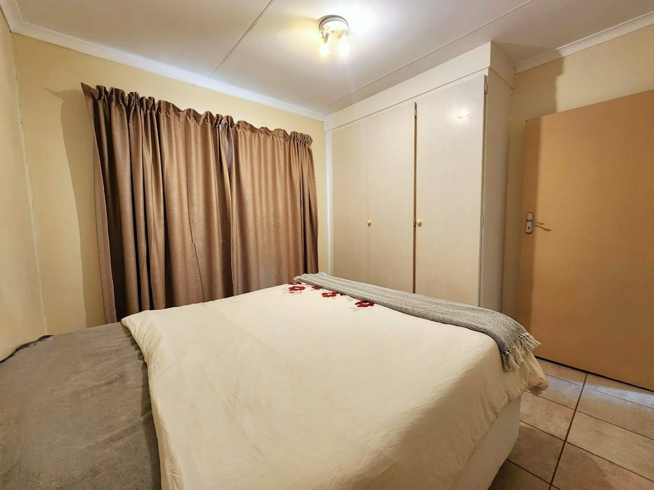 The home offers two well-sized bedrooms, both with built-in cupboards and durable tiled floors. A full bathroom with bath and shower serves the home, combining comfort with convenience.