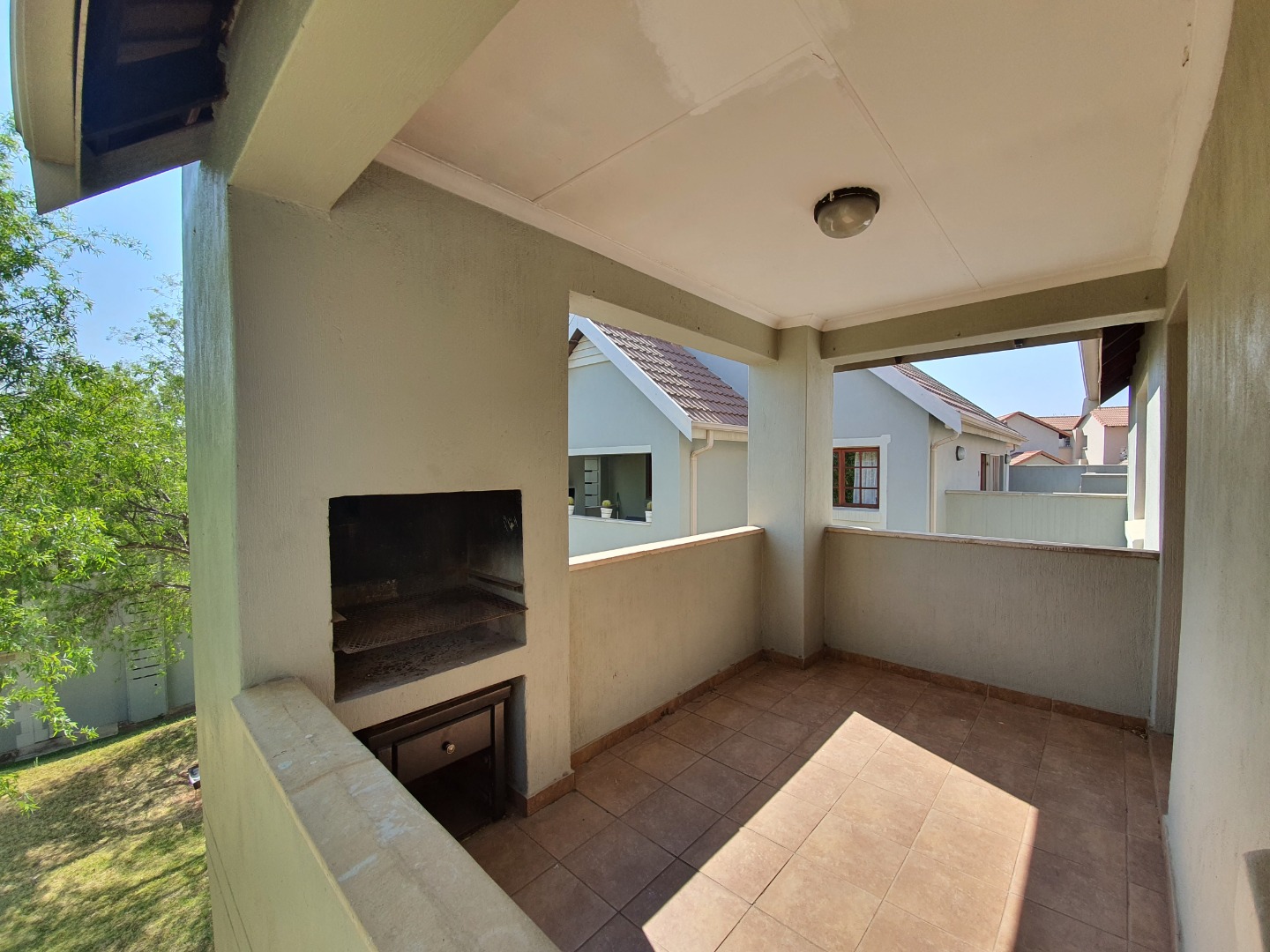 The townhouse has a built-in braai on the covered balcony, plus a double garage.