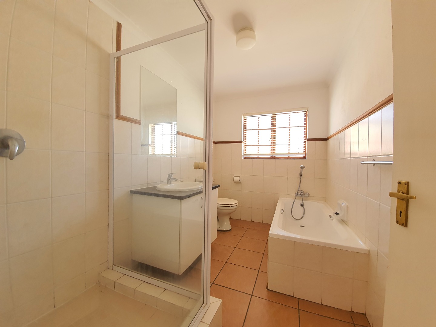 This spacious 3-bedroom, 2-bathroom second floor townhouse is situated within The Courts, a well-maintained security complex in Boardwalk, a popular suburb of Pretoria East.