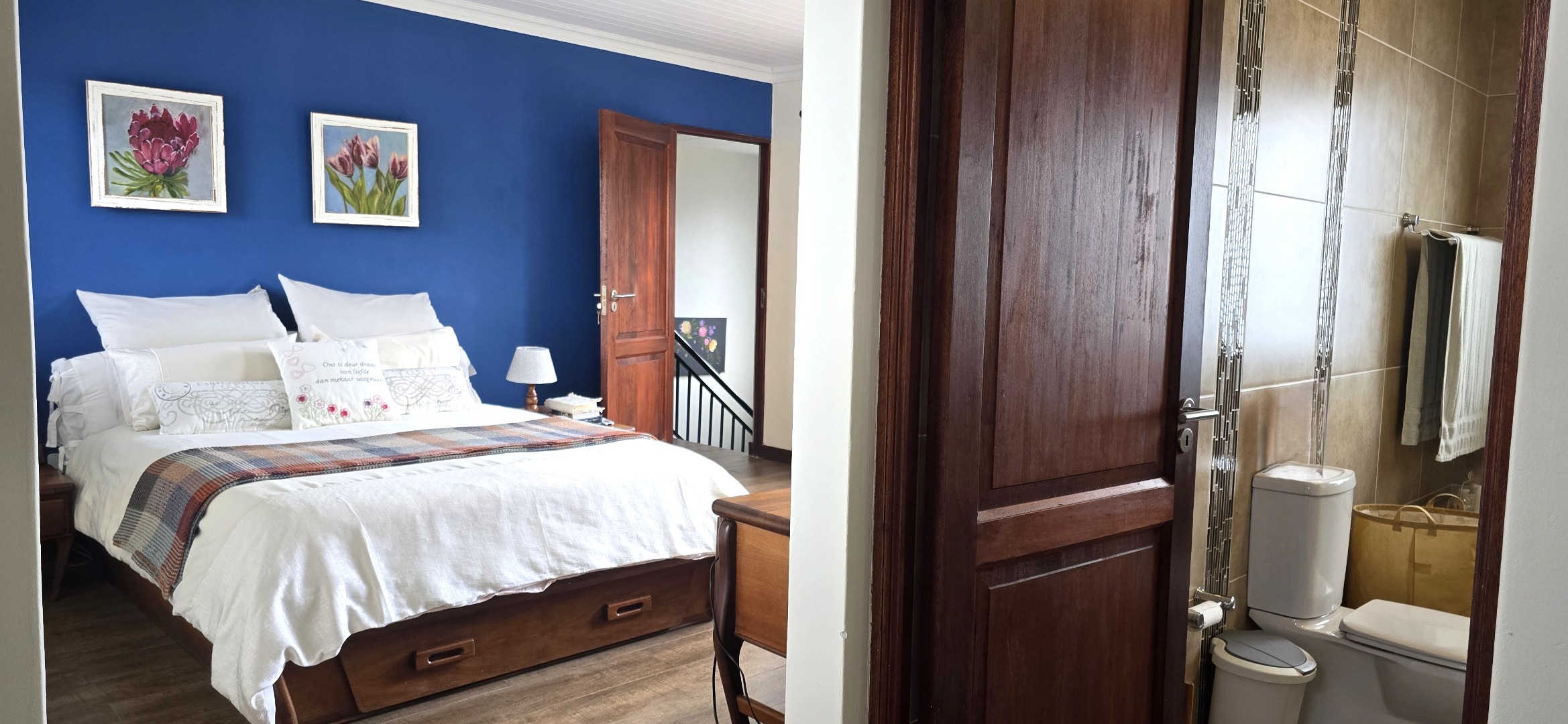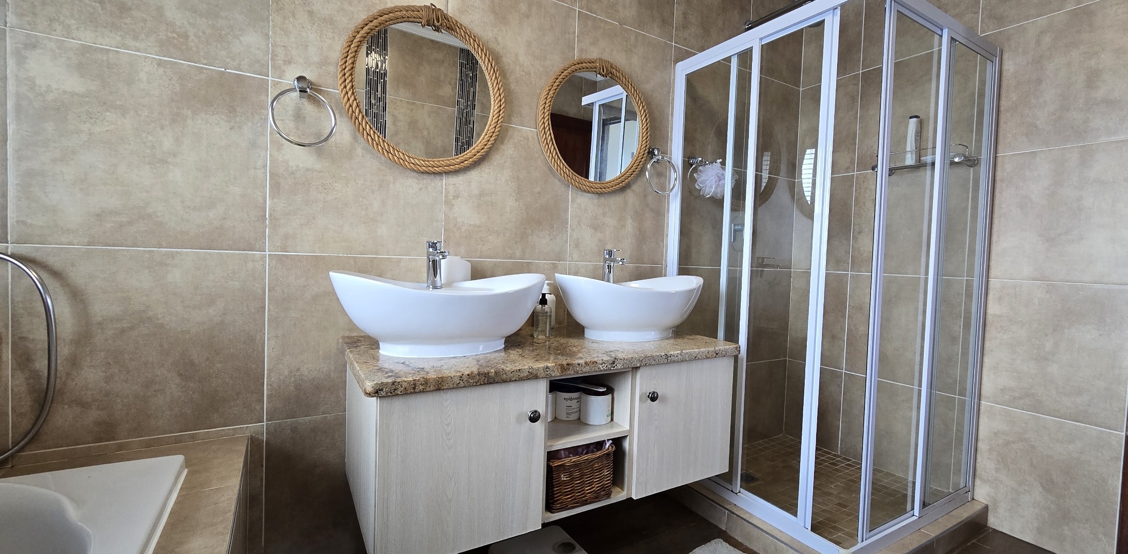 - Air conditioning provides year-round comfort. En suite modern full bathroom (bath, shower, twin basins, and toilet).