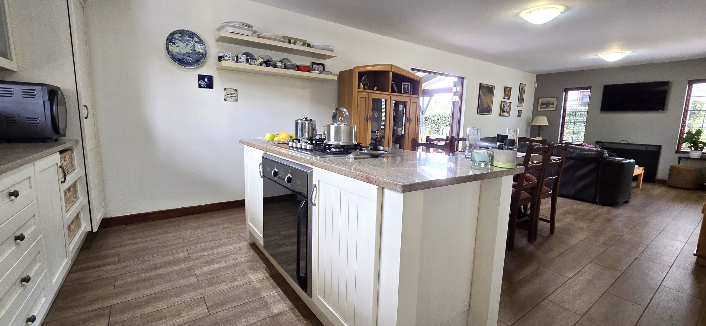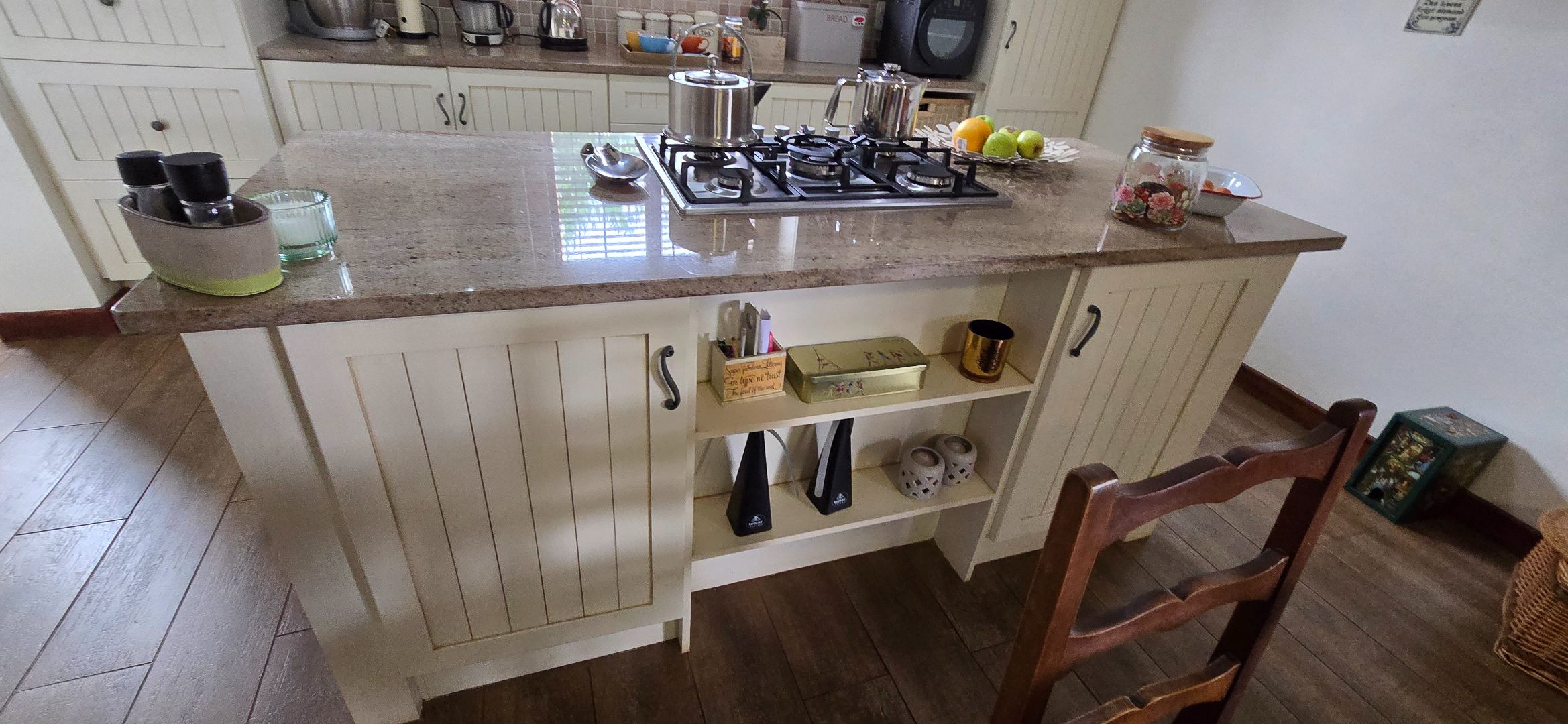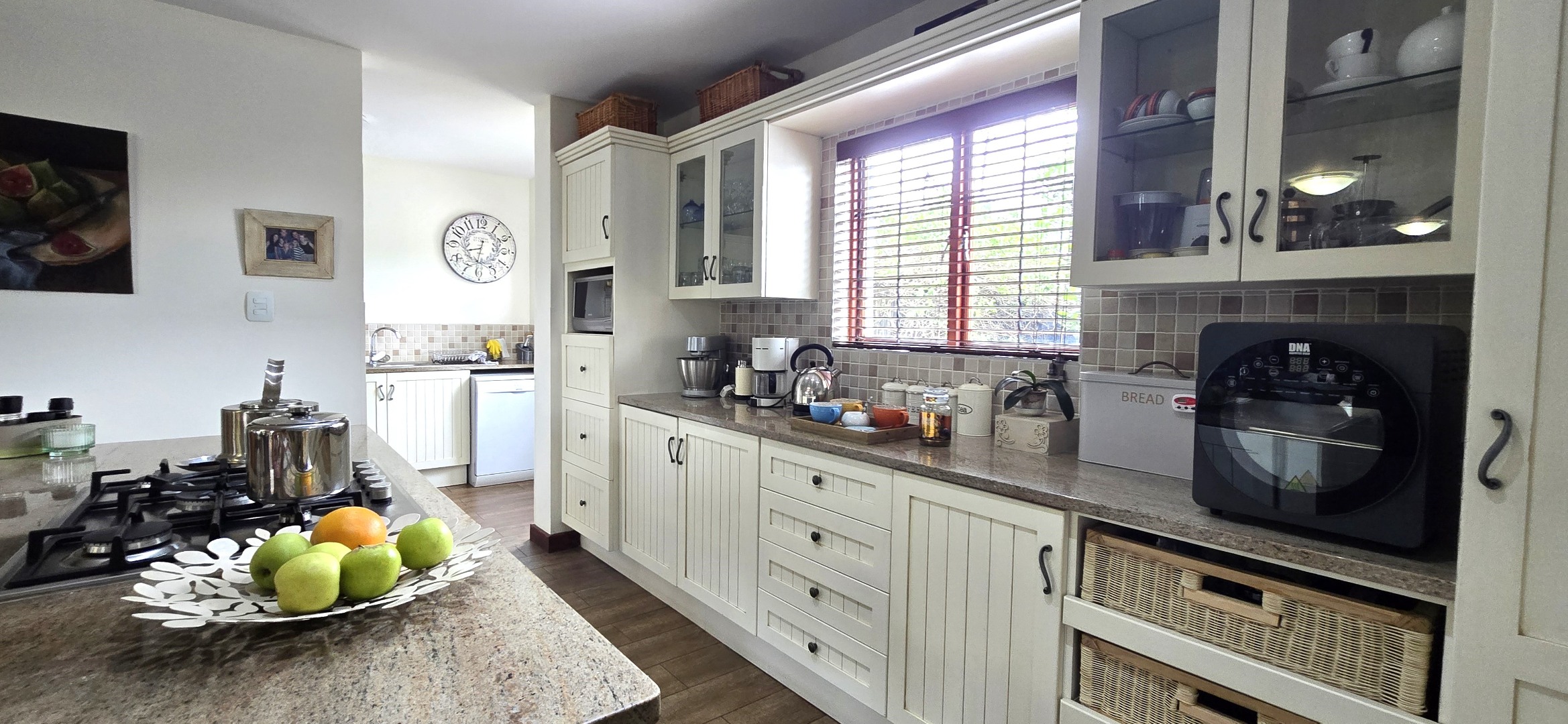 - A gas hob with 5 burners, an electric oven, granite countertops, and central island. Built-in pantry.