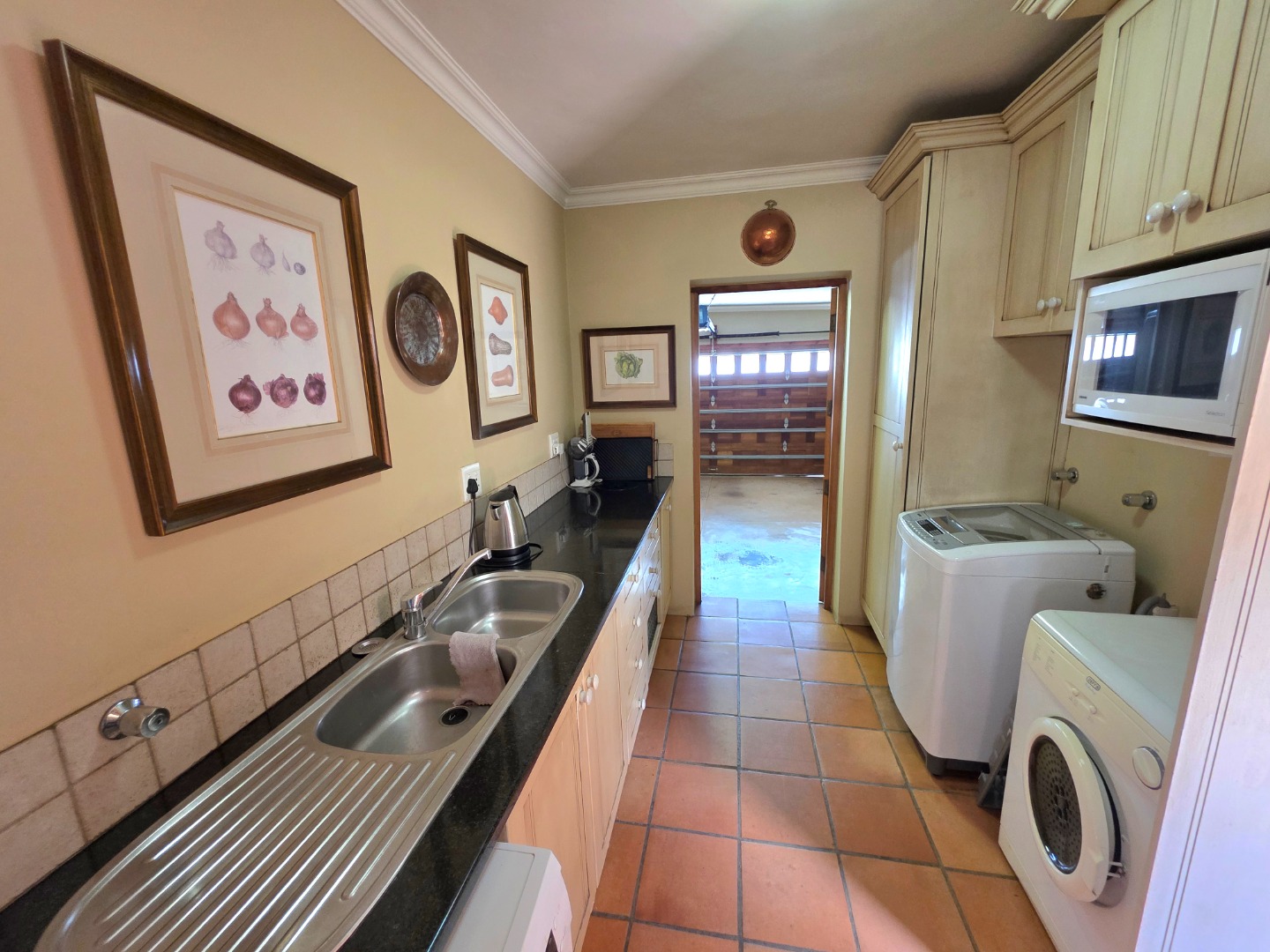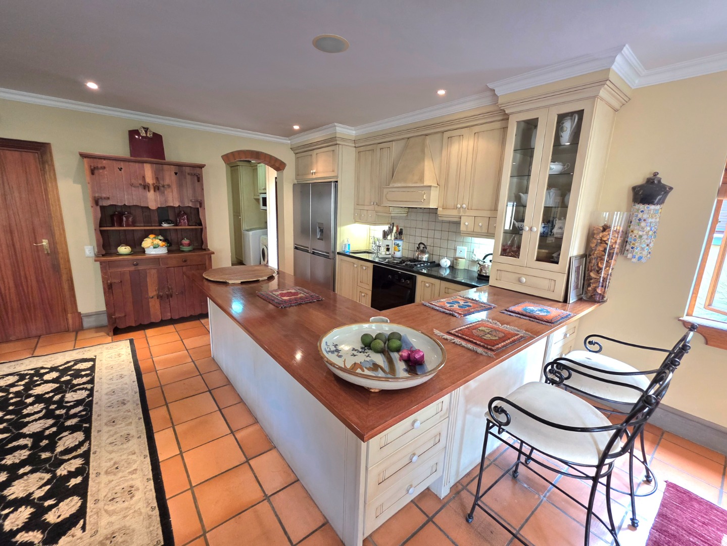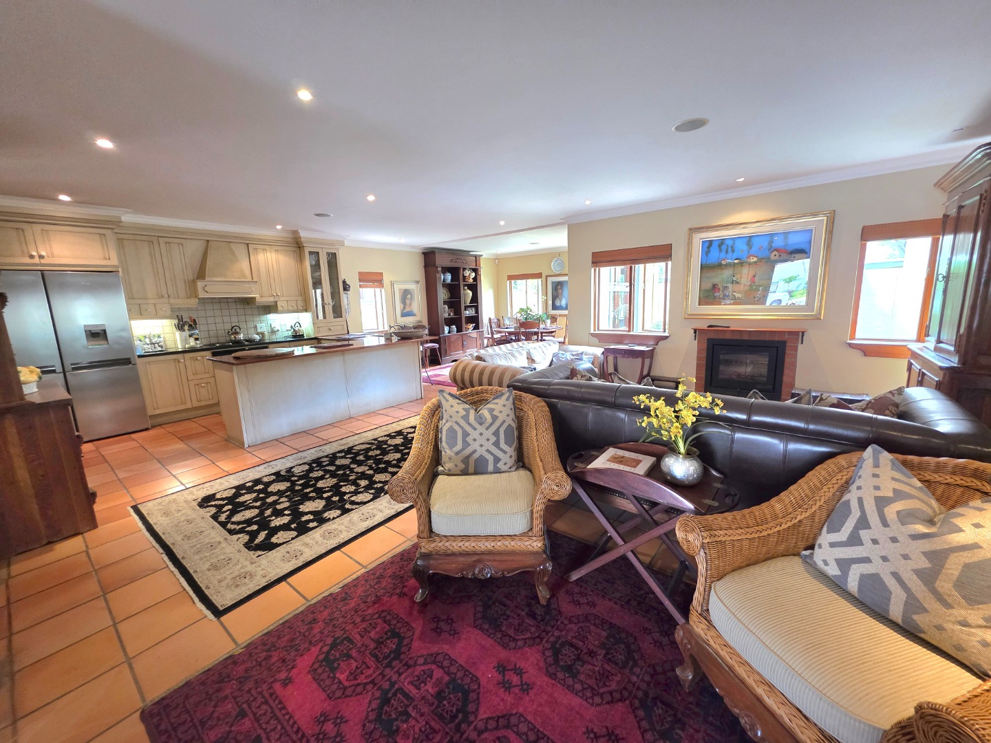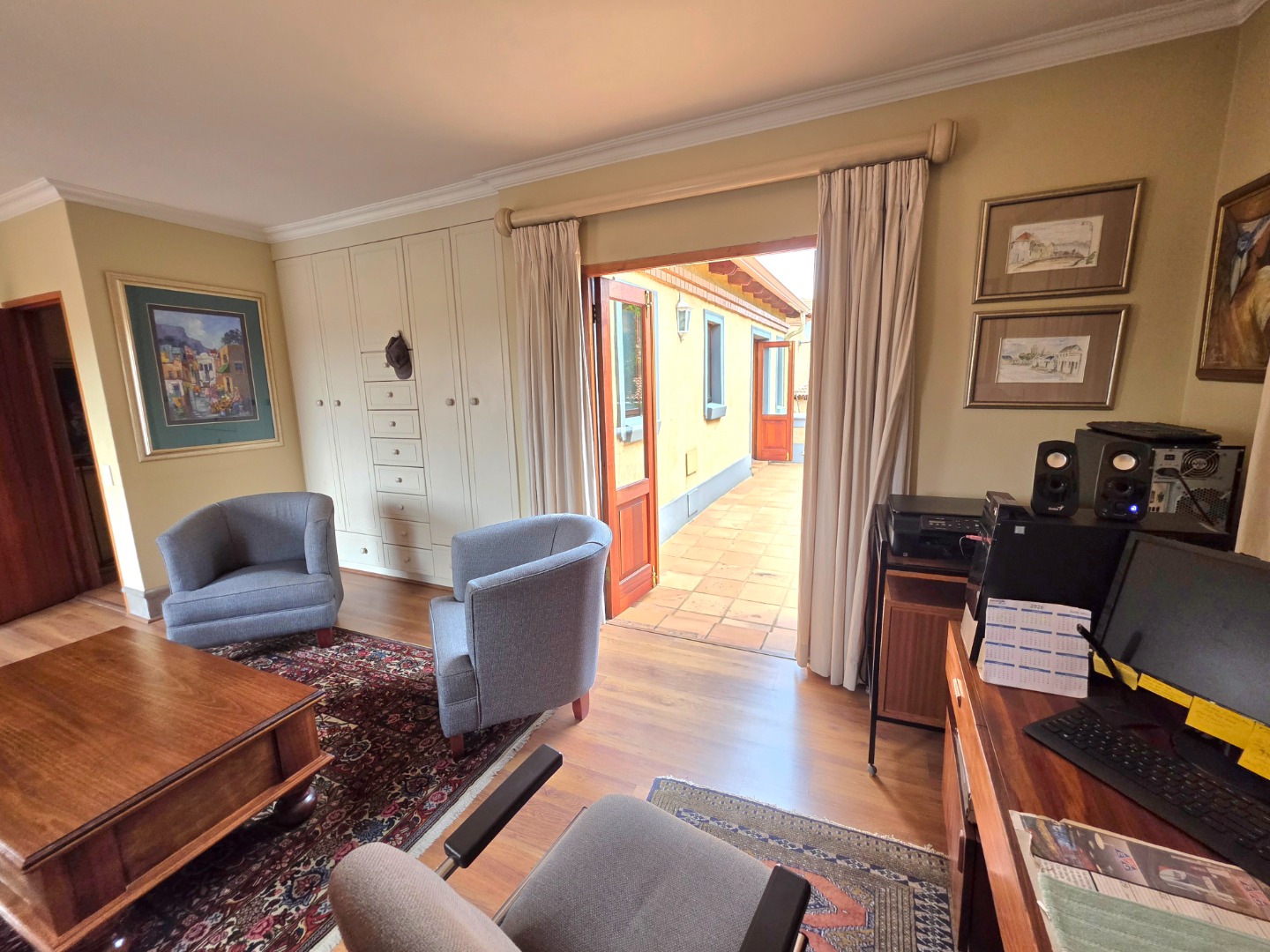 Upon entering the front door of this abode, you can indulge in the allure of a home that continuously astounds, where every corner whispers a tale of carefully curated vintage authenticity and elegance. The sizable living areas (fireplace) embrace the art of comfortable living … a place of charm, character and togetherness! The rustic open plan kitchen brimming with old world character seamlessly blends in with the living rooms. The three bedrooms (study) of ample proportions boast lots of custom-made cupboards and exudes the same style and personality as the rest of the residence.