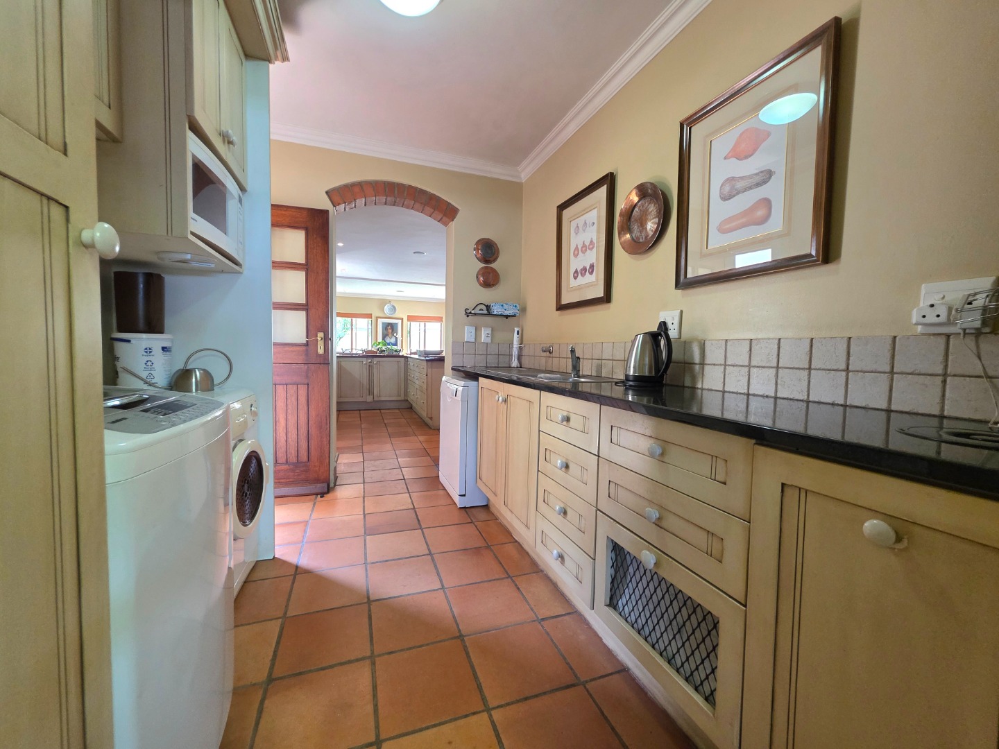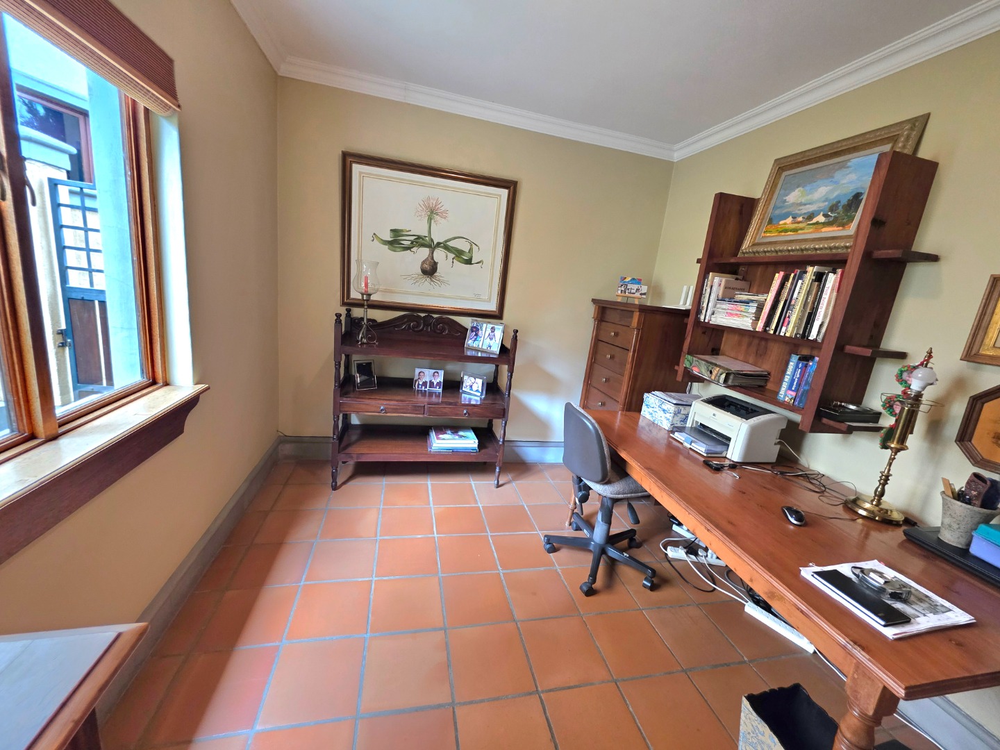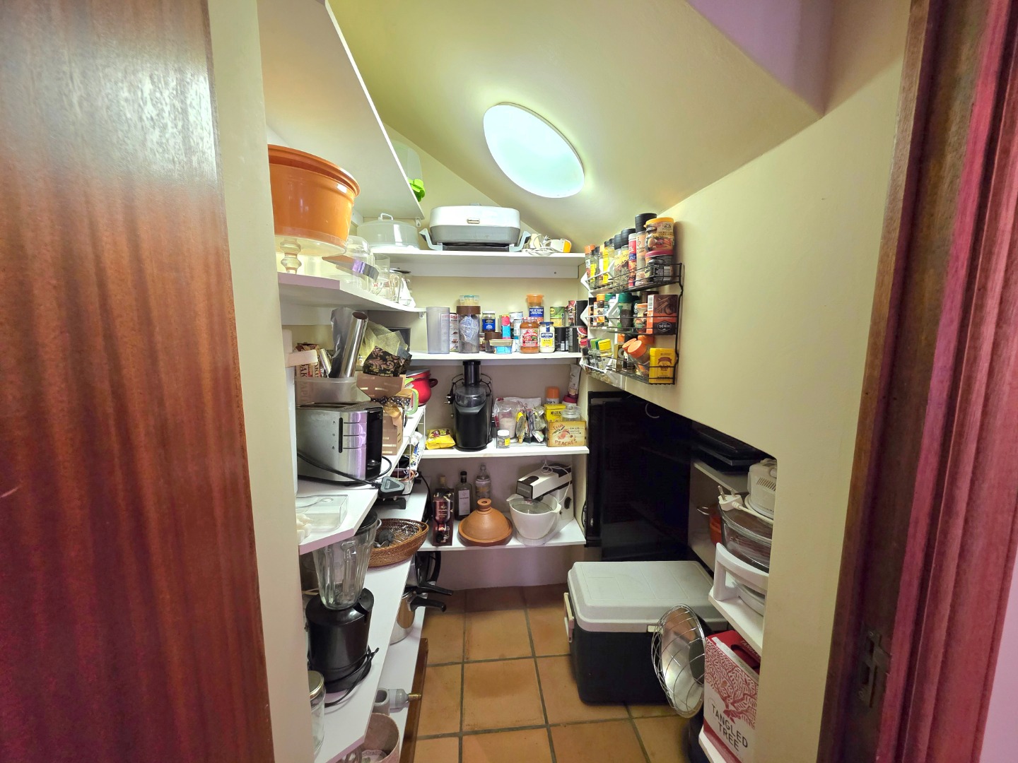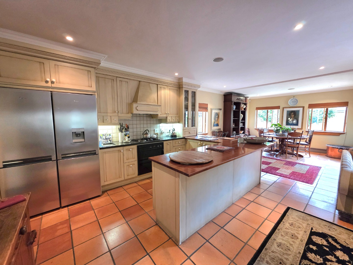 Upon entering the front door of this abode, you can indulge in the allure of a home that continuously astounds, where every corner whispers a tale of carefully curated vintage authenticity and elegance. The sizable living areas (fireplace) embrace the art of comfortable living … a place of charm, character and togetherness! The rustic open plan kitchen brimming with old world character seamlessly blends in with the living rooms. The three bedrooms (study) of ample proportions boast lots of custom-made cupboards and exudes the same style and personality as the rest of the residence.