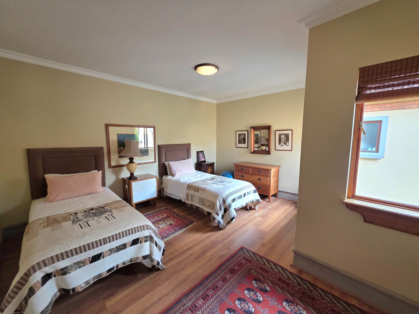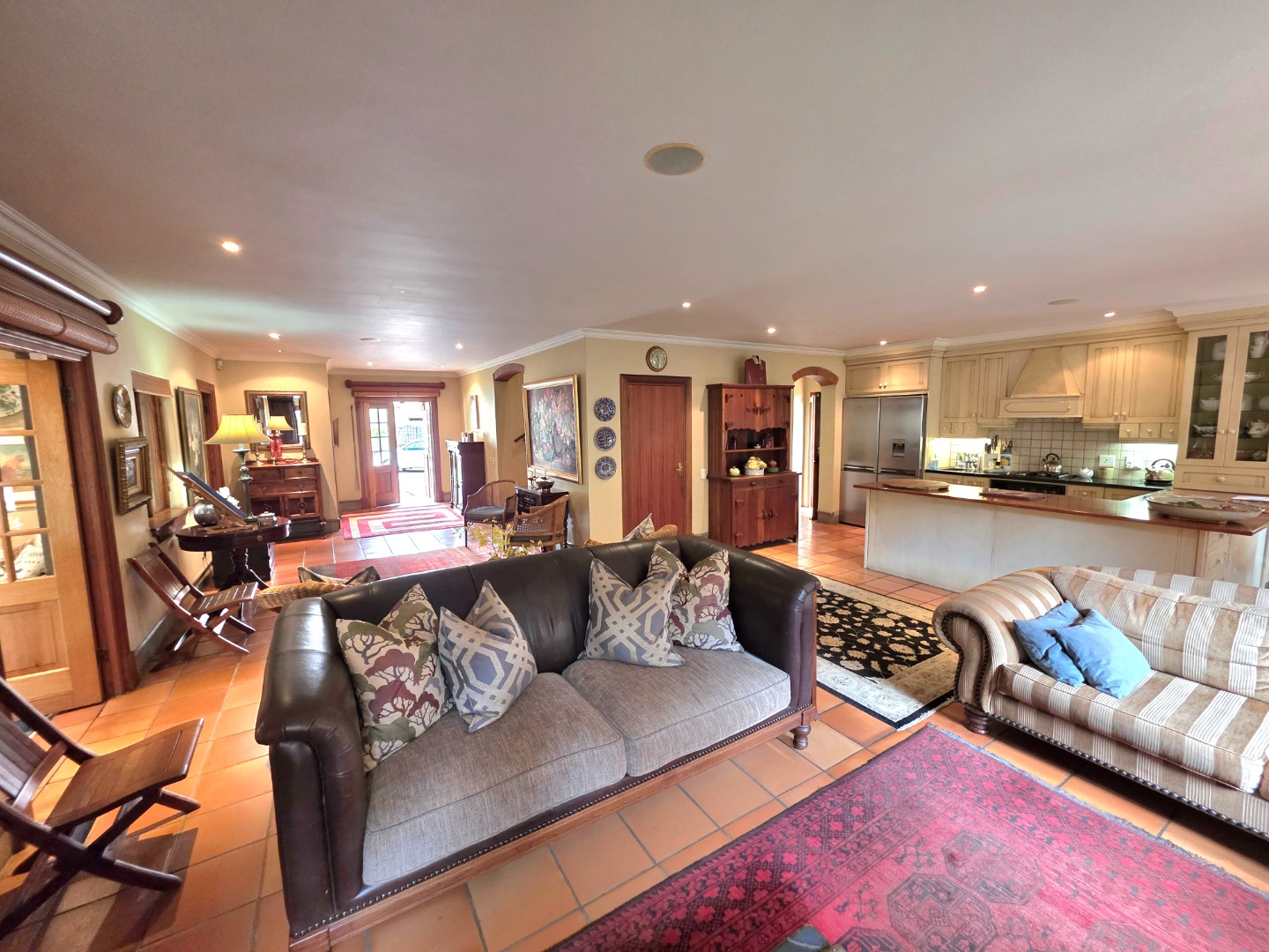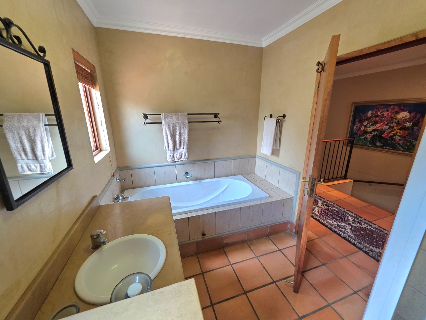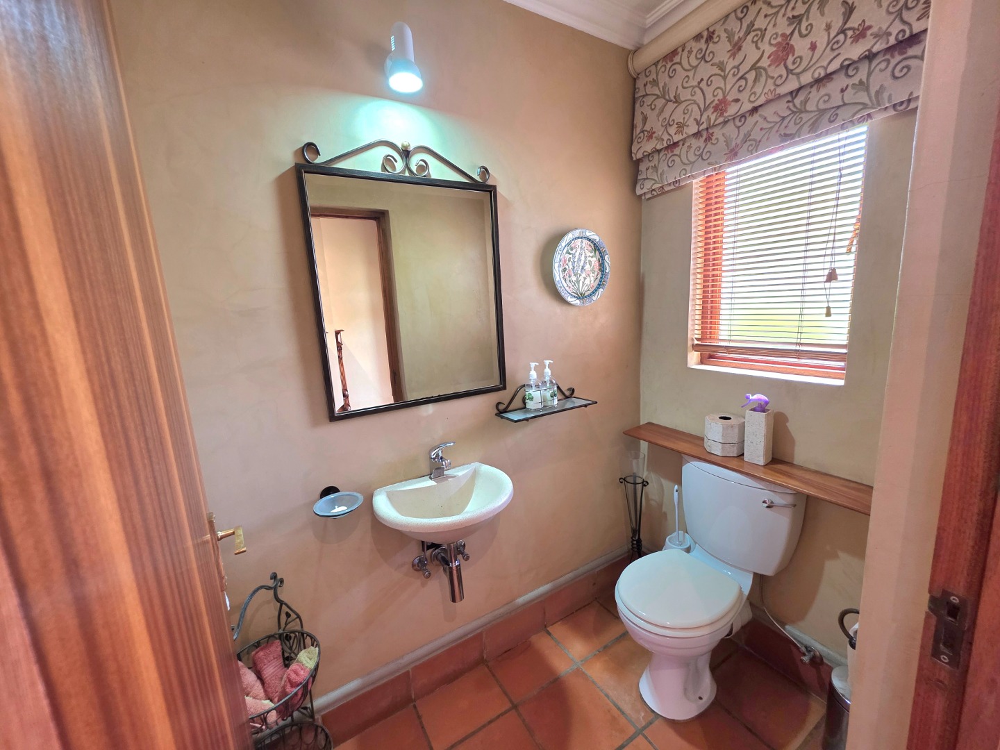 Upon entering the front door of this abode, you can indulge in the allure of a home that continuously astounds, where every corner whispers a tale of carefully curated vintage authenticity and elegance. The sizable living areas (fireplace) embrace the art of comfortable living … a place of charm, character and togetherness! The rustic open plan kitchen brimming with old world character seamlessly blends in with the living rooms. The three bedrooms (study) of ample proportions boast lots of custom-made cupboards and exudes the same style and personality as the rest of the residence.