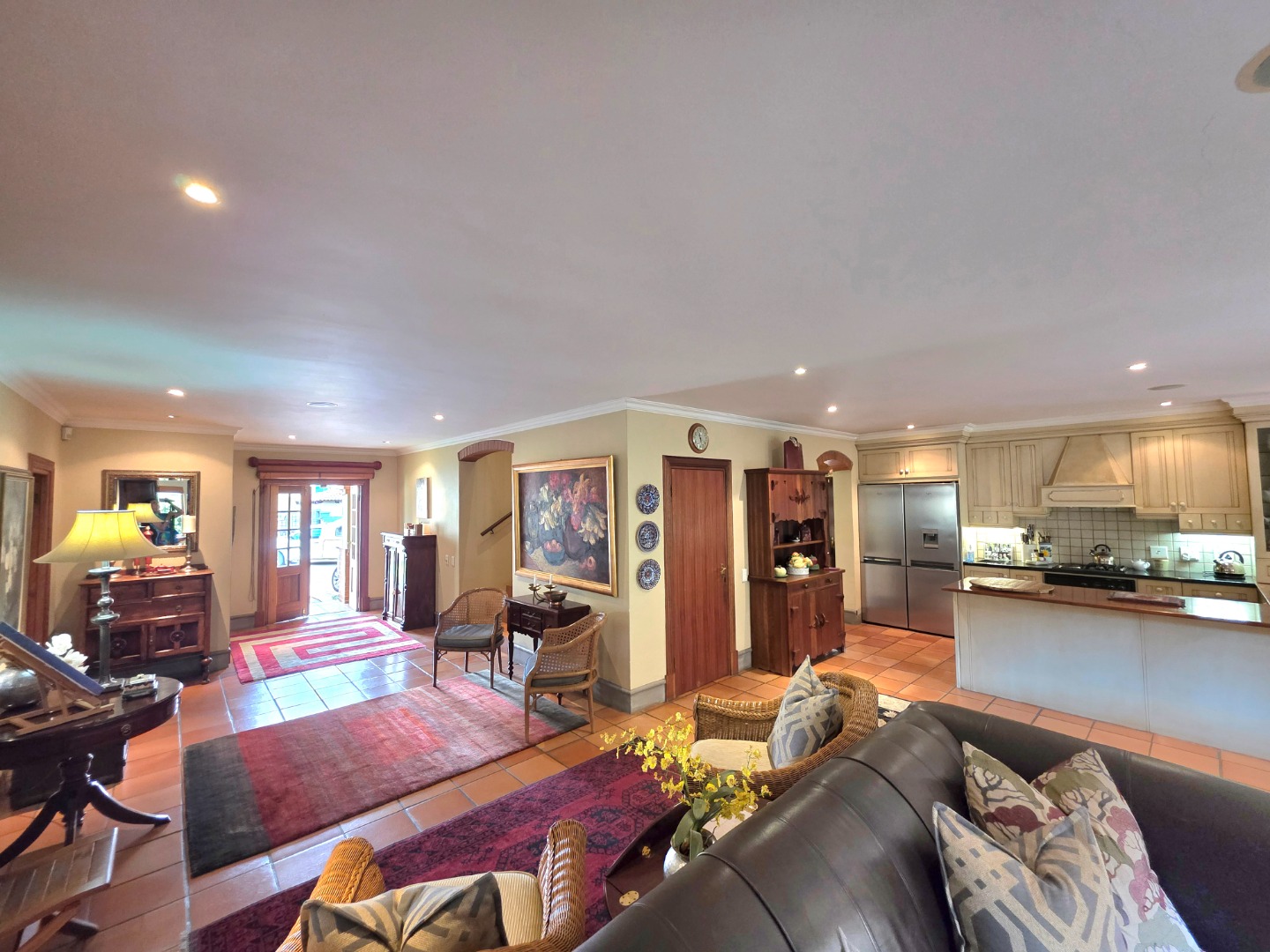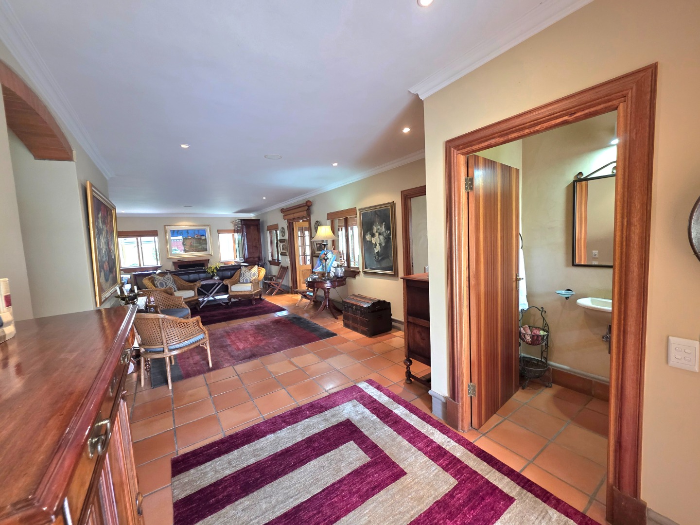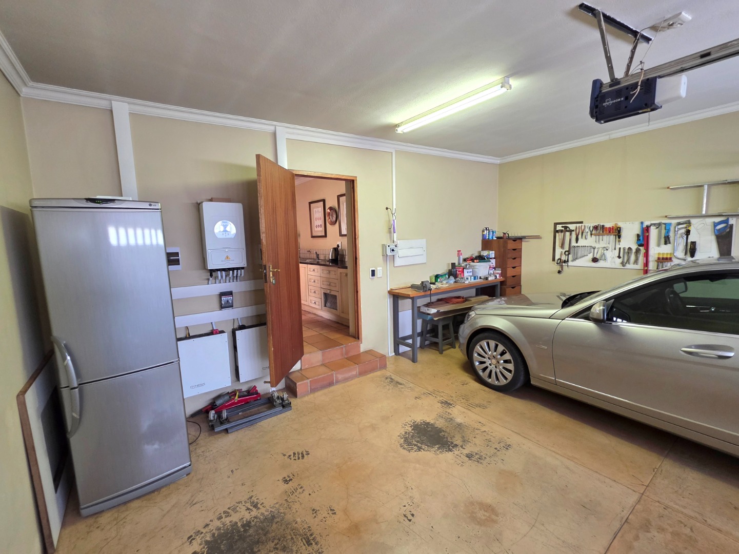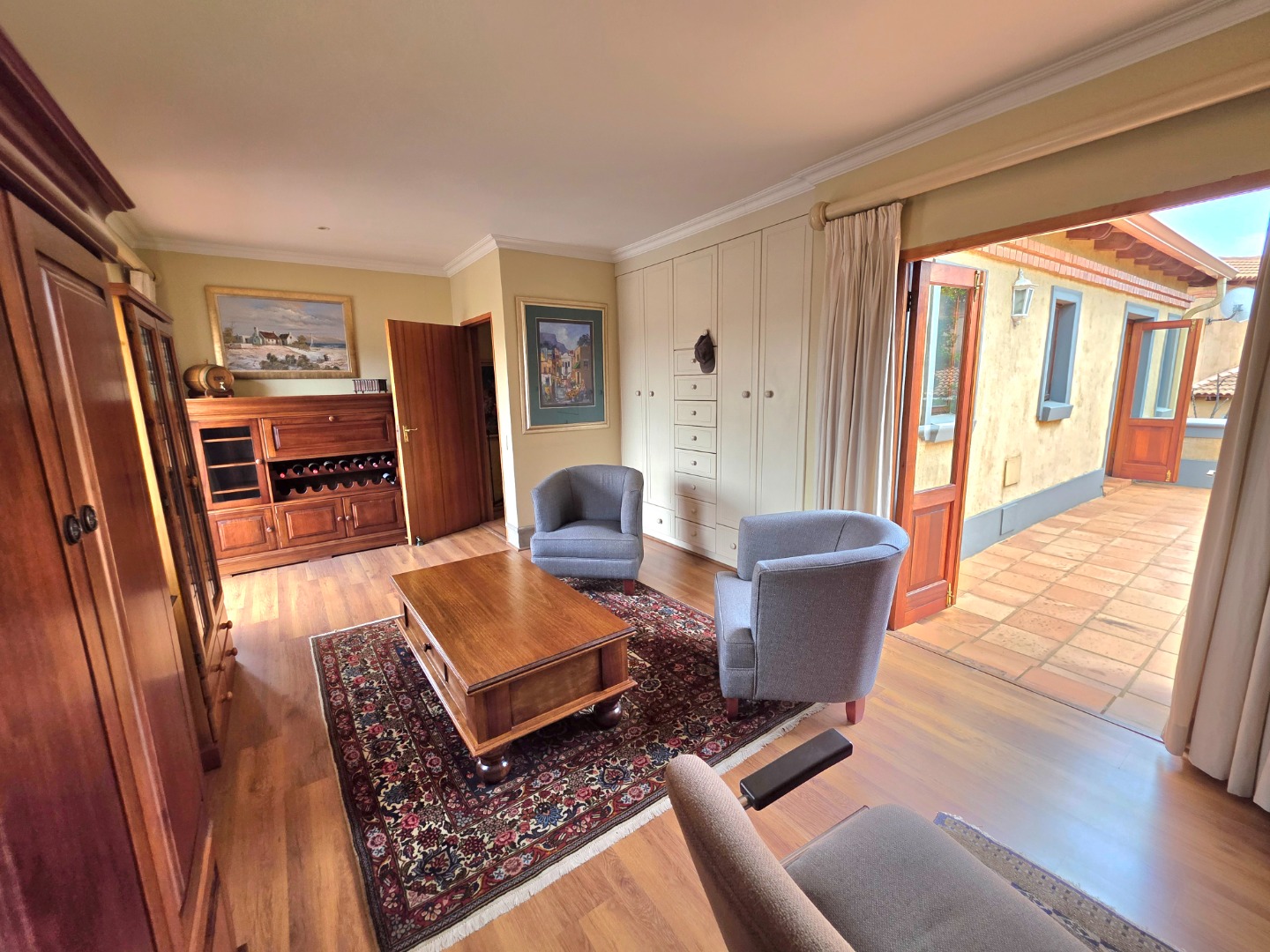 Upon entering the front door of this abode, you can indulge in the allure of a home that continuously astounds, where every corner whispers a tale of carefully curated vintage authenticity and elegance. The sizable living areas (fireplace) embrace the art of comfortable living … a place of charm, character and togetherness! The rustic open plan kitchen brimming with old world character seamlessly blends in with the living rooms. The three bedrooms (study) of ample proportions boast lots of custom-made cupboards and exudes the same style and personality as the rest of the residence.