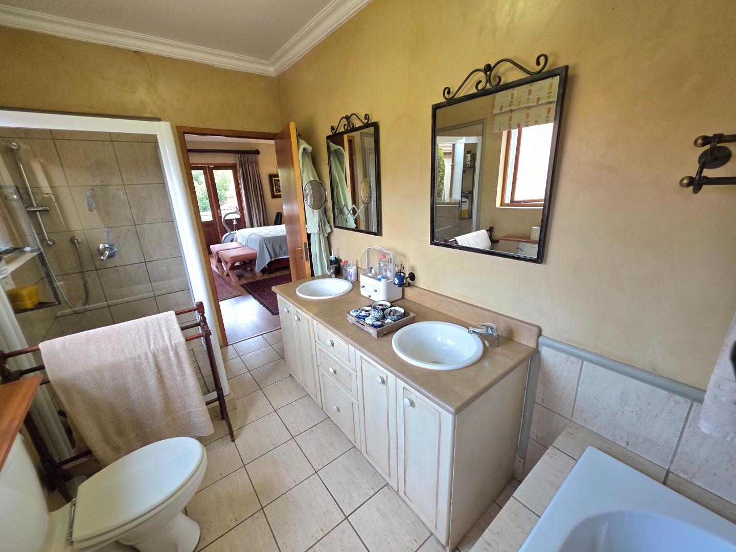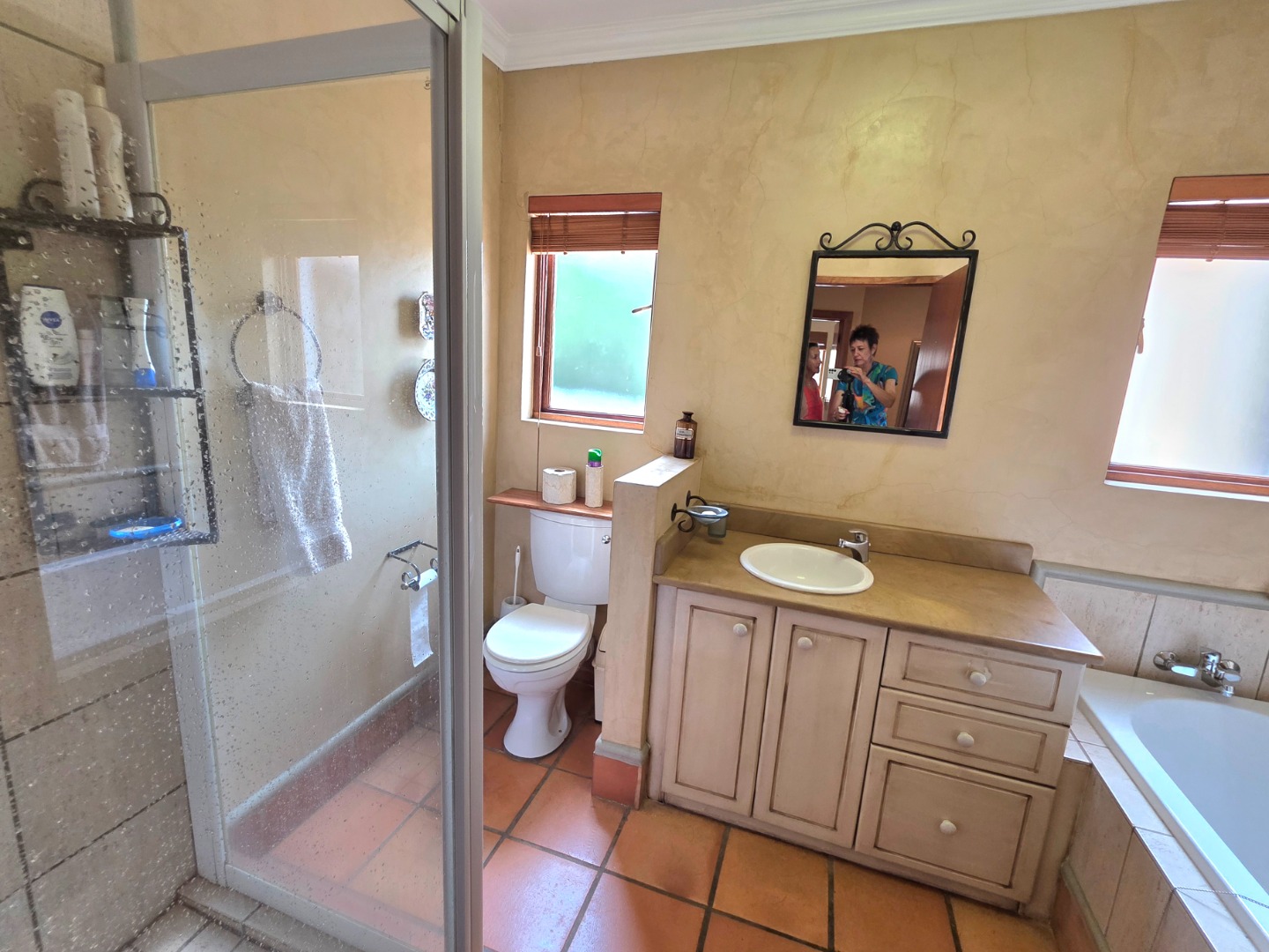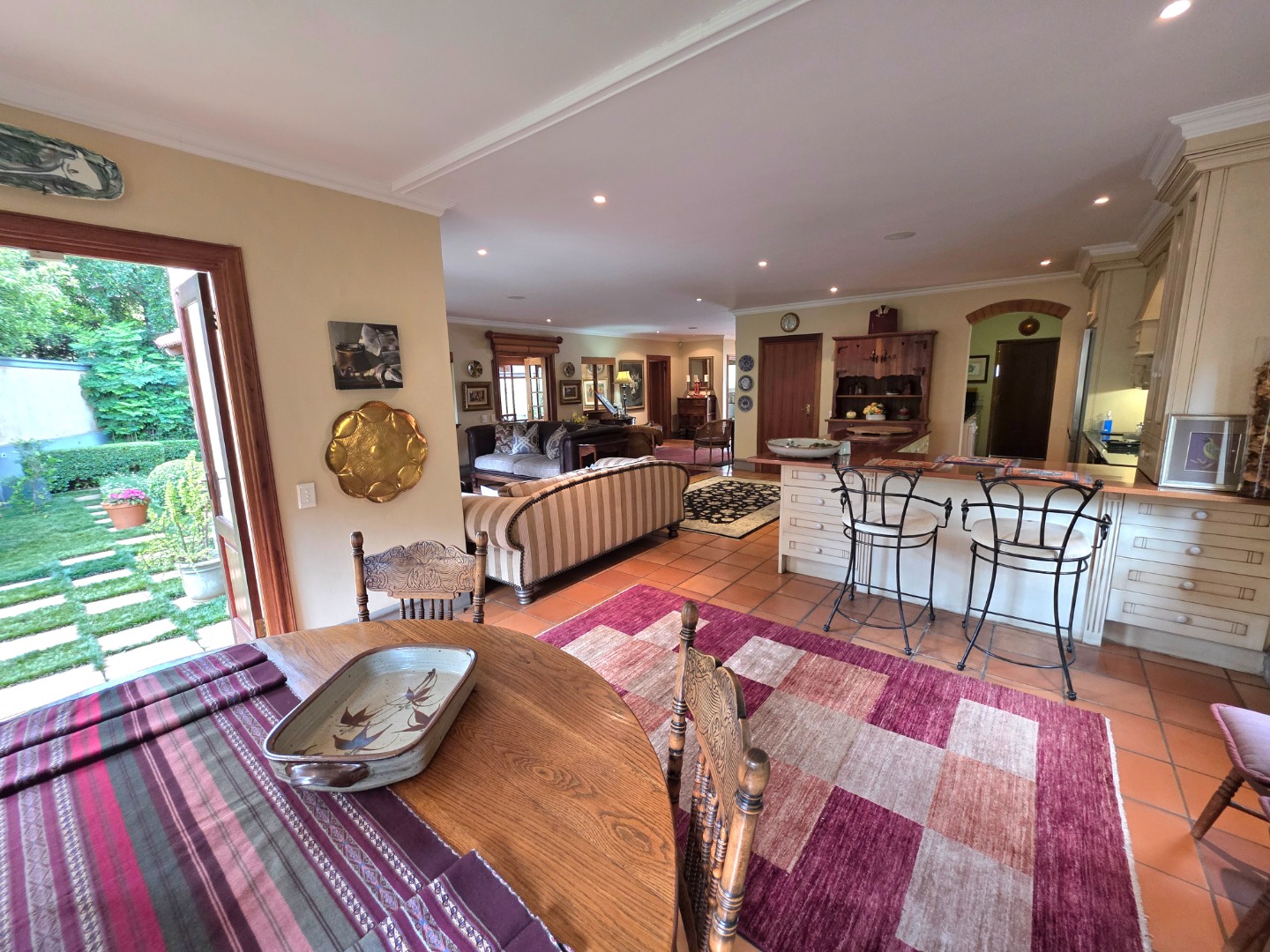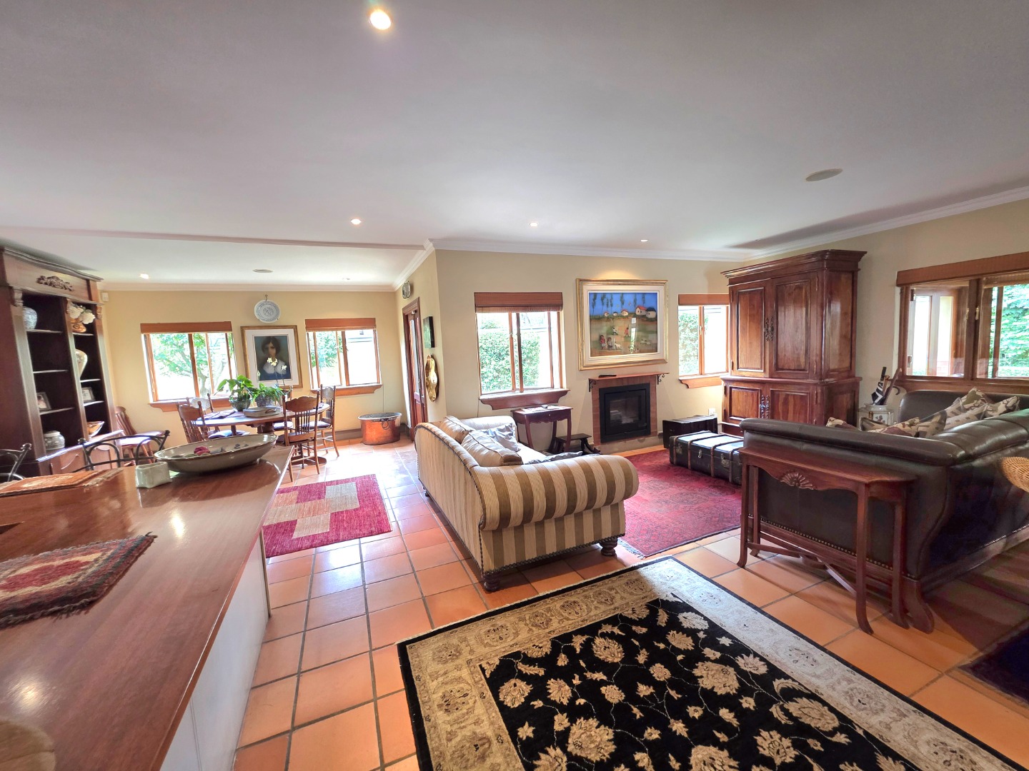 Upon entering the front door of this abode, you can indulge in the allure of a home that continuously astounds, where every corner whispers a tale of carefully curated vintage authenticity and elegance. The sizable living areas (fireplace) embrace the art of comfortable living … a place of charm, character and togetherness! The rustic open plan kitchen brimming with old world character seamlessly blends in with the living rooms. The three bedrooms (study) of ample proportions boast lots of custom-made cupboards and exudes the same style and personality as the rest of the residence.