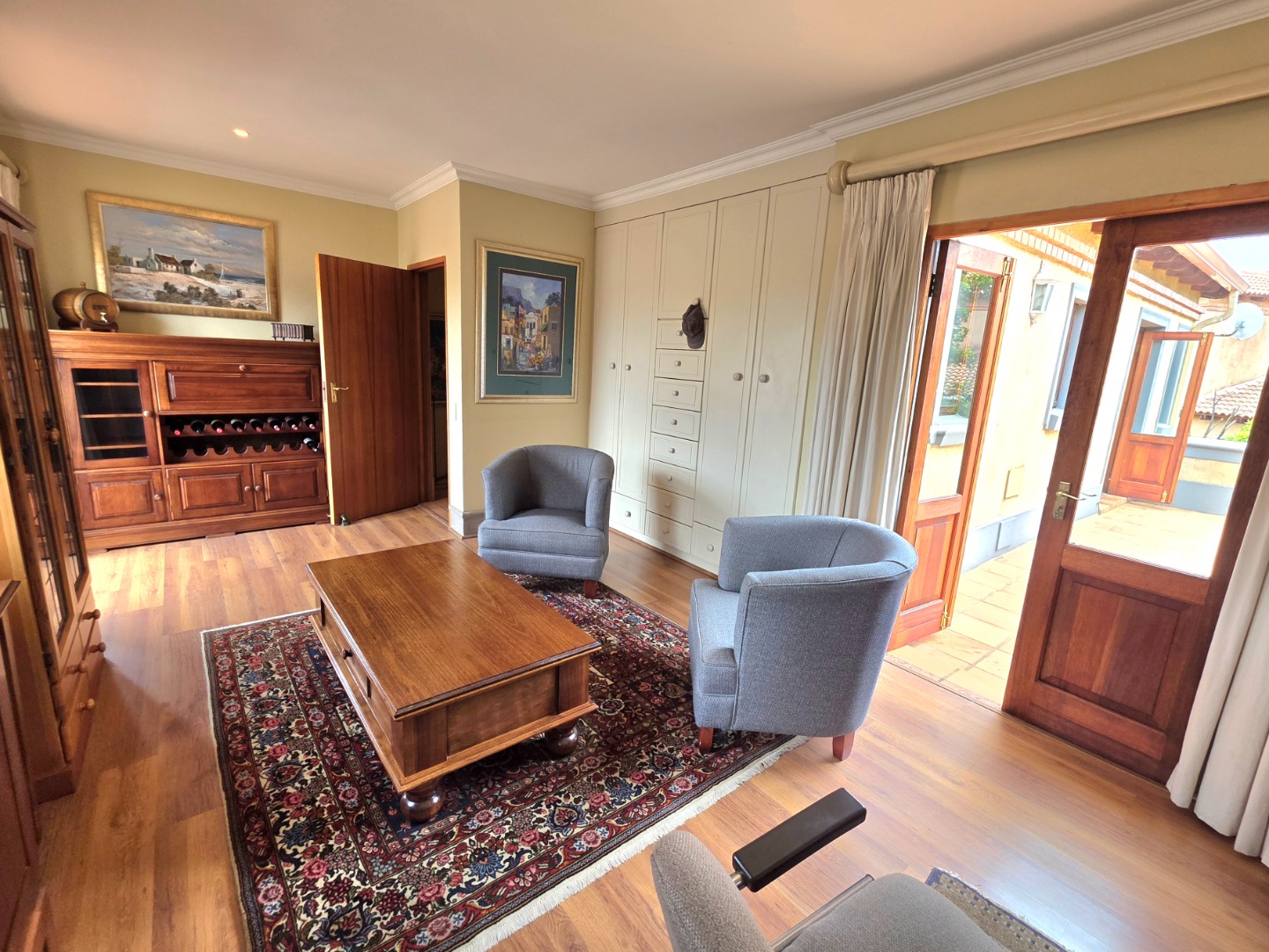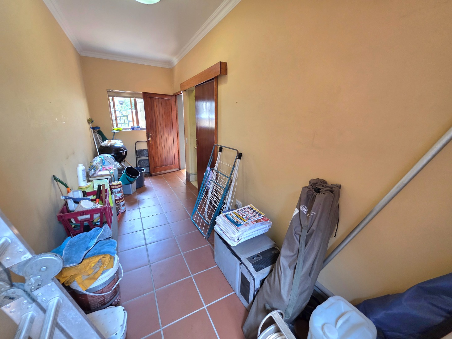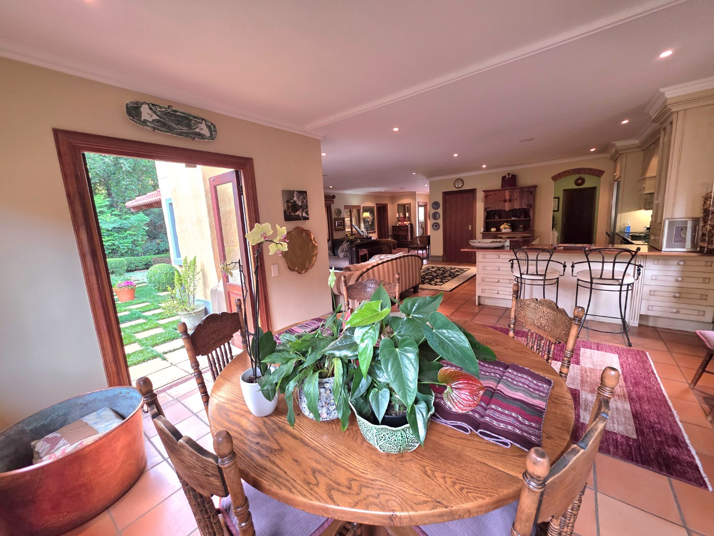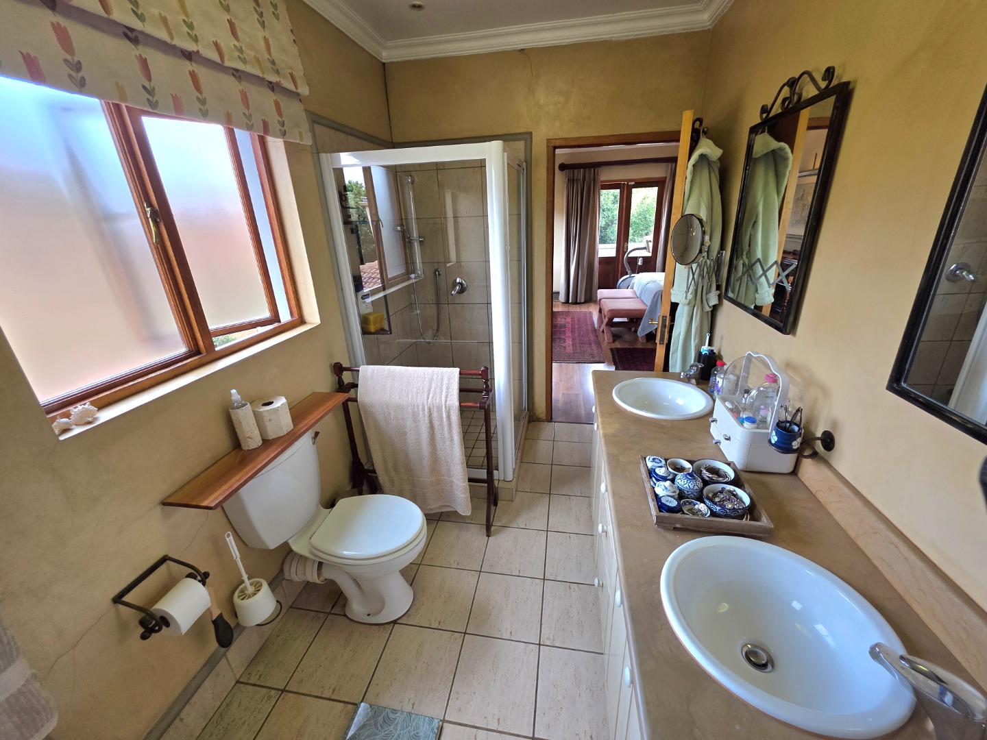 Upon entering the front door of this abode, you can indulge in the allure of a home that continuously astounds, where every corner whispers a tale of carefully curated vintage authenticity and elegance. The sizable living areas (fireplace) embrace the art of comfortable living … a place of charm, character and togetherness! The rustic open plan kitchen brimming with old world character seamlessly blends in with the living rooms. The three bedrooms (study) of ample proportions boast lots of custom-made cupboards and exudes the same style and personality as the rest of the residence.