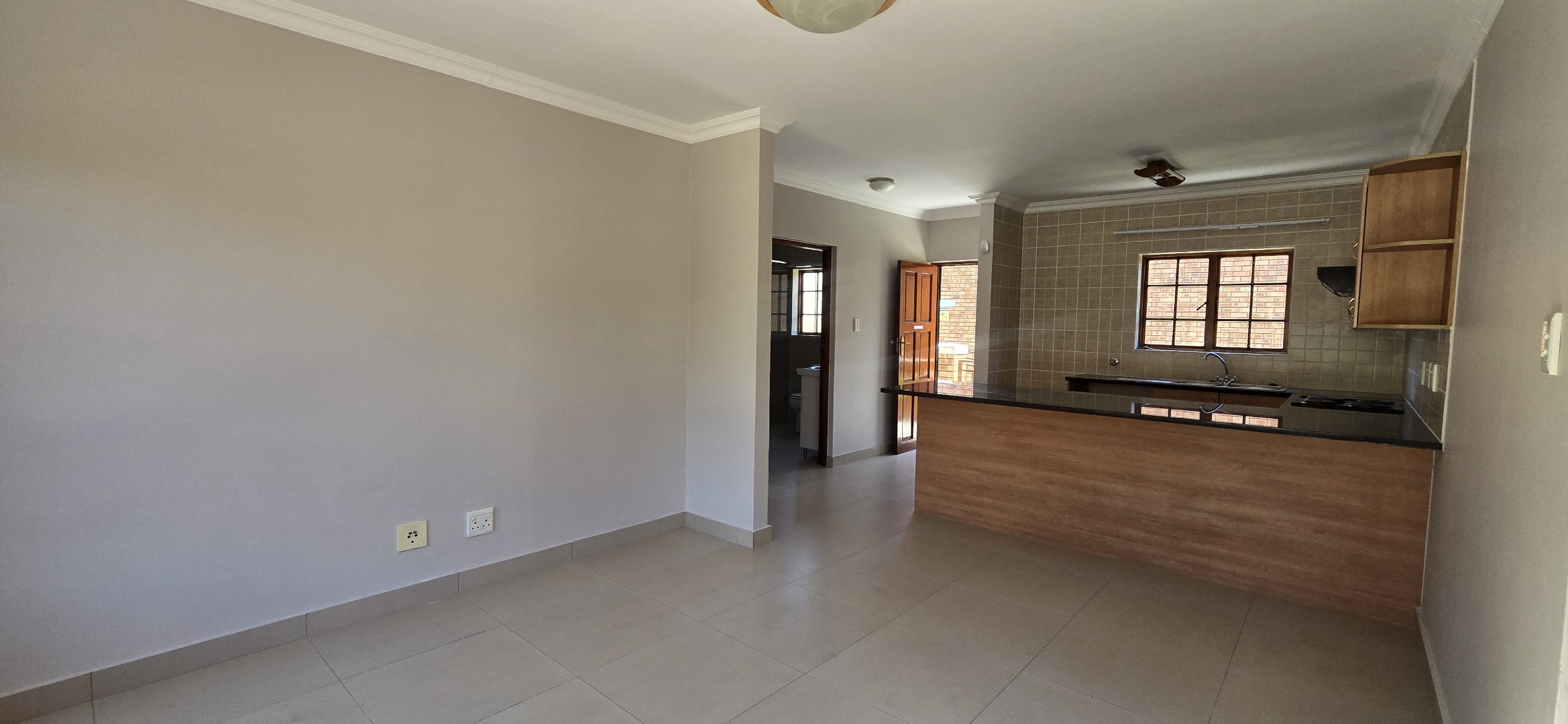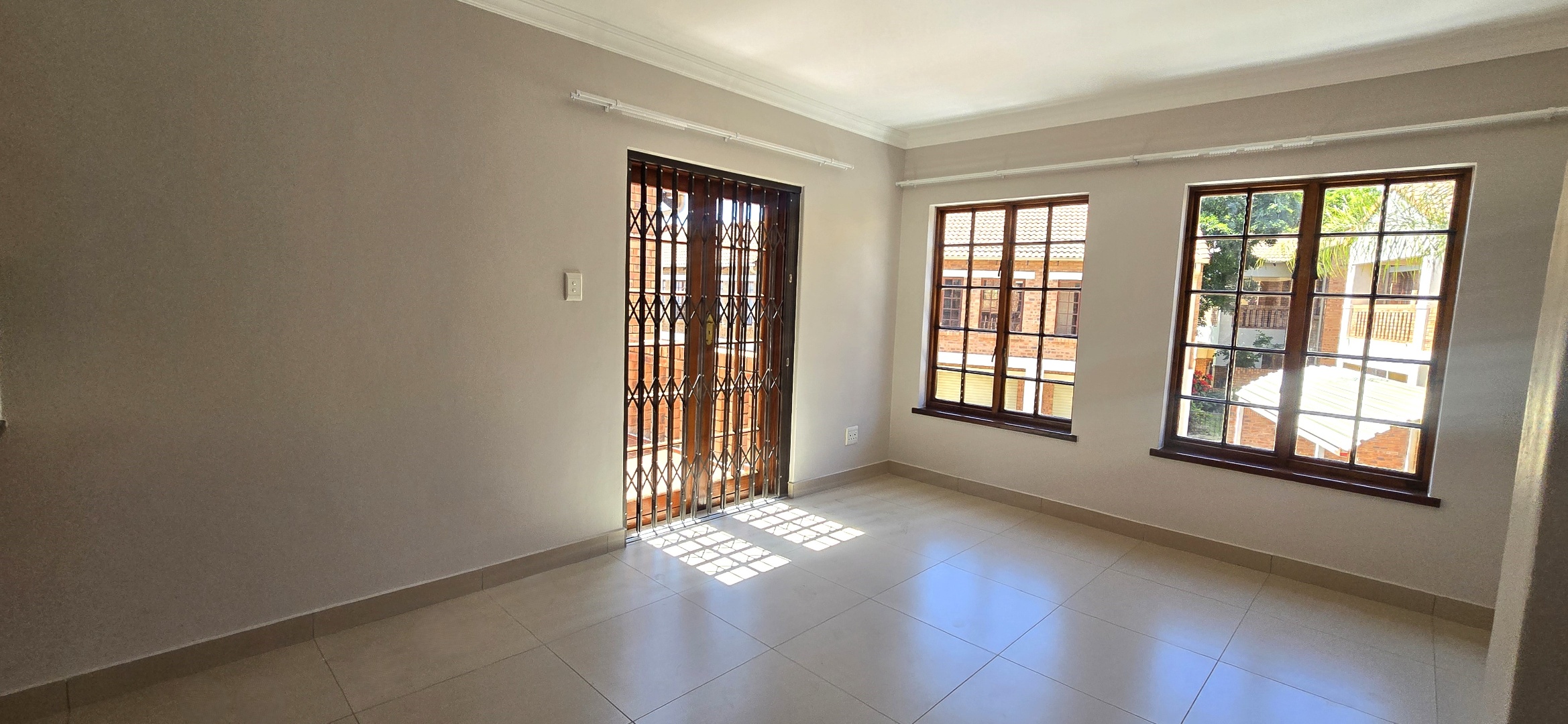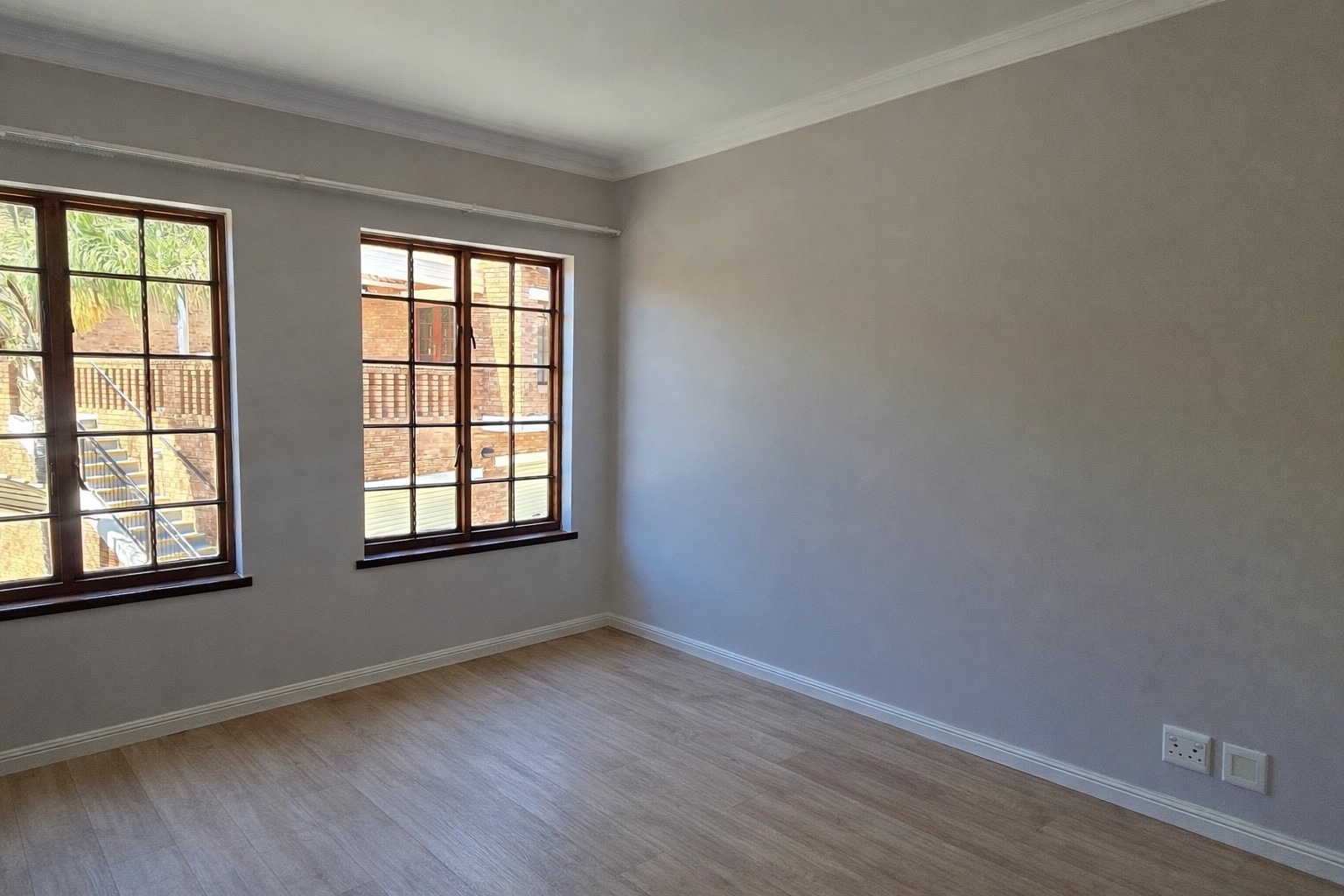 – Filled with natural light, TV point, Double wooden doors opening onto a private balcony