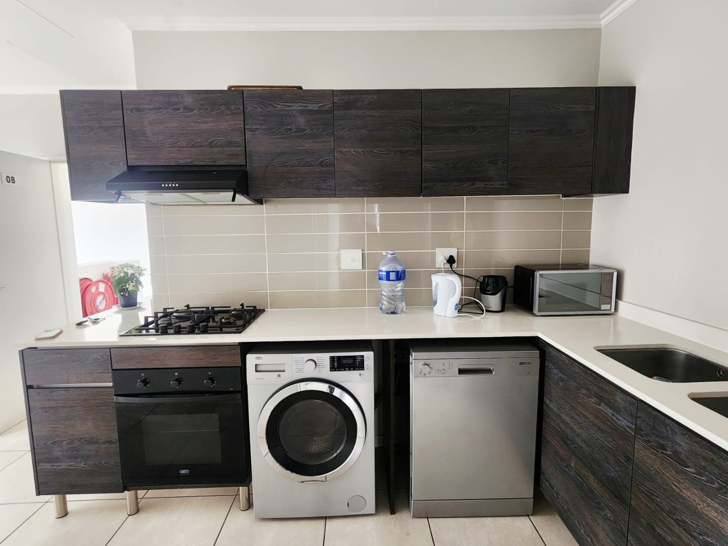 - Washing machine, dishwasher & fridge included
