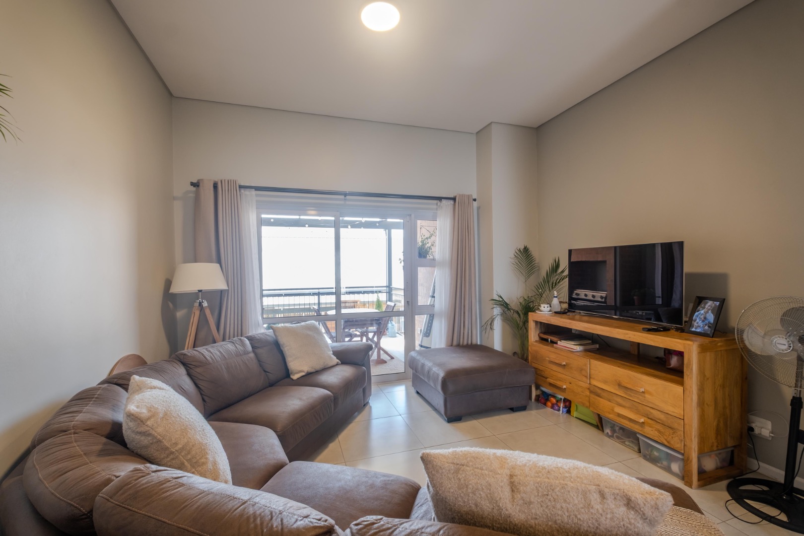 - Open-plan kitchen with ample space for appliances, flowing seamlessly into the living area that opens onto a private balcony with a built-in gas braai — ideal for entertaining.