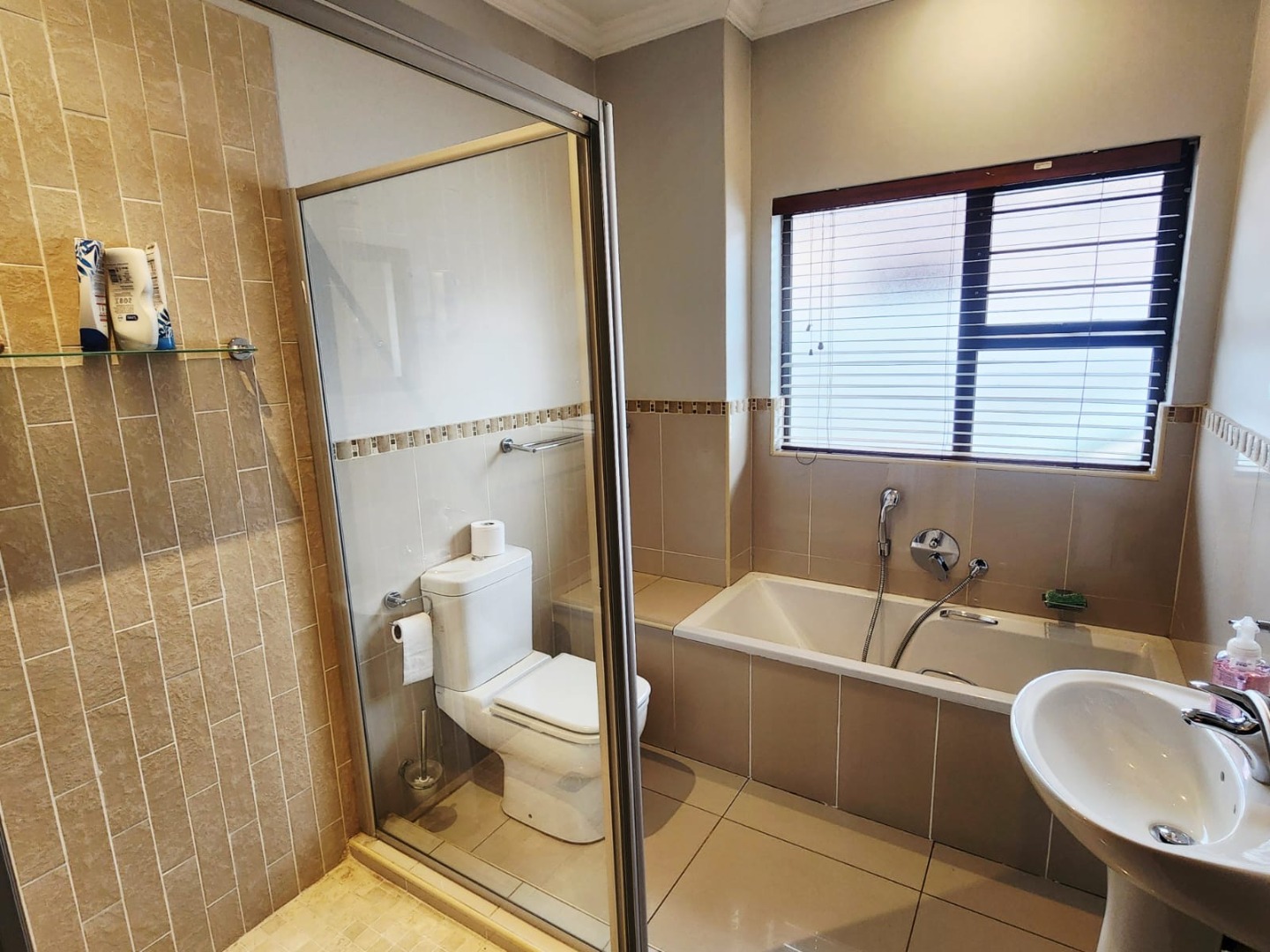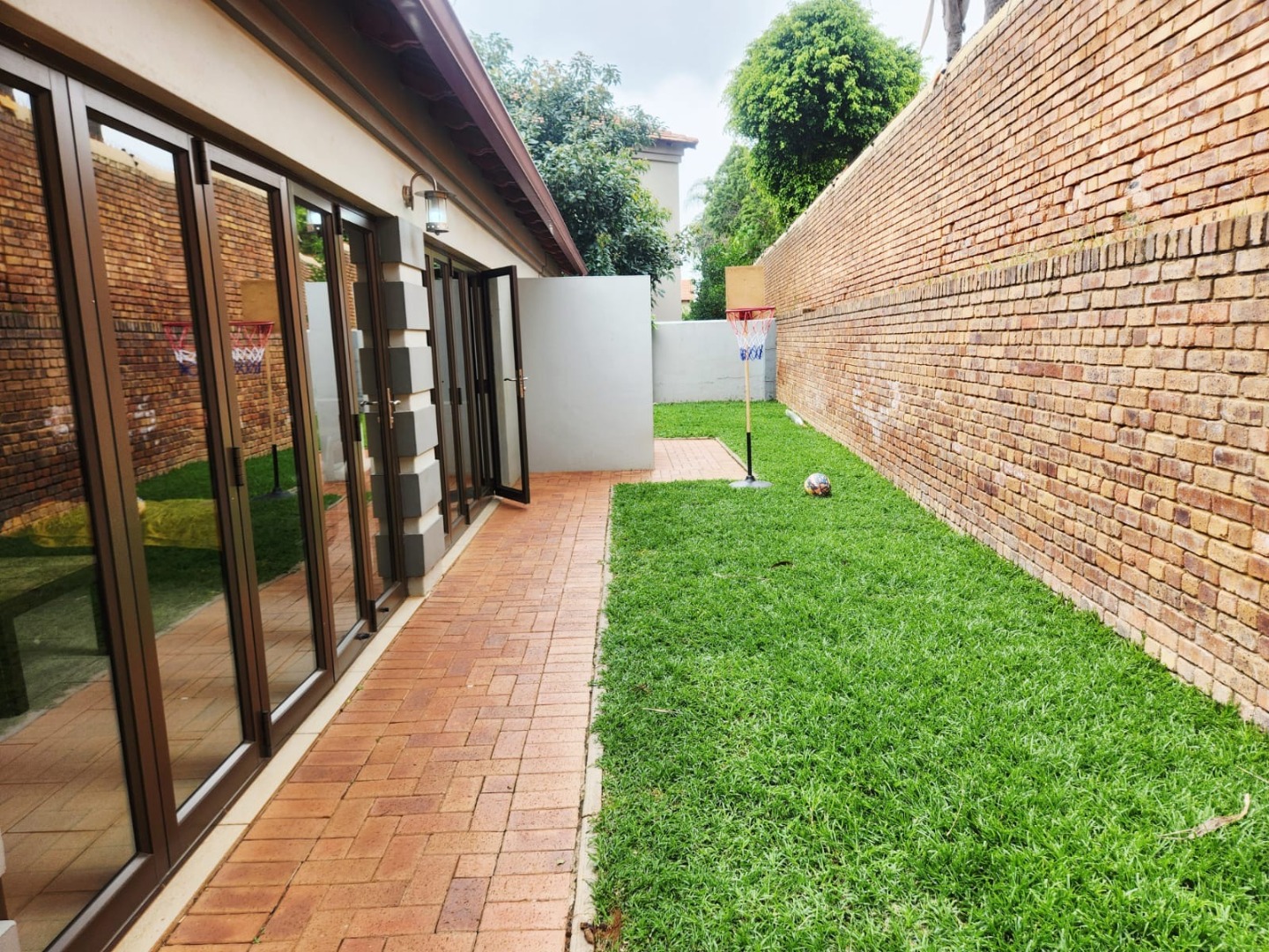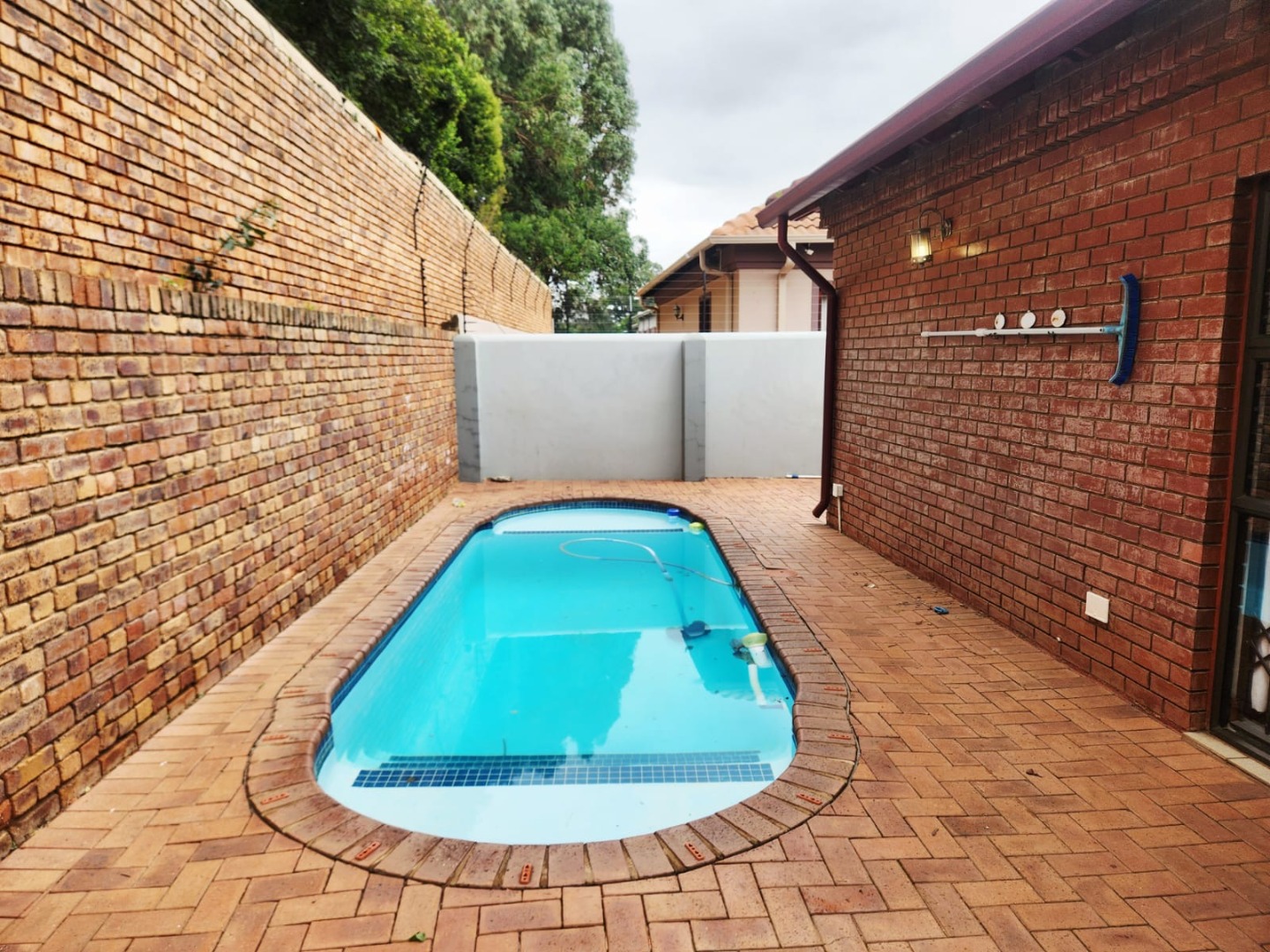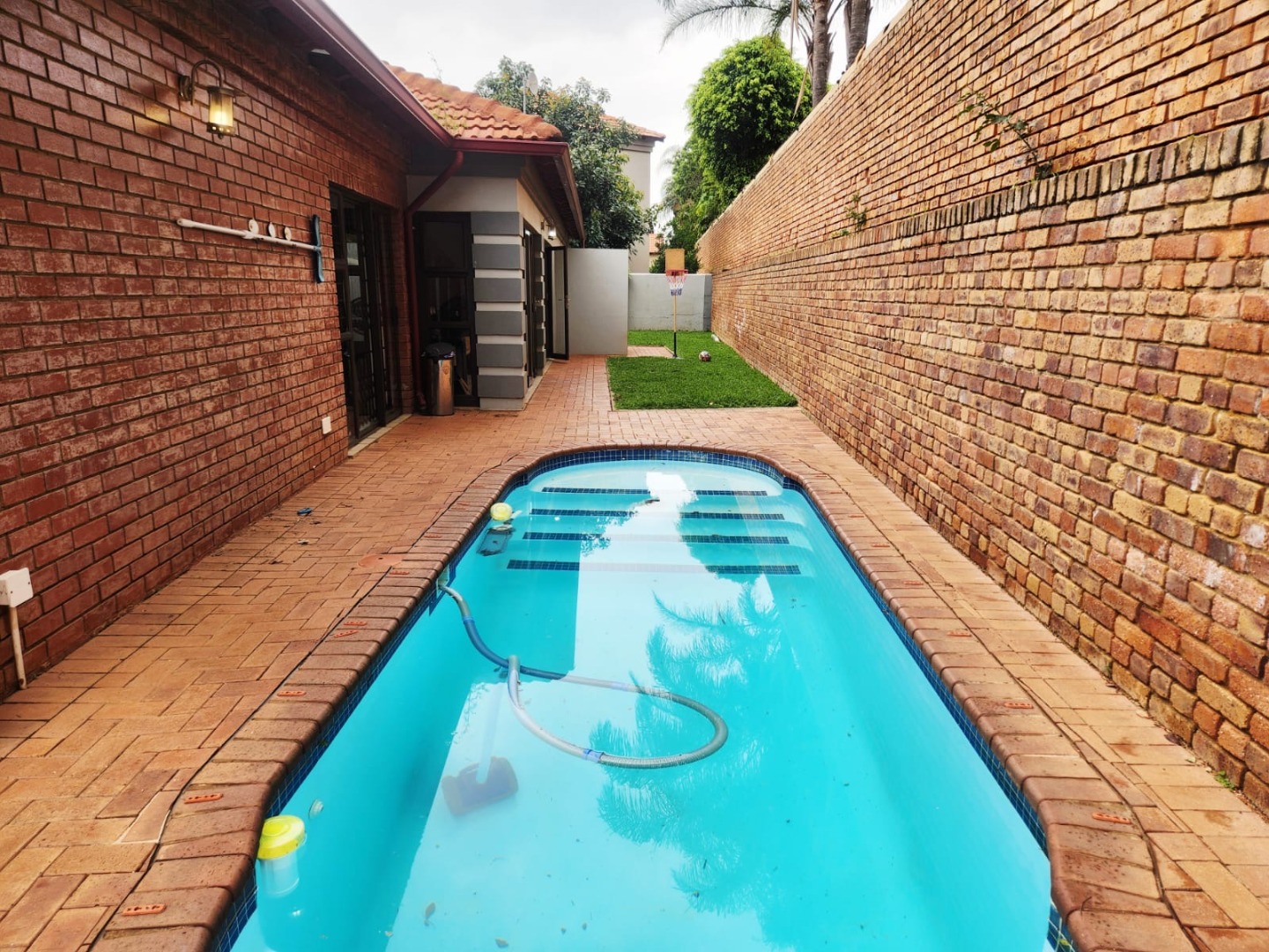 This inviting 3-bedroom, 2.5-bathroom residence is nestled within a secure estate in Equestria, Pretoria. Boasting a well-maintained exterior with a charming brick and painted facade, a red tiled roof, and a neatly paved driveway leading to a double garage, the property offers excellent kerb appeal. The manicured front lawn and mature trees enhance its welcoming ambiance, while access and security gates provide peace of mind.