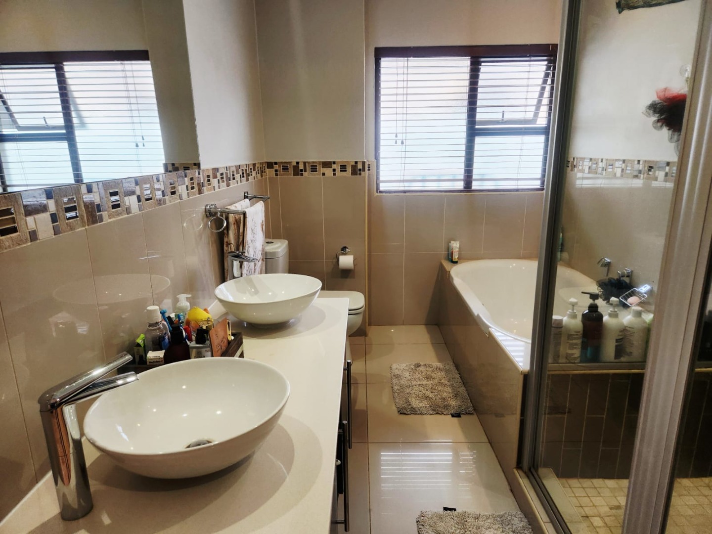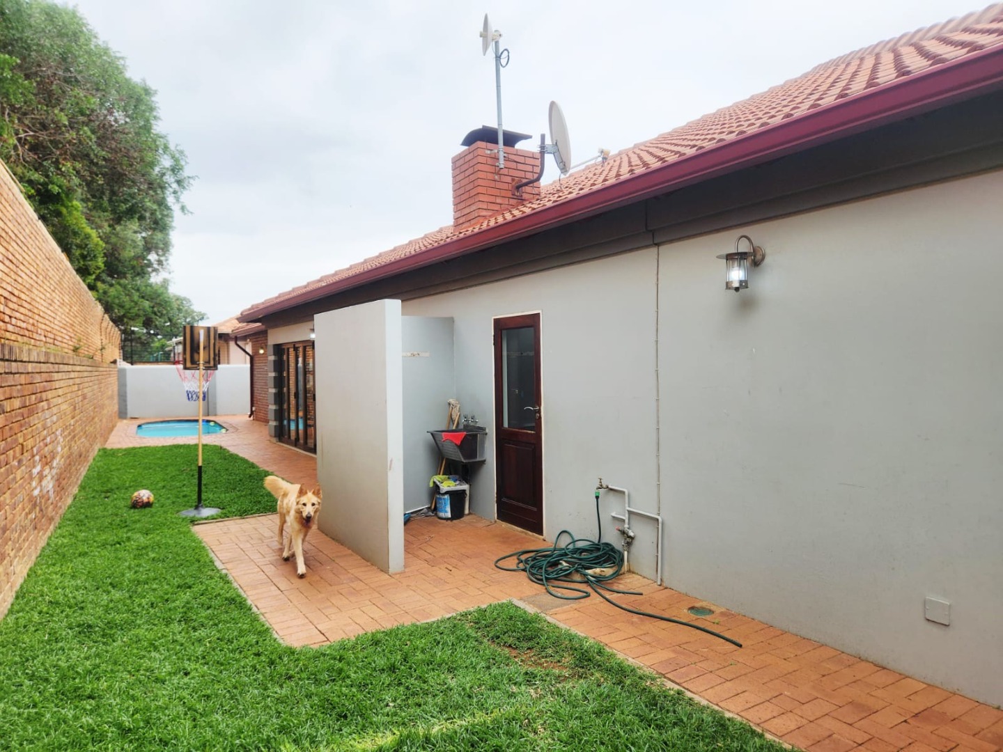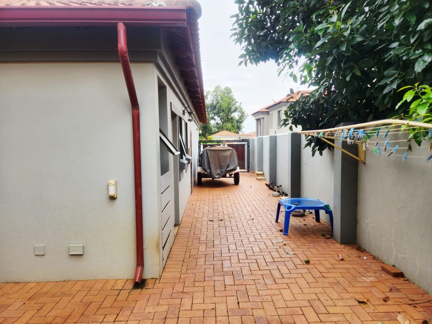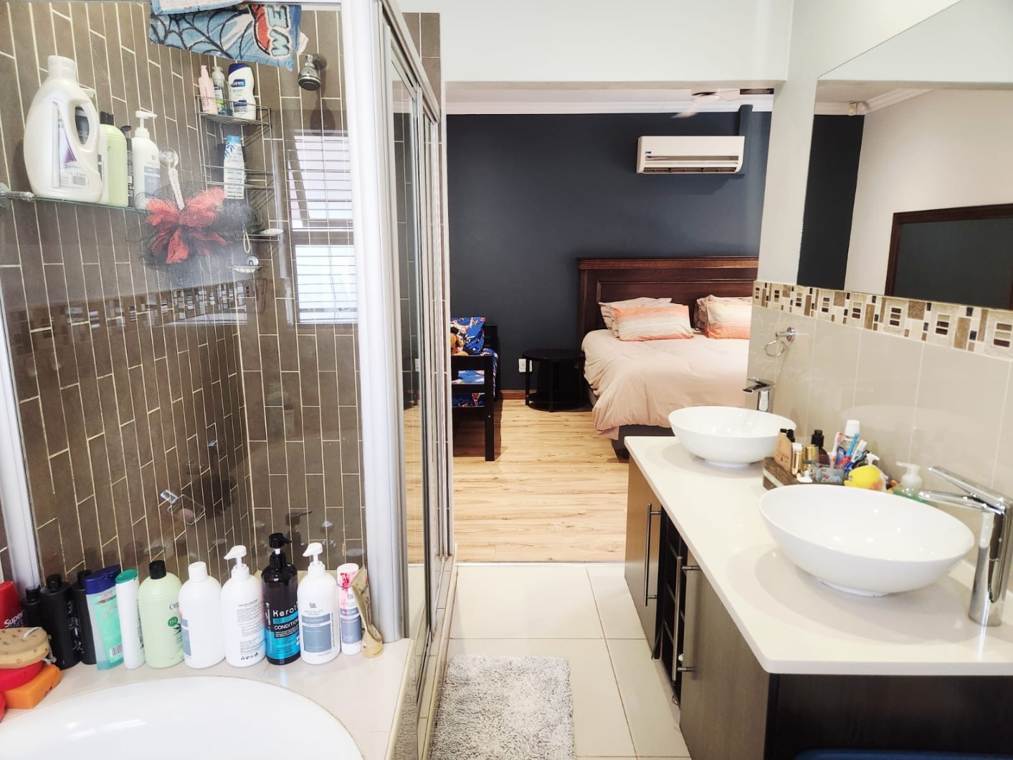 This inviting 3-bedroom, 2.5-bathroom residence is nestled within a secure estate in Equestria, Pretoria. Boasting a well-maintained exterior with a charming brick and painted facade, a red tiled roof, and a neatly paved driveway leading to a double garage, the property offers excellent kerb appeal. The manicured front lawn and mature trees enhance its welcoming ambiance, while access and security gates provide peace of mind.