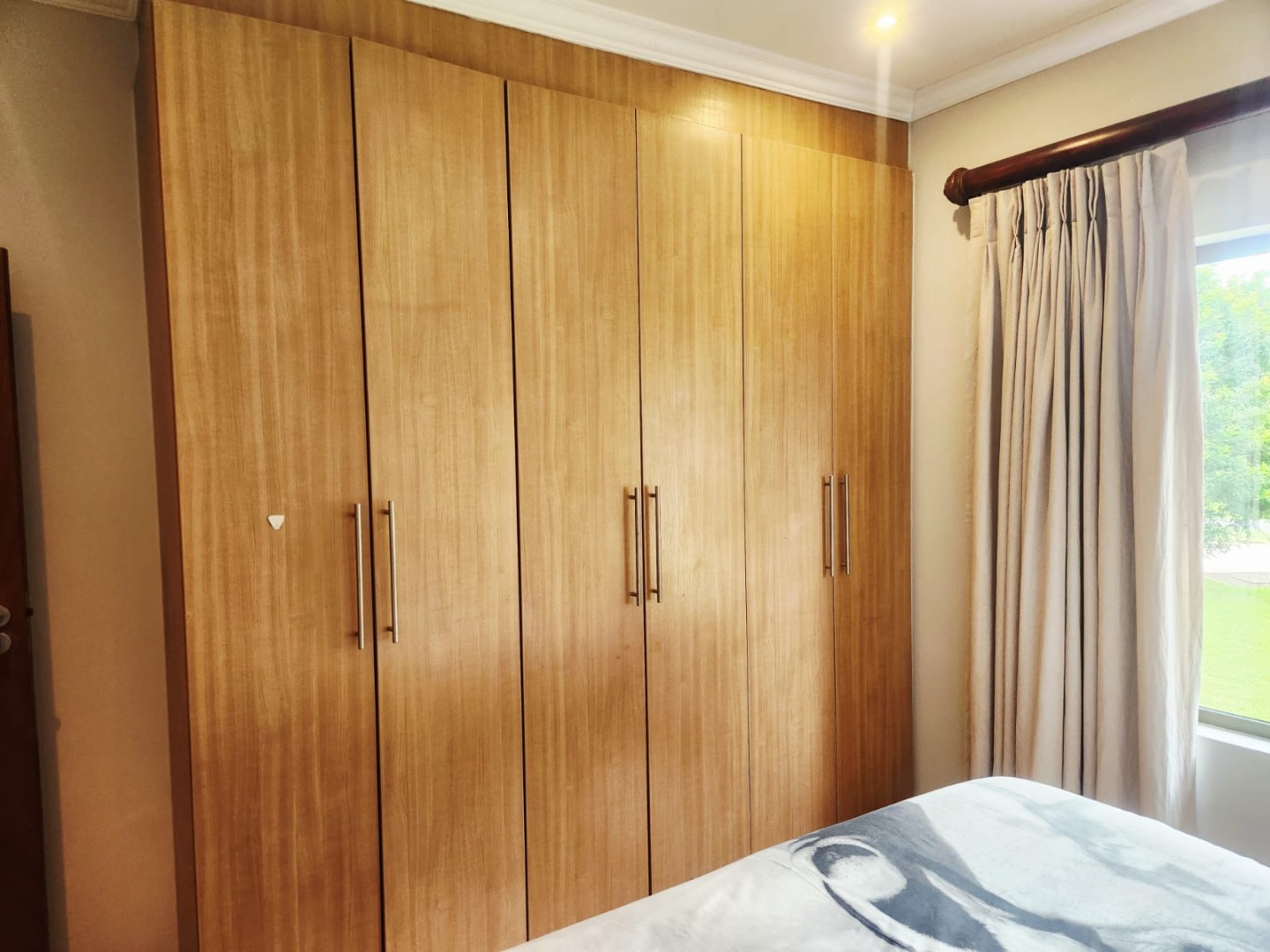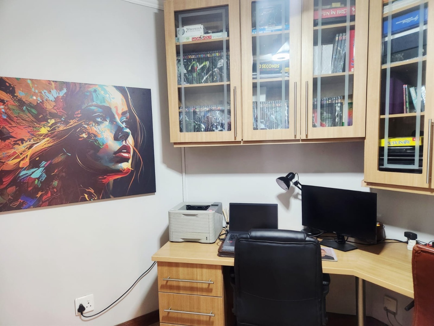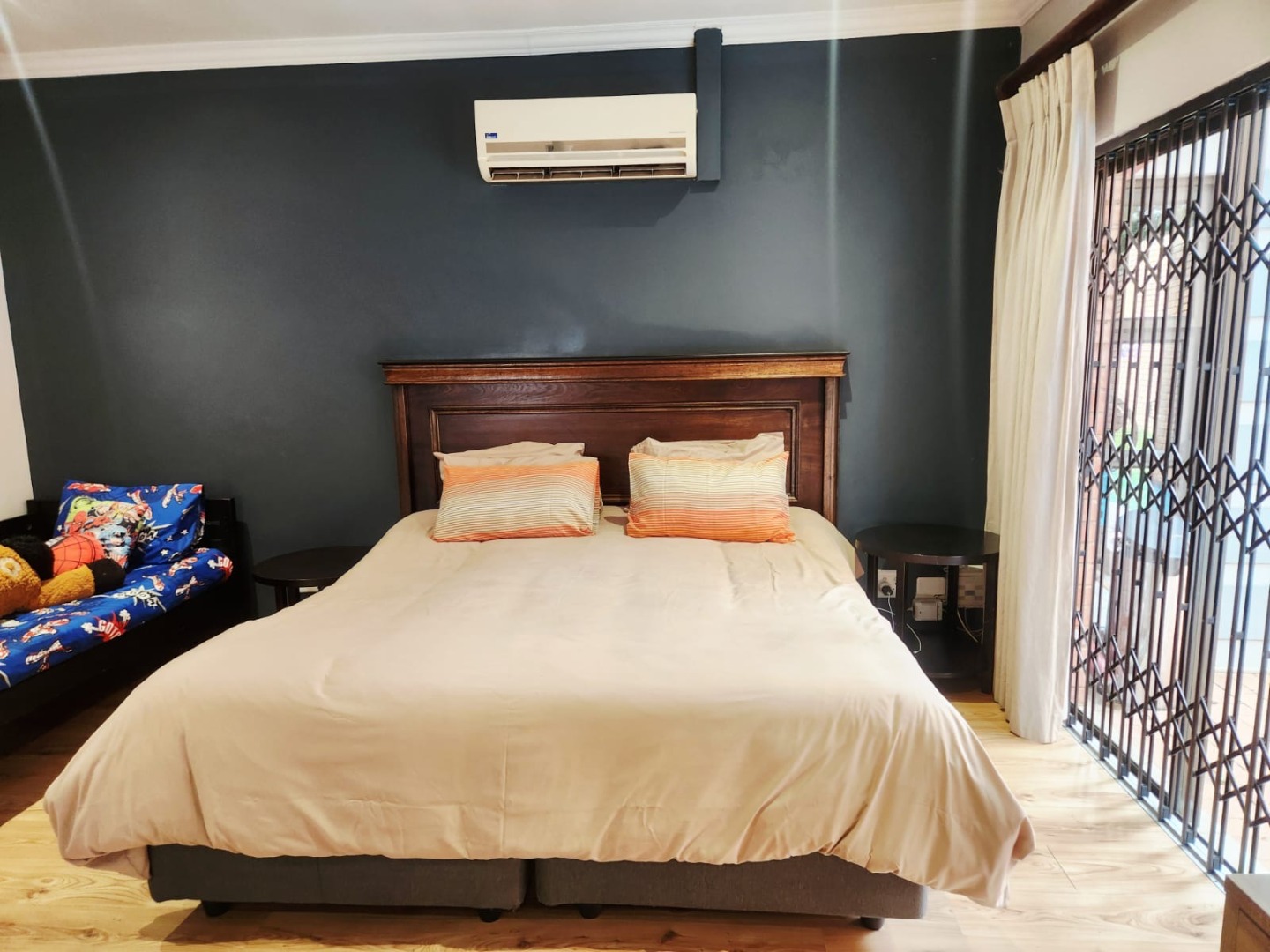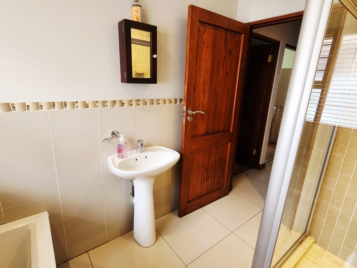 This inviting 3-bedroom, 2.5-bathroom residence is nestled within a secure estate in Equestria, Pretoria. Boasting a well-maintained exterior with a charming brick and painted facade, a red tiled roof, and a neatly paved driveway leading to a double garage, the property offers excellent kerb appeal. The manicured front lawn and mature trees enhance its welcoming ambiance, while access and security gates provide peace of mind.