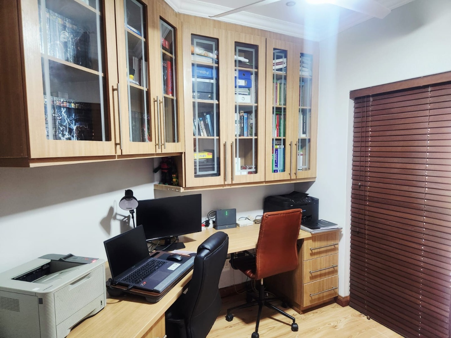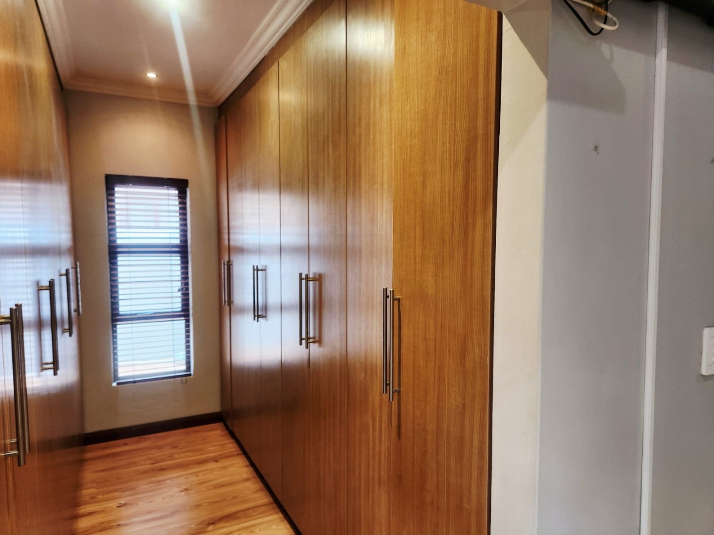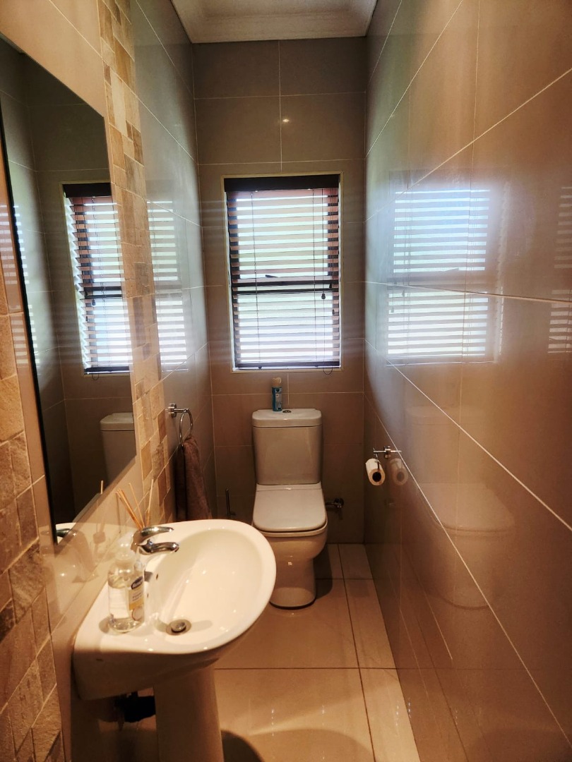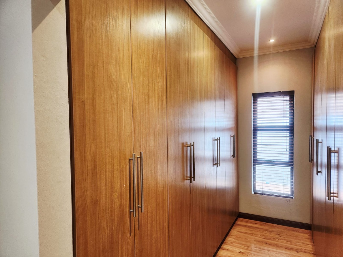 This inviting 3-bedroom, 2.5-bathroom residence is nestled within a secure estate in Equestria, Pretoria. Boasting a well-maintained exterior with a charming brick and painted facade, a red tiled roof, and a neatly paved driveway leading to a double garage, the property offers excellent kerb appeal. The manicured front lawn and mature trees enhance its welcoming ambiance, while access and security gates provide peace of mind.
