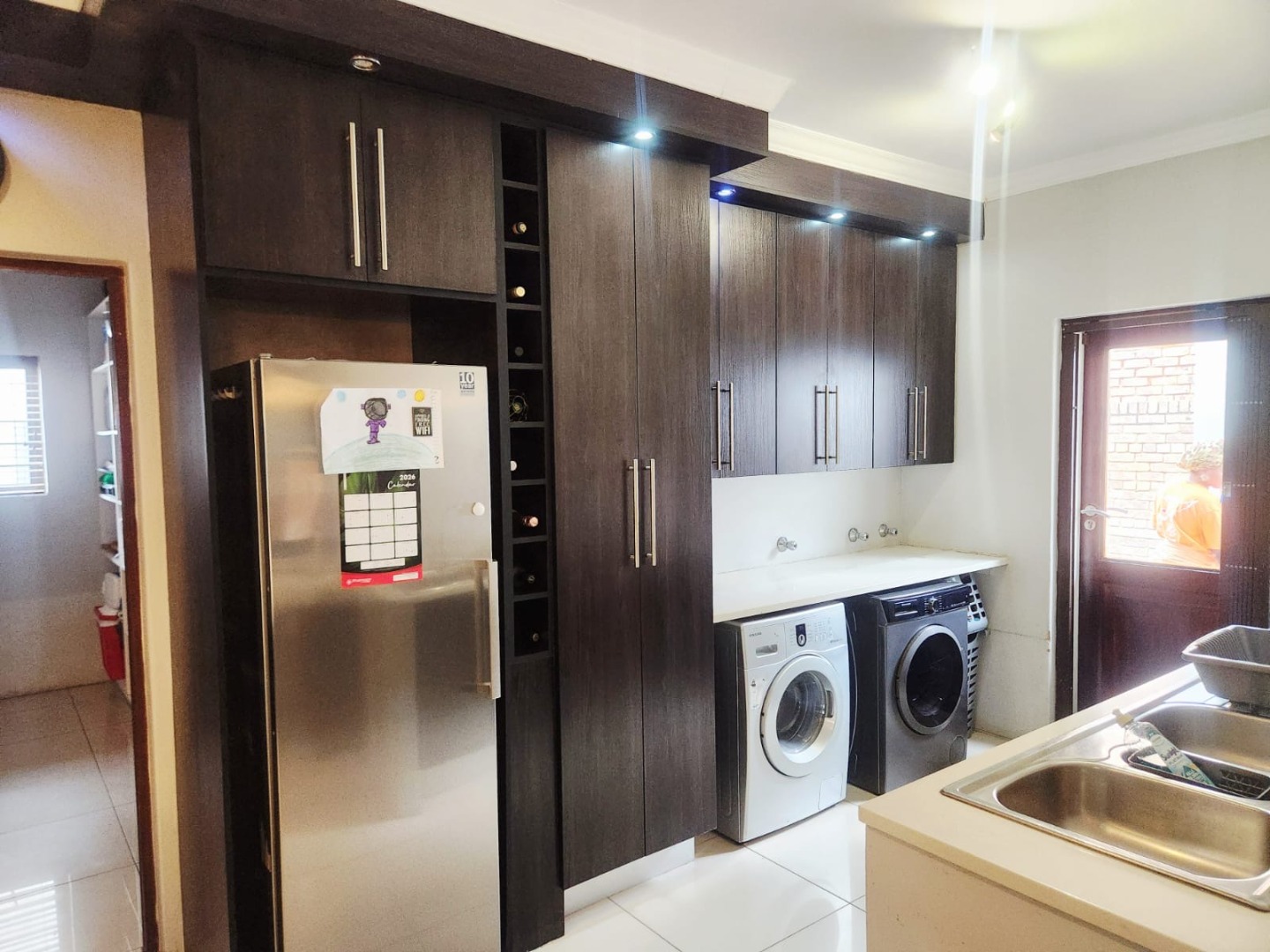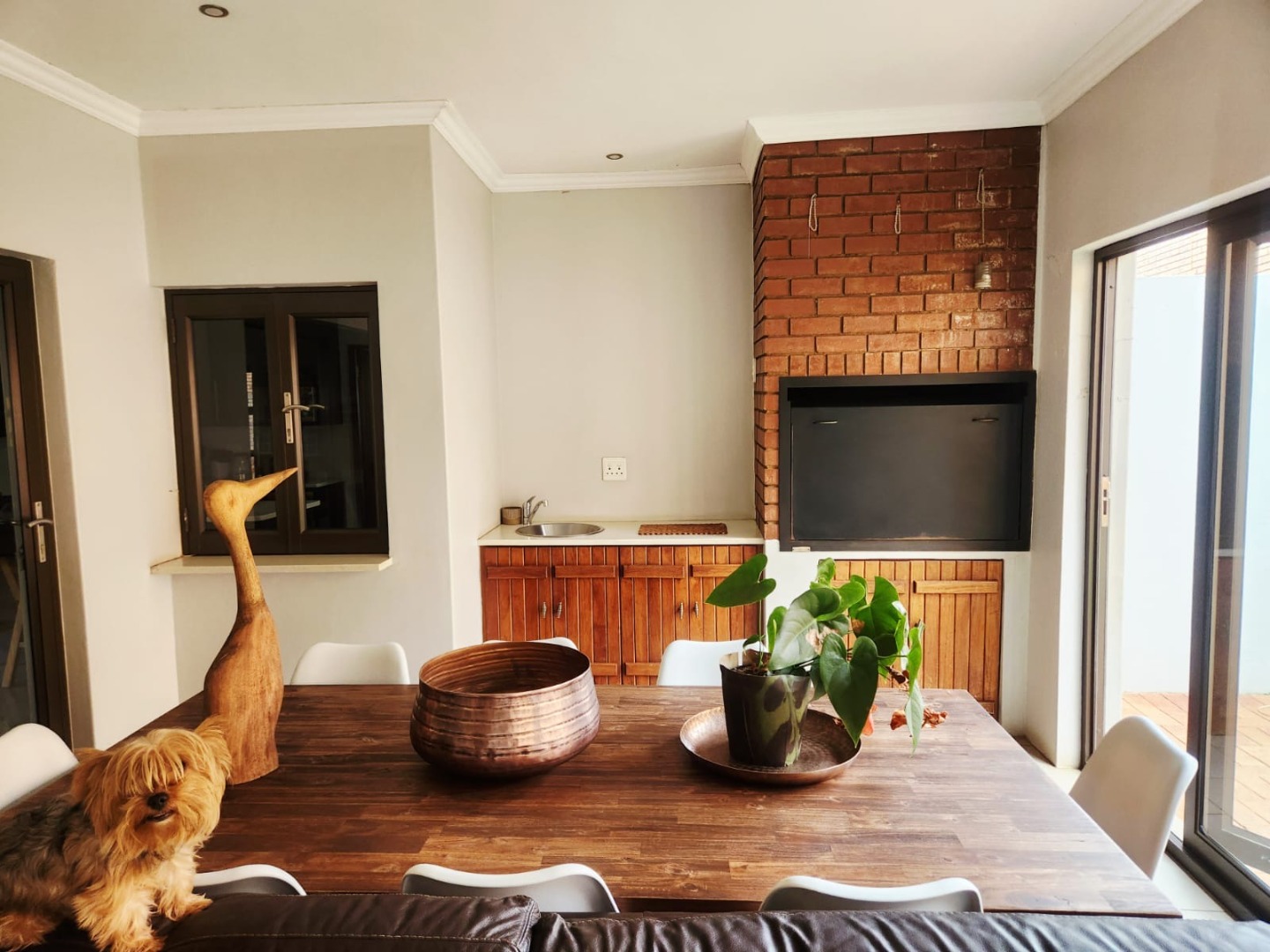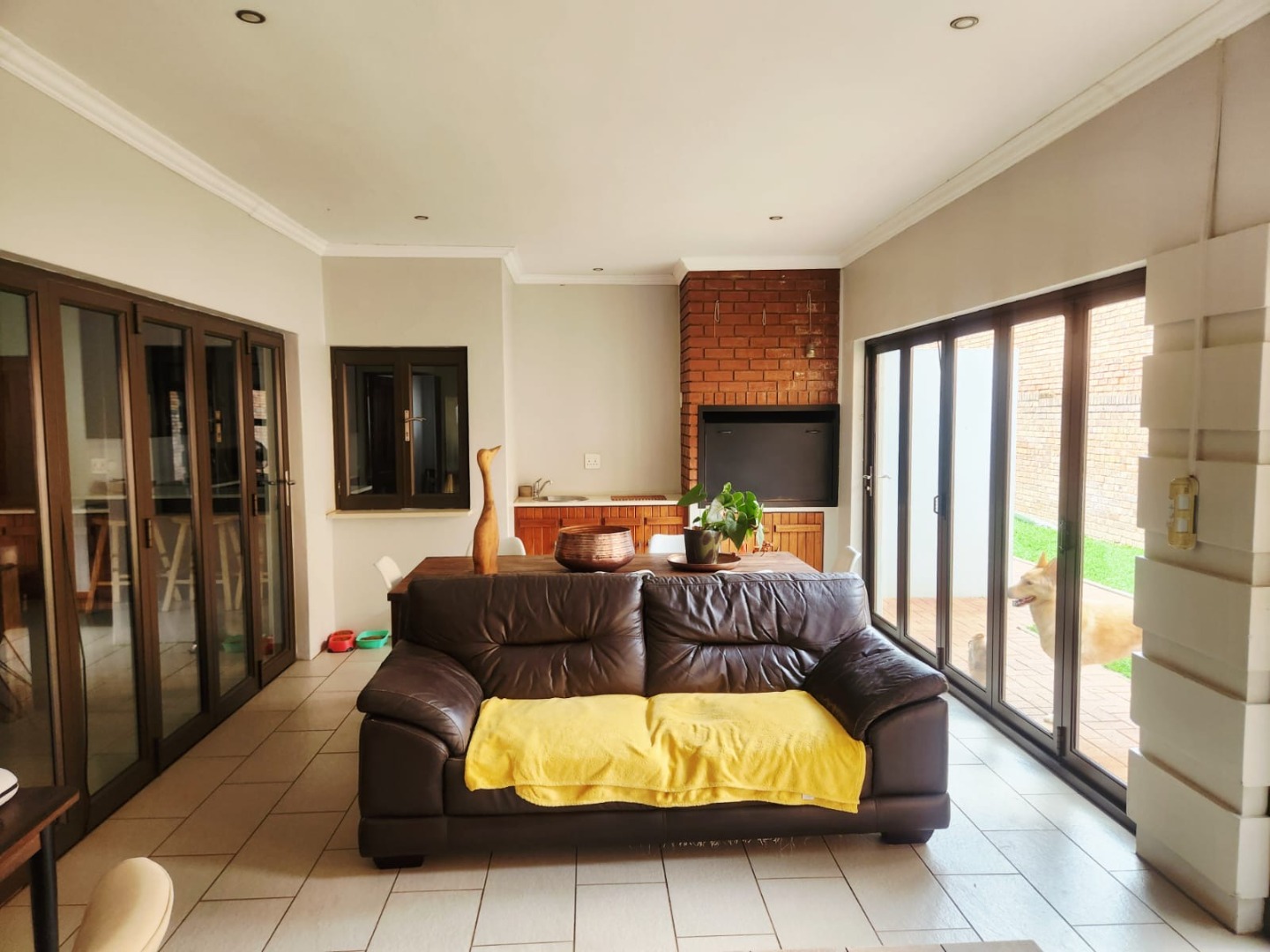 Spanning 270 sqm, the home features an open-plan layout designed for modern living. The spacious lounge, dining room, and family/TV room are bathed in natural light, thanks to extensive bi-fold and sliding glass doors that seamlessly connect indoor and outdoor spaces. A well-appointed kitchen with a large pantry ensures functionality, complemented by an impressive indoor entertainment area boasting a built-in braai and kitchenette/bar, perfect for hosting.