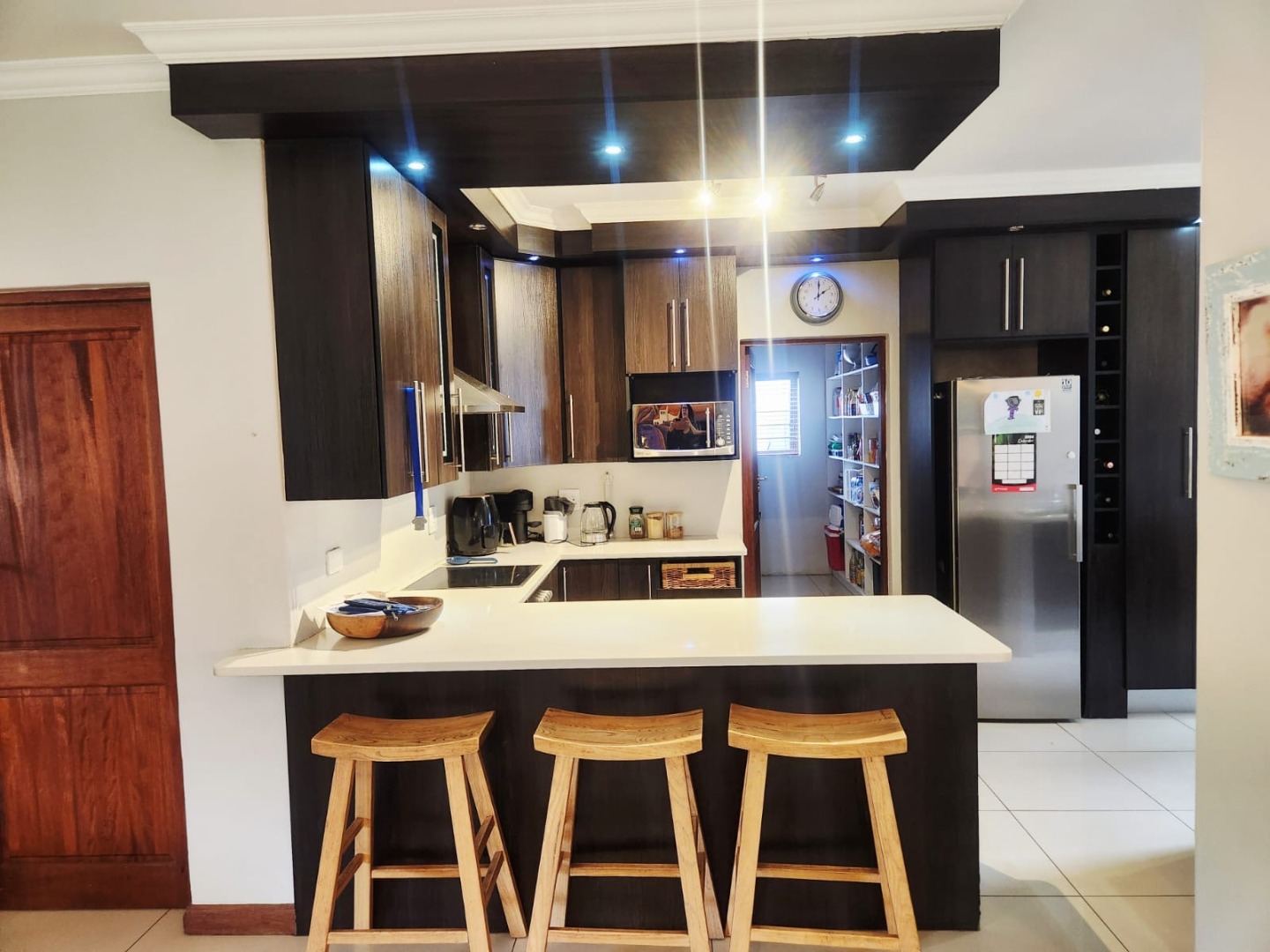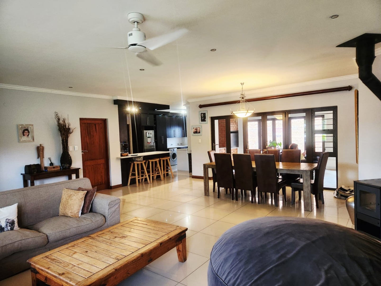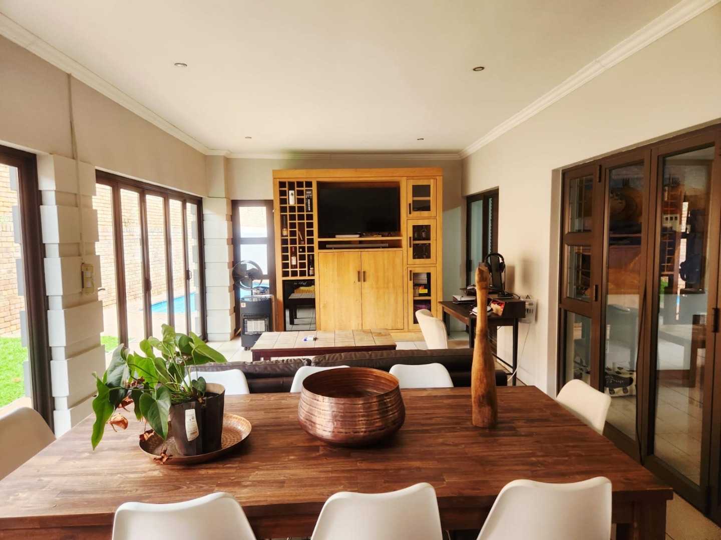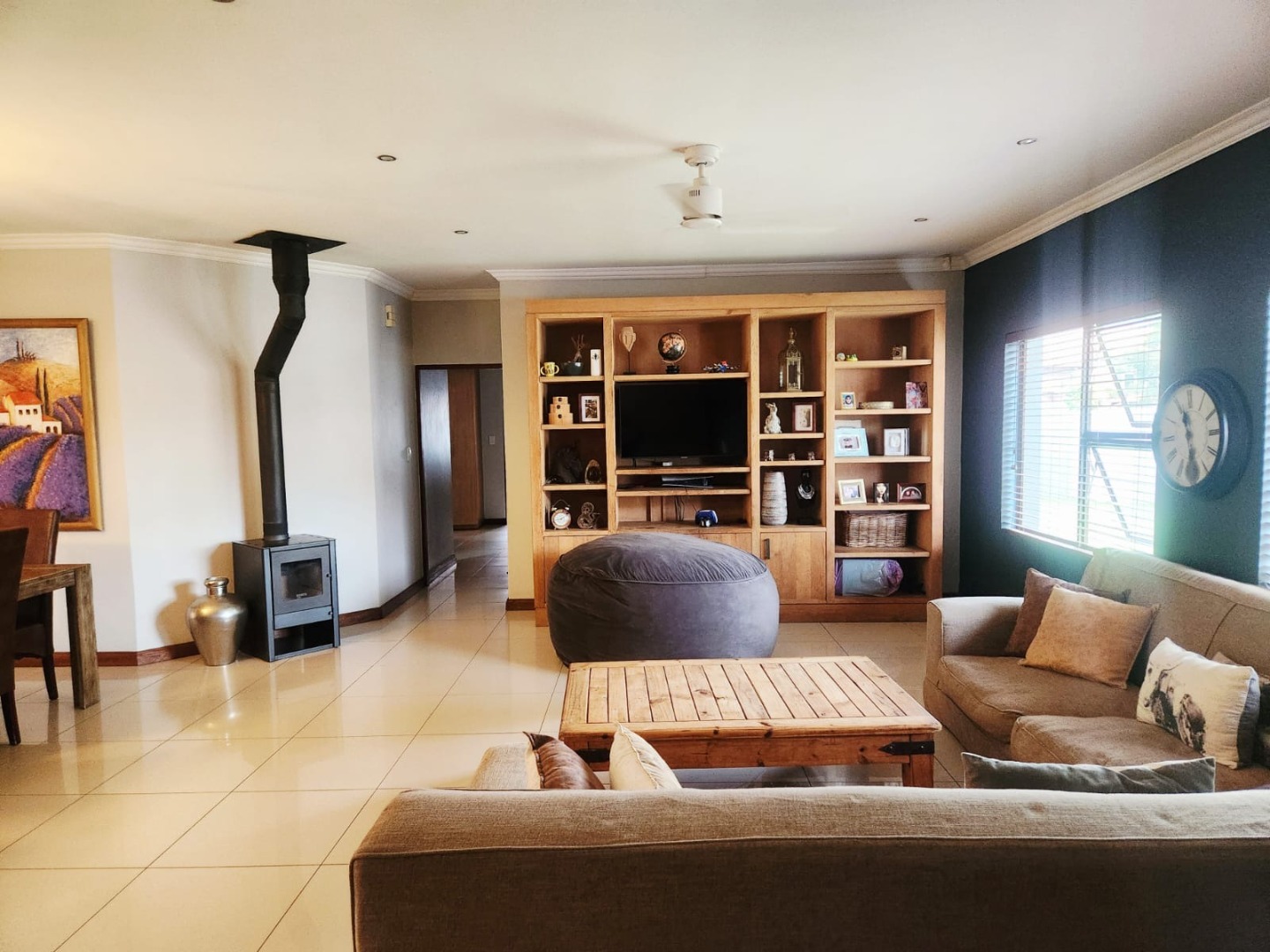 Spanning 270 sqm, the home features an open-plan layout designed for modern living. The spacious lounge, dining room, and family/TV room are bathed in natural light, thanks to extensive bi-fold and sliding glass doors that seamlessly connect indoor and outdoor spaces. A well-appointed kitchen with a large pantry ensures functionality, complemented by an impressive indoor entertainment area boasting a built-in braai and kitchenette/bar, perfect for hosting.