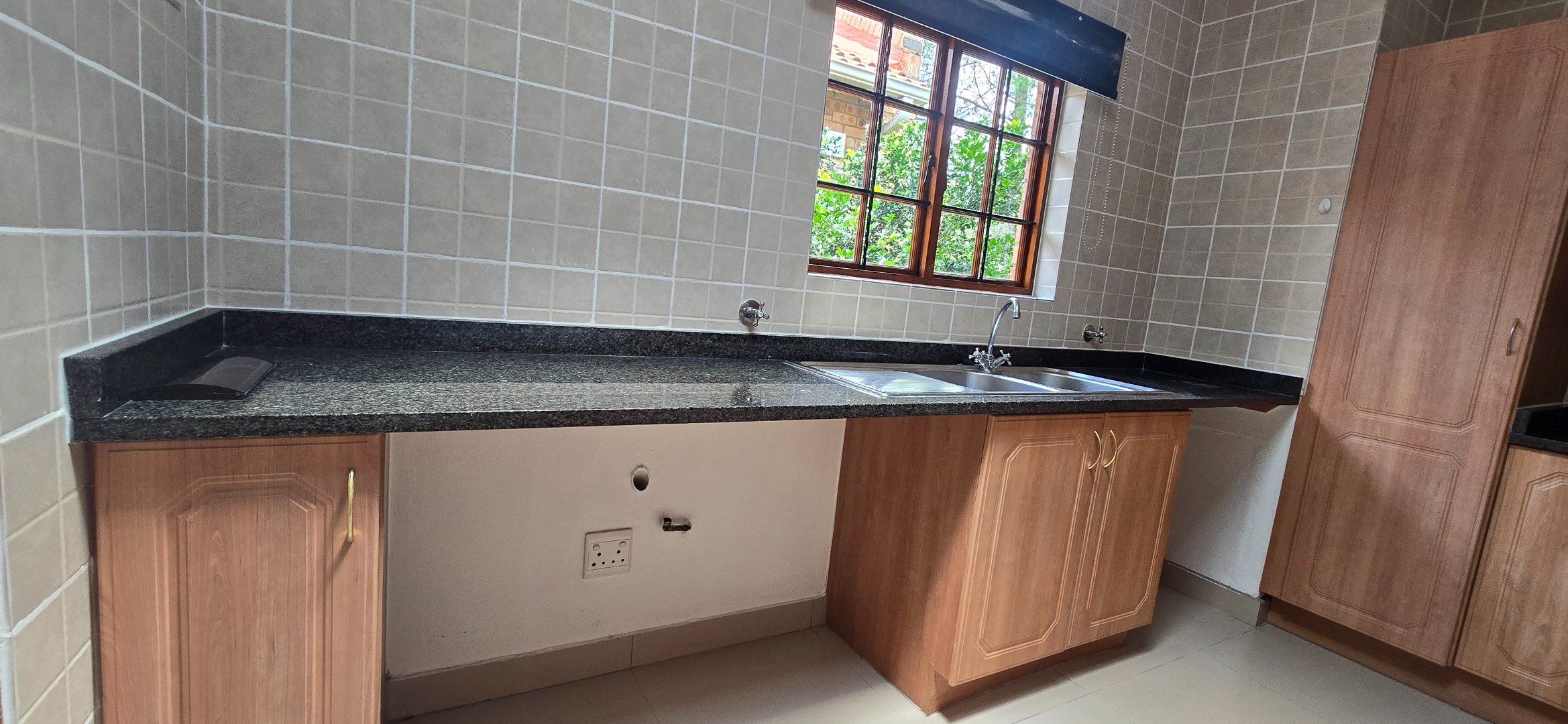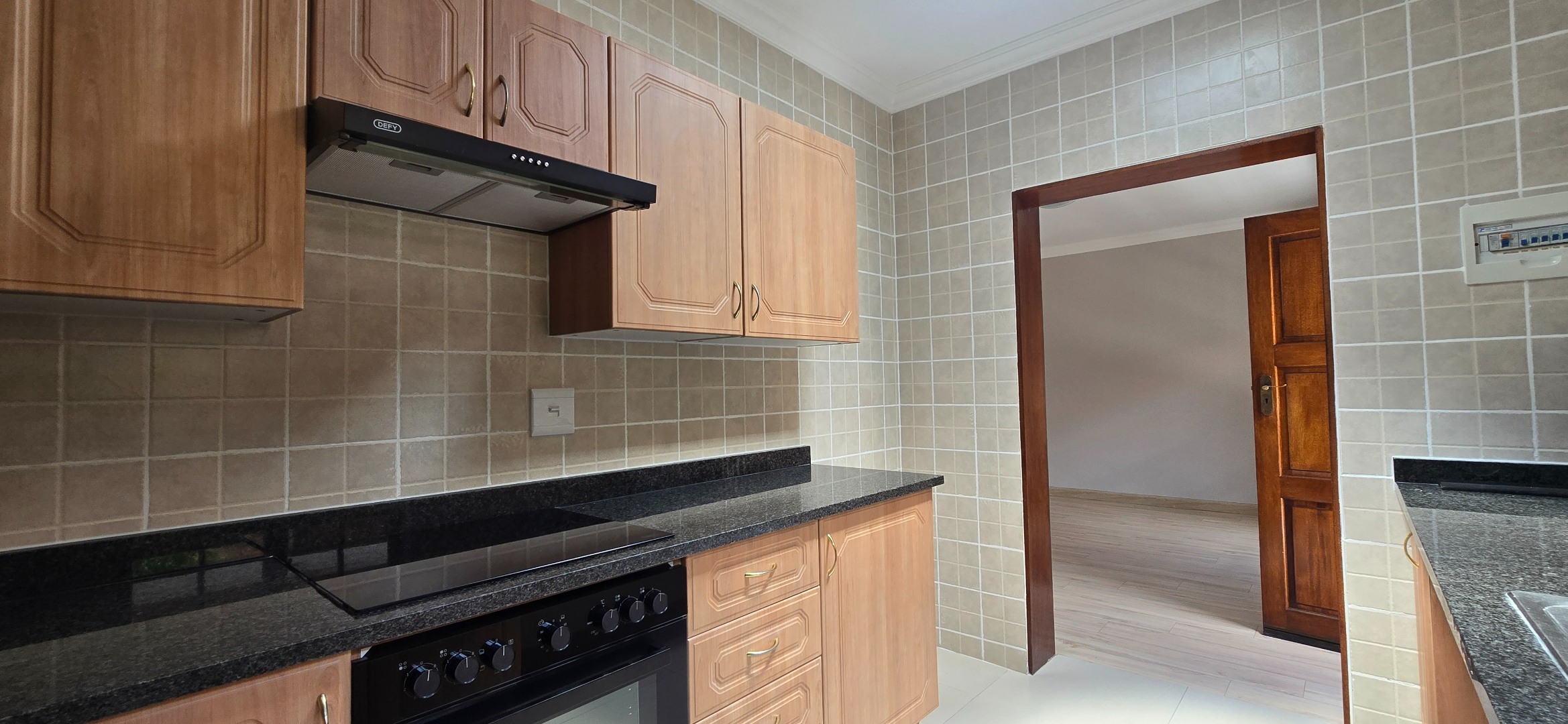 • Separate kitchen – granite tops, ample cupboards, 2 water inlets, space for 2 appliances, stove with hob, oven & extractor.