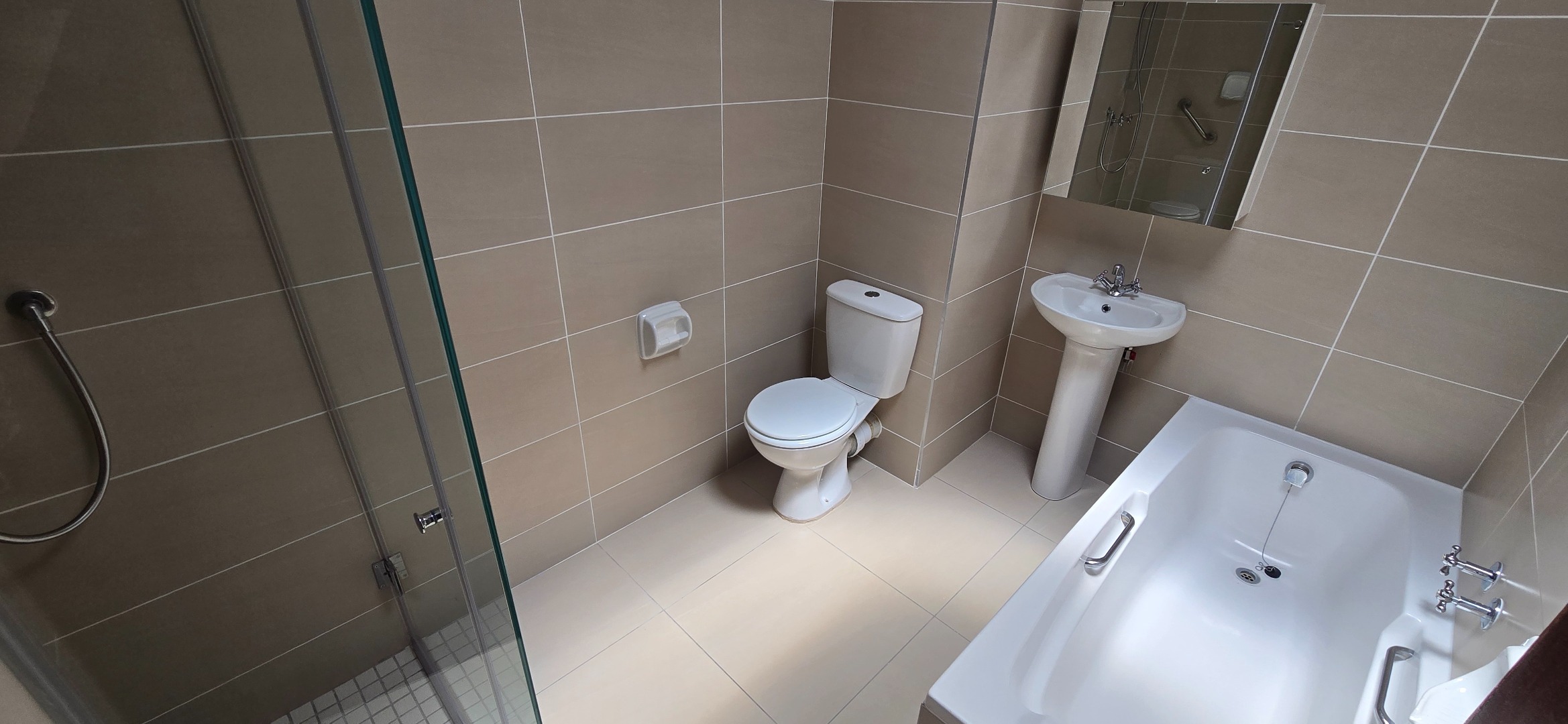 • Two bathrooms – main with bath, shower, basin & toilet; second with shower, basin & toilet.