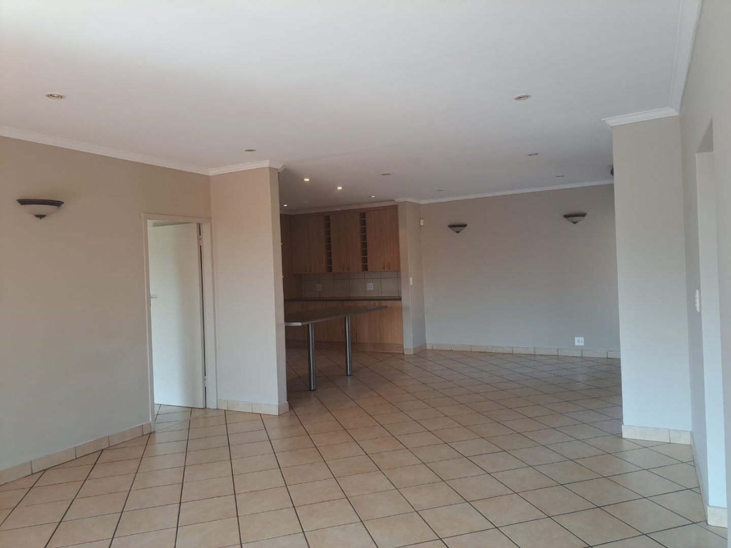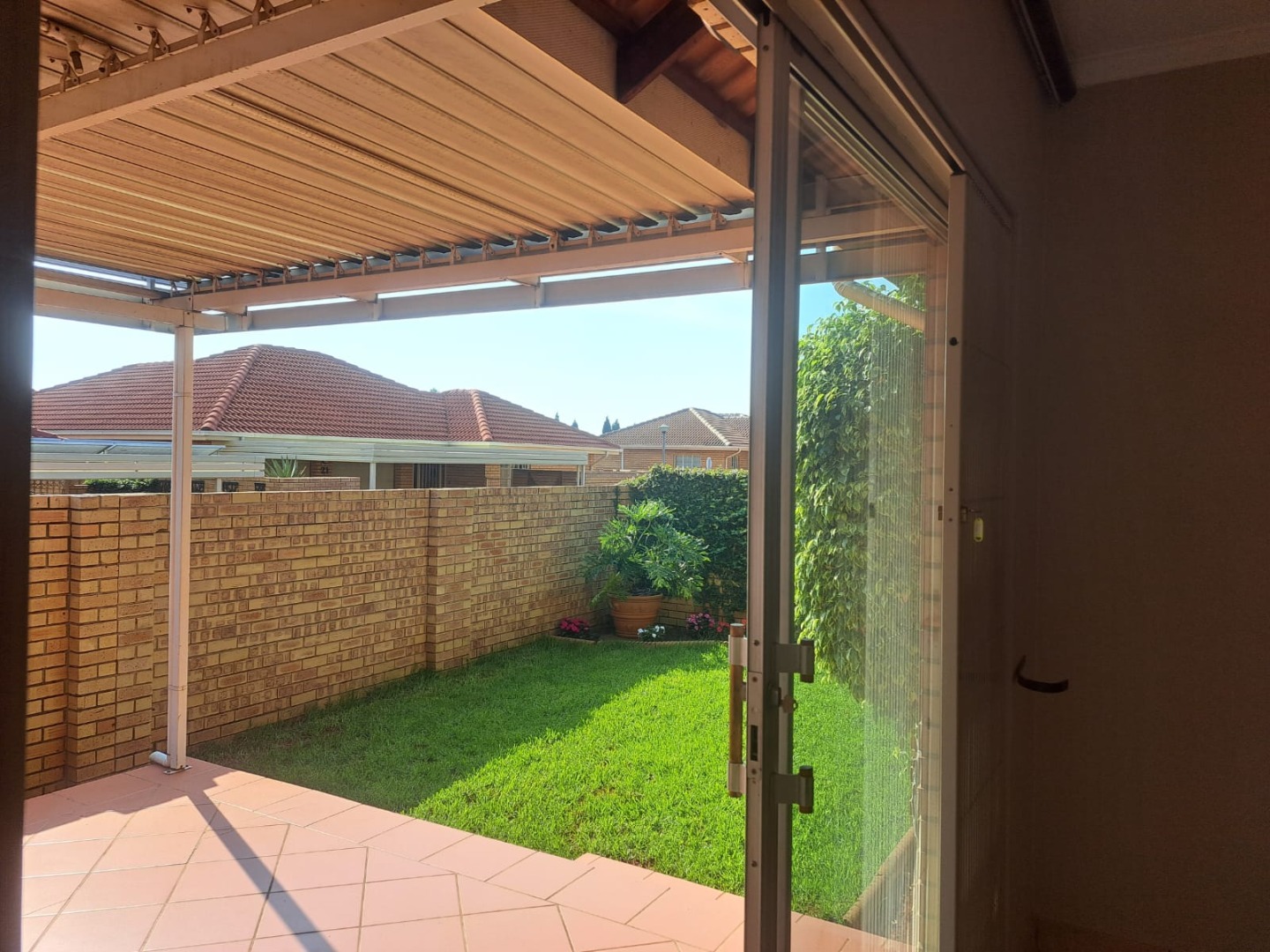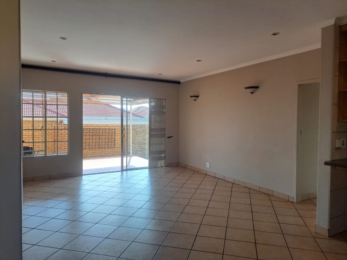 leading to the covered patio and built-in braai through a double sliding door.