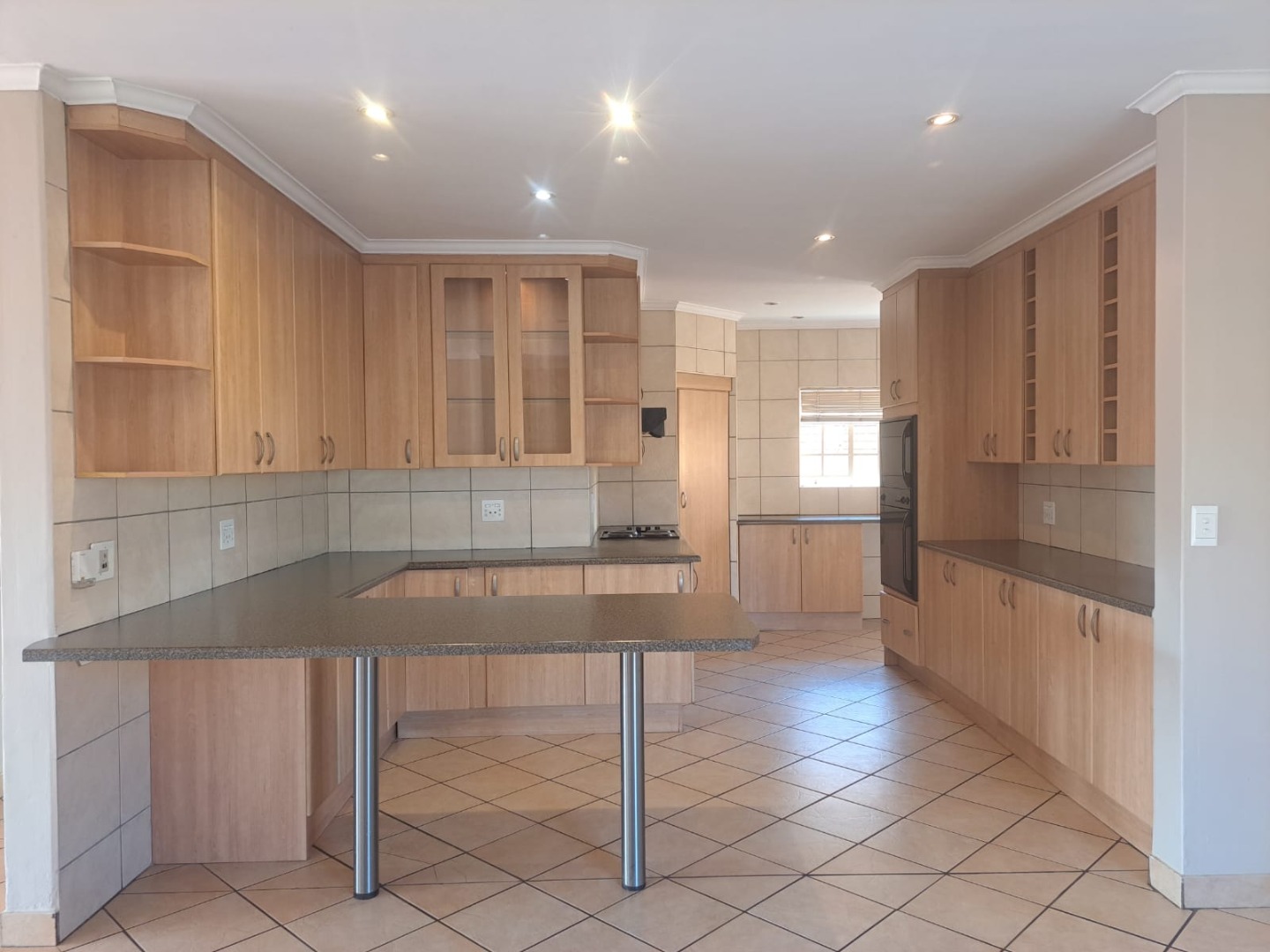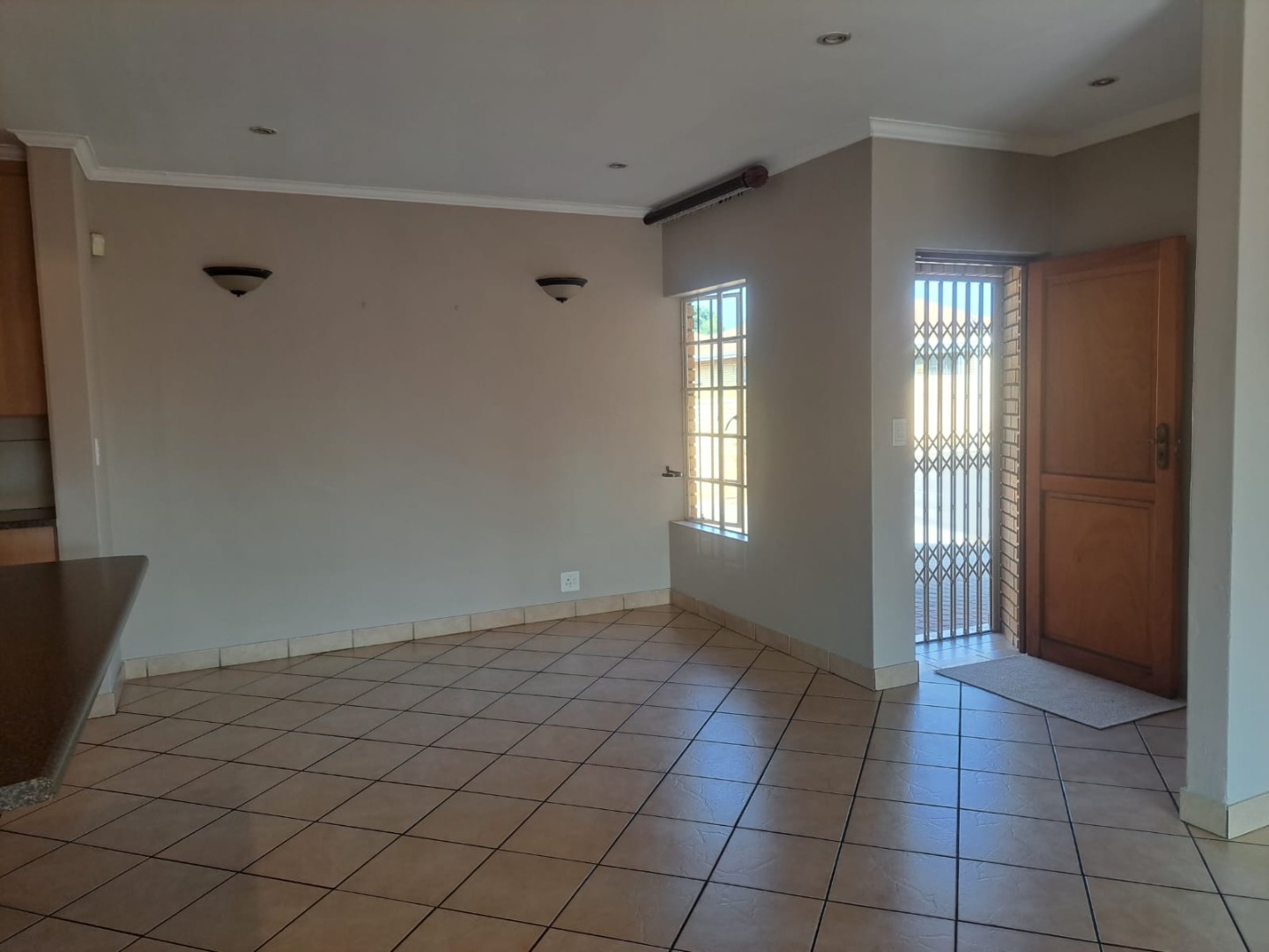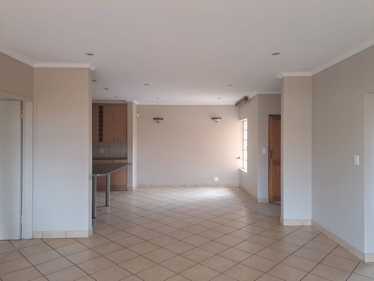 leading to the covered patio and built-in braai through a double sliding door.