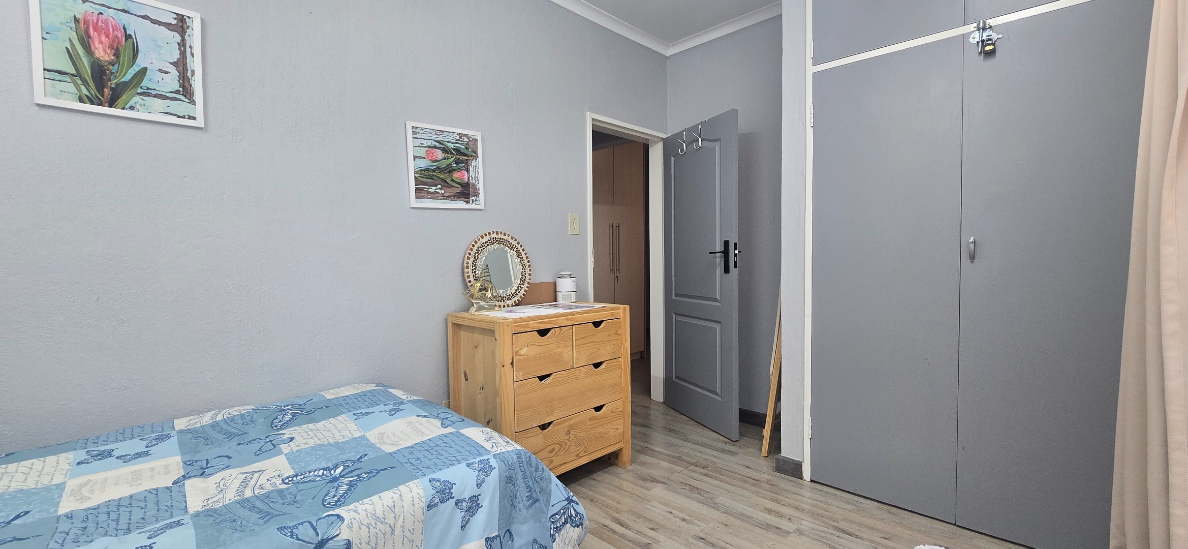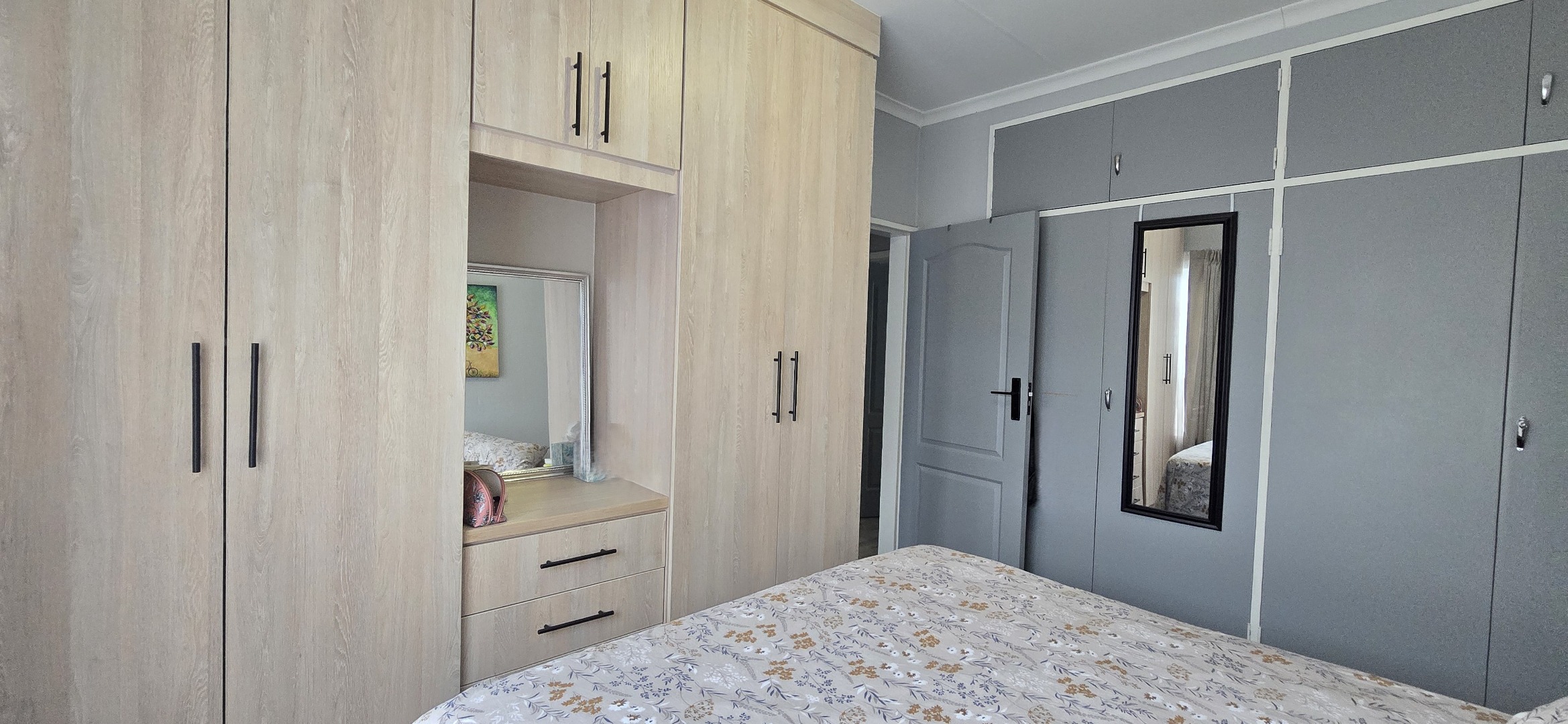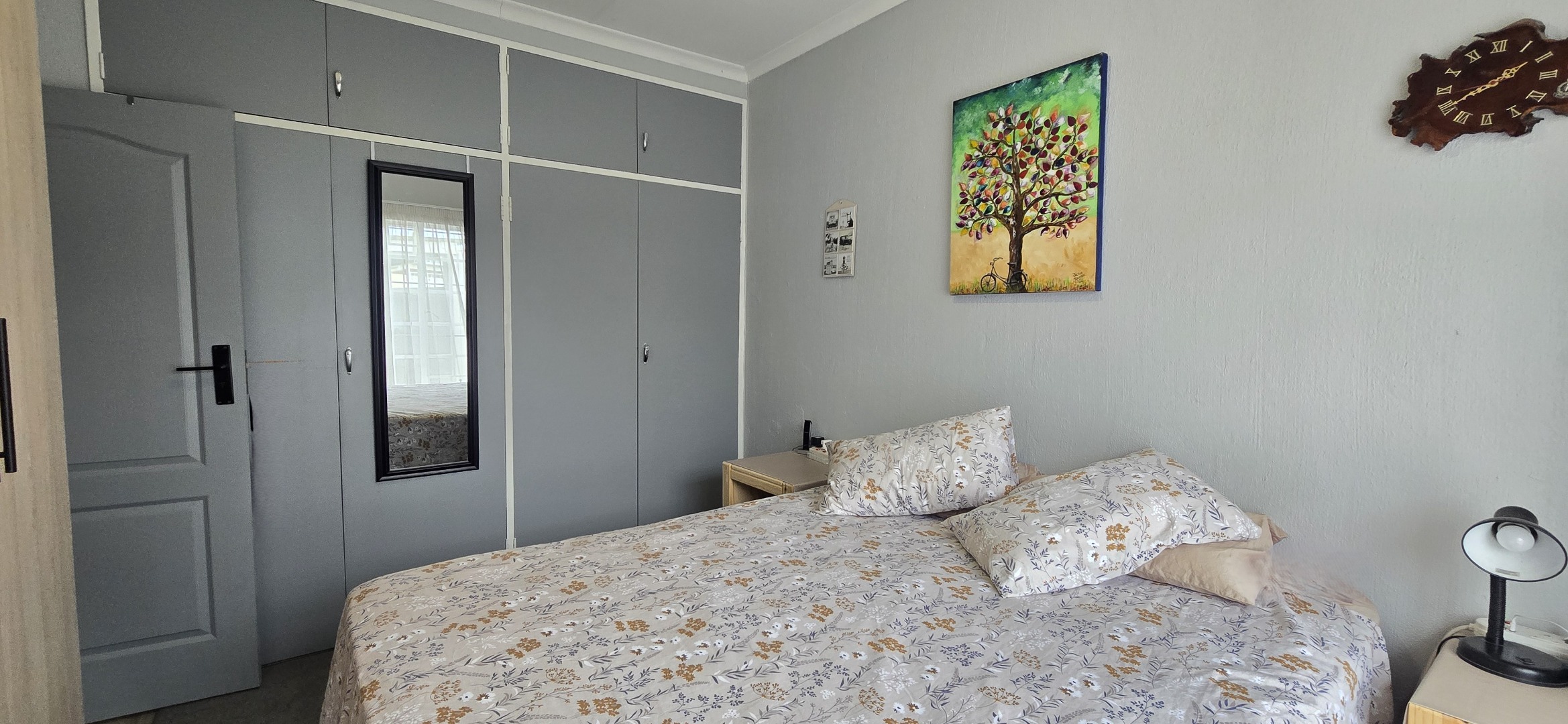 • Spacious main bedroom with tiled floors and built-in cupboards