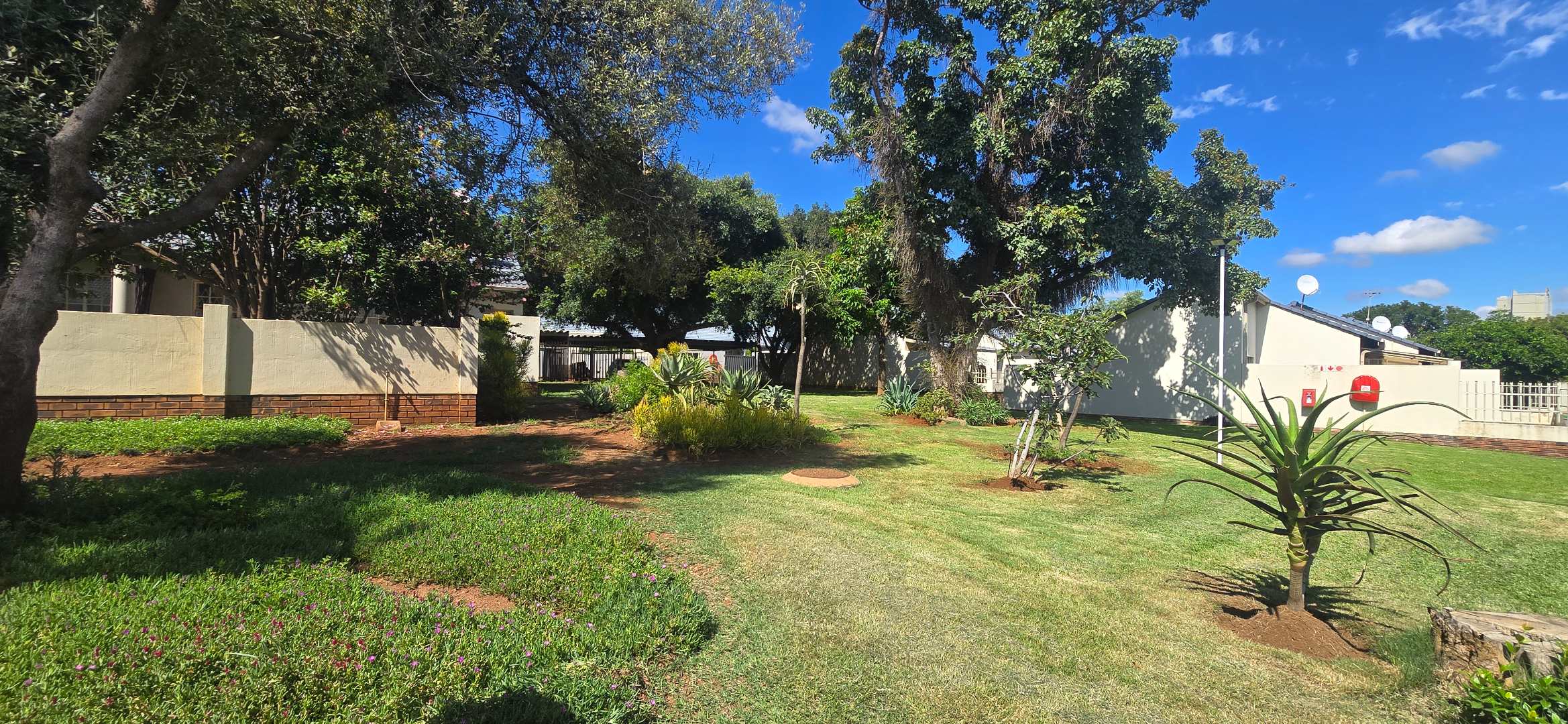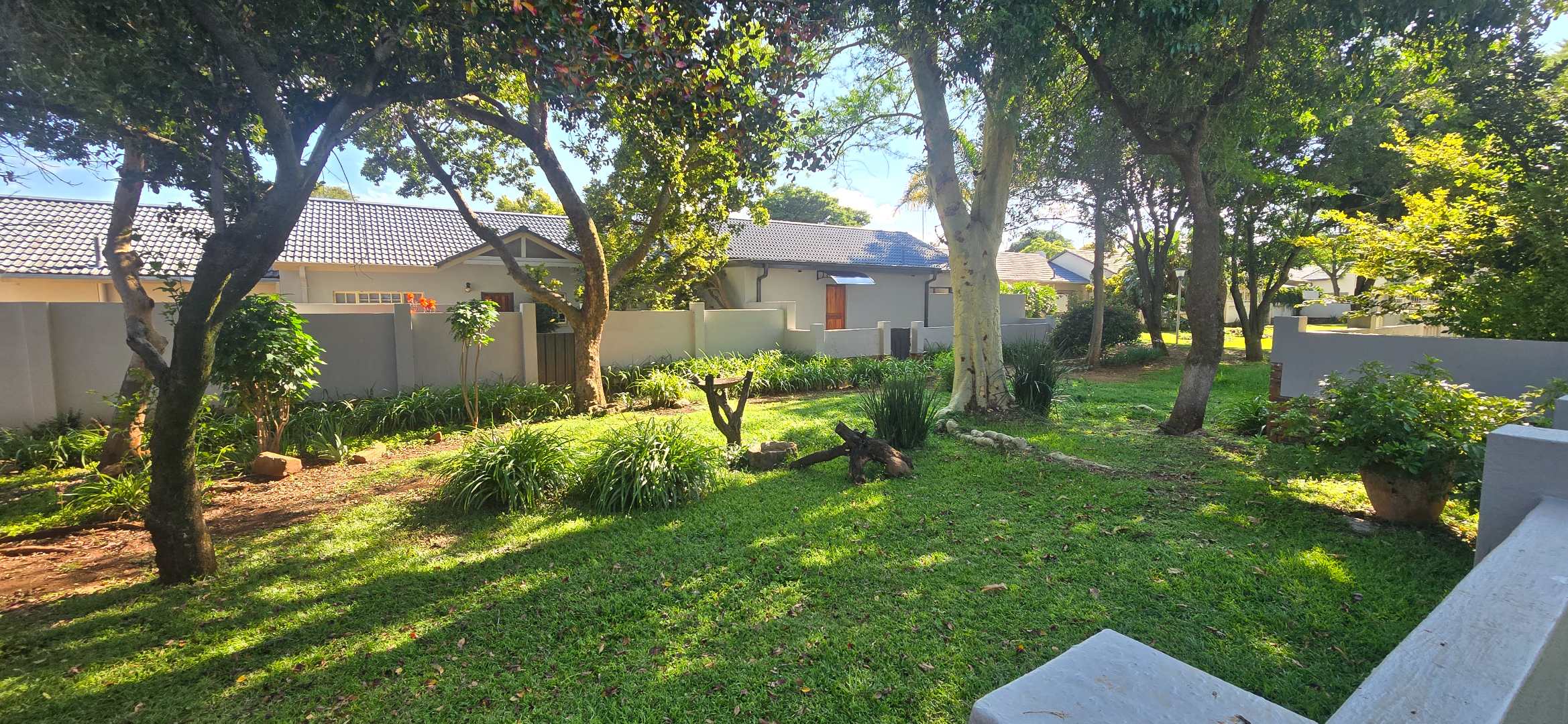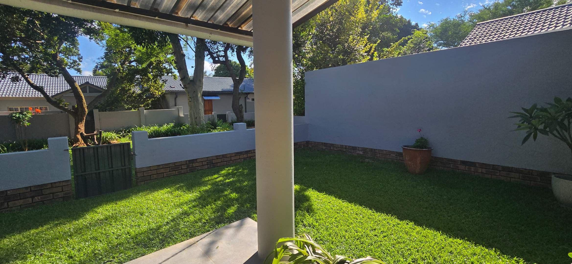 • Well-maintained garden with a private gate opening onto the complex’s landscaped gardens