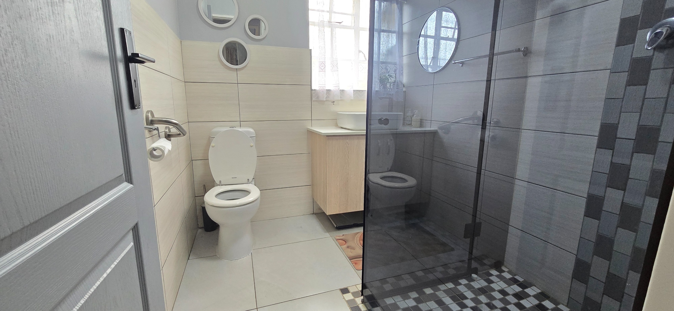 • Modern bathroom with modern finishes: shower, toilet and basin