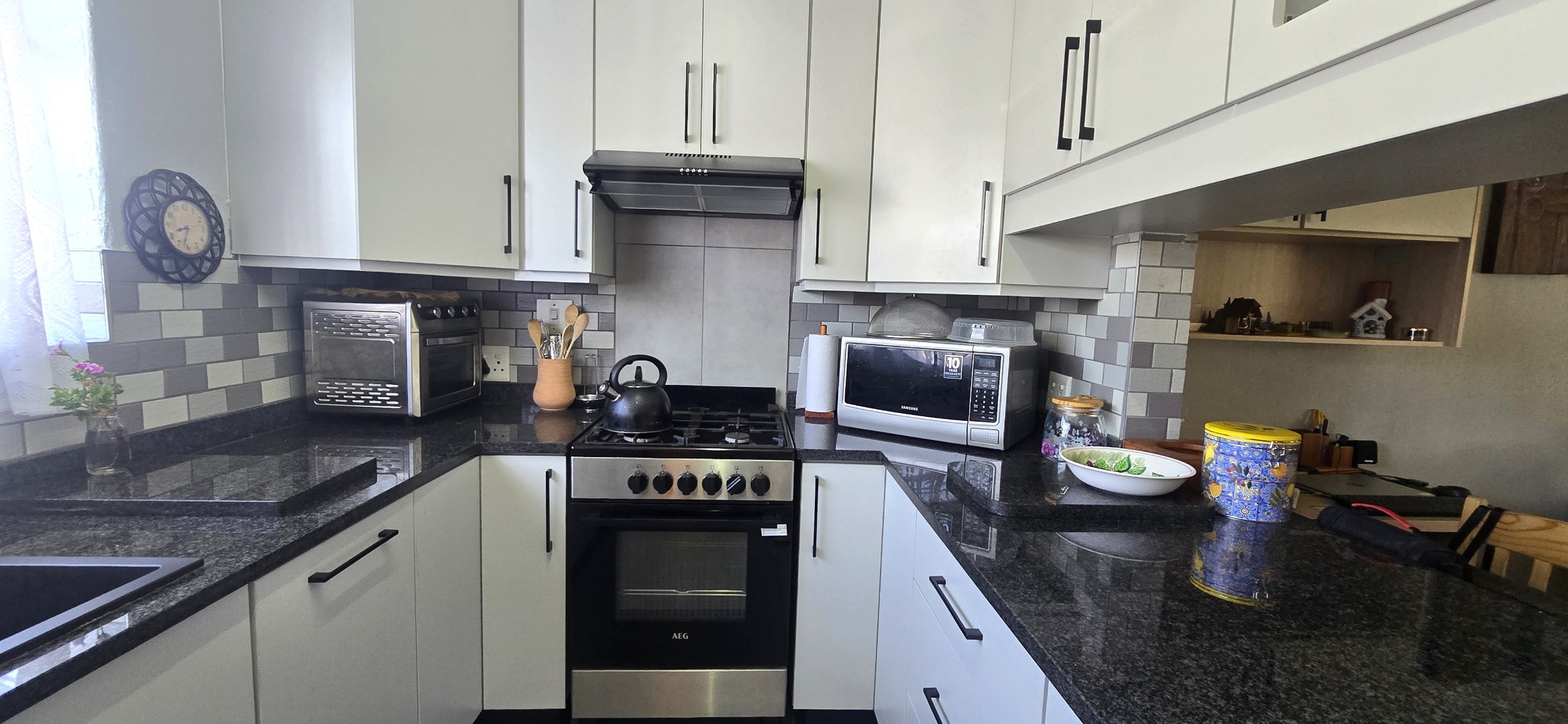 • Granite countertops and ample cupboard space
