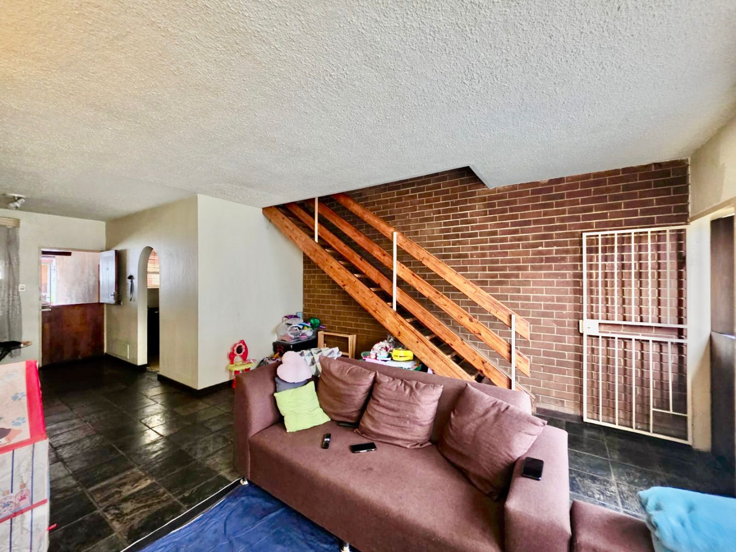 Discover a promising opportunity within the established suburban enclave of Kilner Park, Pretoria. This residential sale offers a two-bedroom, one-bathroom home situated within a well-maintained complex, presenting an ideal canvas for those looking to infuse their personal style and modern updates into a property. Upon arrival, the property immediately conveys a sense of security and order, featuring a robust palisade entrance gate and a paved brick driveway leading to the light-colored multi-unit buildings. The exterior boasts well-maintained green lawns and landscaping, contributing to a pleasant first impression and enhancing the overall kerb appeal of the complex. Step inside to an interior that, while functional, awaits a creative vision. The living space is characterized by an open-plan layout, allowing for flexible arrangement and a sense of connectivity. A prominent wooden staircase serves as a central feature, leading to the upper level, and an exposed brick wall adds a touch of character. Natural light streams in through multiple windows, illuminating the space and highlighting the potential for a contemporary transformation. The existing dark floor tiles and textured walls provide a foundation ready for modern finishes and a refreshed aesthetic. The home comprises two comfortable bedrooms, each benefiting from ample natural light. One bedroom features practical built-in wooden wardrobes, offering convenient storage solutions. Both bedrooms include ceiling fans for comfort and security bars on the windows for peace of mind. The single bathroom, equipped with a bathtub and toilet, features white tiled walls and an arched window. While currently functional, it presents an excellent opportunity for a complete renovation to introduce modern fixtures, updated tiling, and a fresh, clean design. Additional features include a single garage, providing secure parking and extra storage. The property benefits from a garden area, offering a private outdoor space. Security is enhanced by a fence, an access gate, and electric fencing, ensuring a secure living environment within the complex. This home is perfectly positioned for those seeking to invest in a property with significant potential for value appreciation through thoughtful renovation. Kilner Park is a desirable suburban area in Pretoria, known for its tranquil atmosphere and convenient access to local amenities, schools, and major transport routes. It offers a balanced lifestyle, combining residential comfort with urban accessibility, making it an attractive location for homeowners. Key Features: * 2 Bedrooms, 1 Bathroom * 1 Garage * Open-plan living area with wooden staircase * Exposed brick feature wall * Natural light throughout * Gated complex with electric fencing * Paved driveway and garden * Ideal renovation opportunity * Suburban Kilner Park location