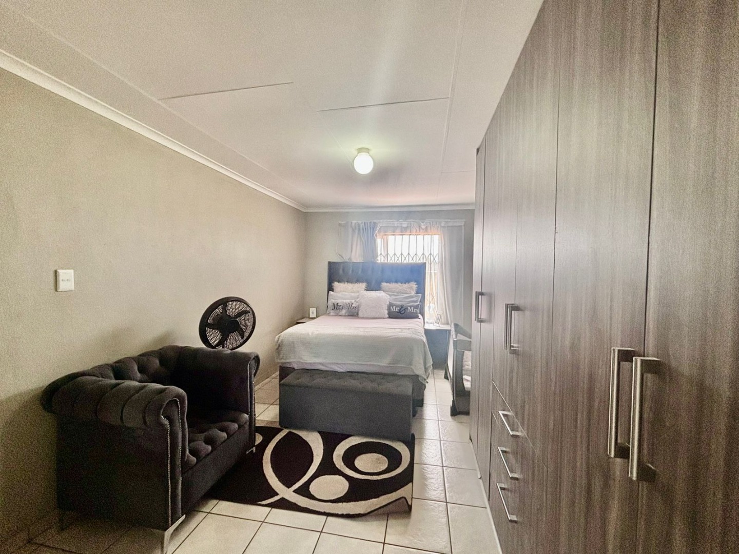 Security is a priority, with features including an access gate, electric fencing, and robust security gates and burglar bars on windows and doors, ensuring peace of mind within this complex setting. Kirkney offers a convenient suburban lifestyle in Pretoria, making this an ideal family home.