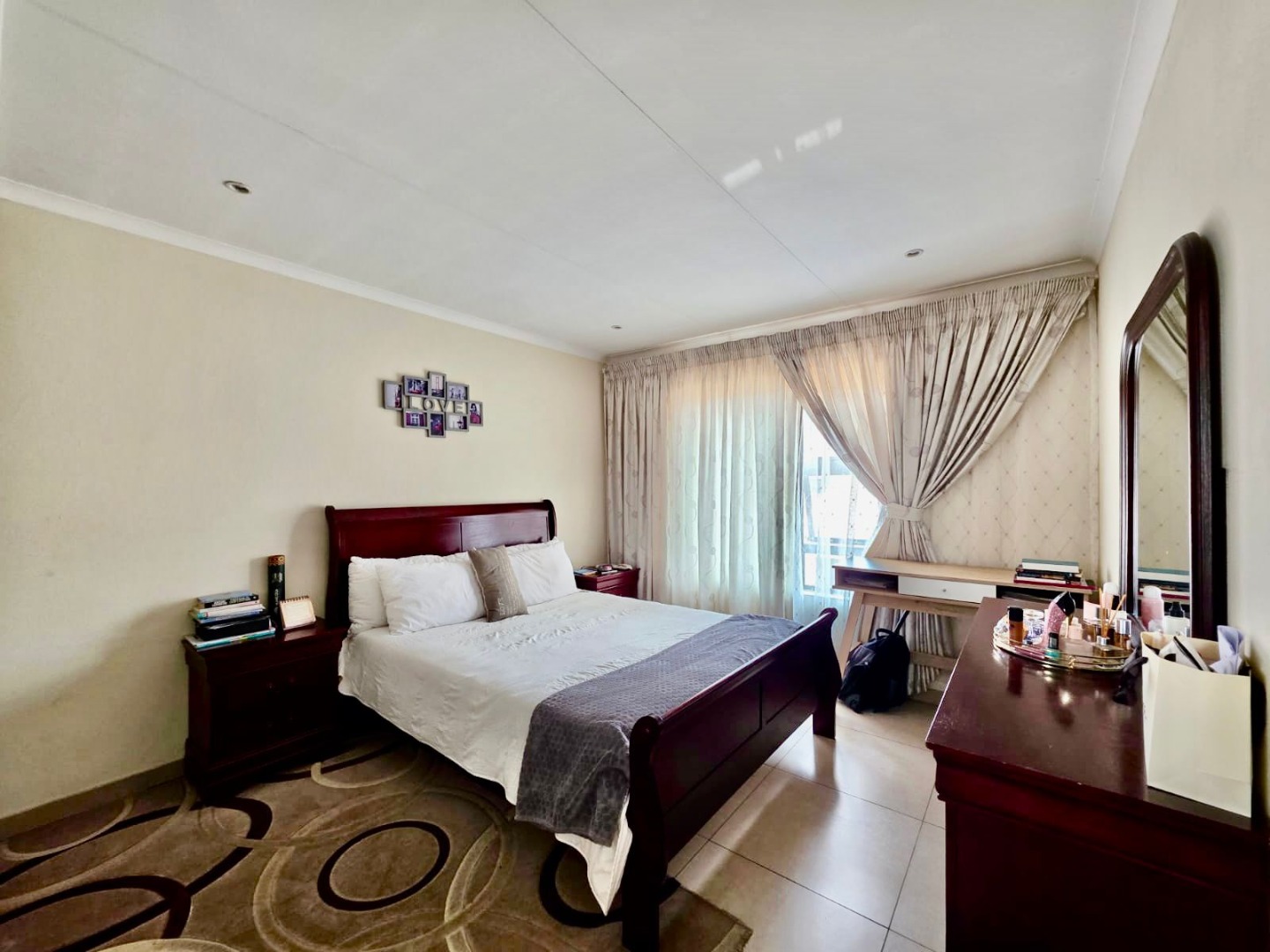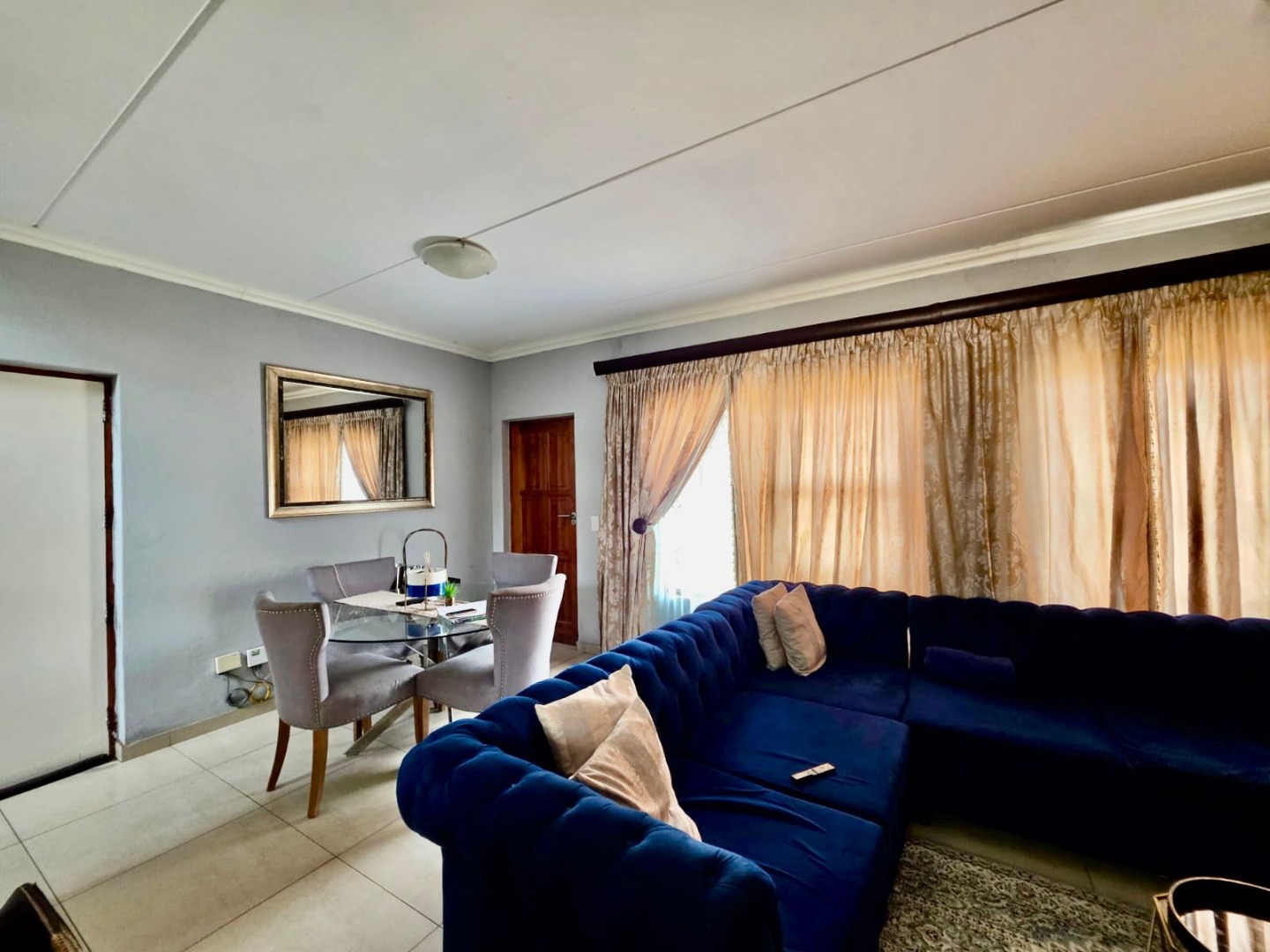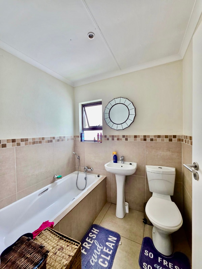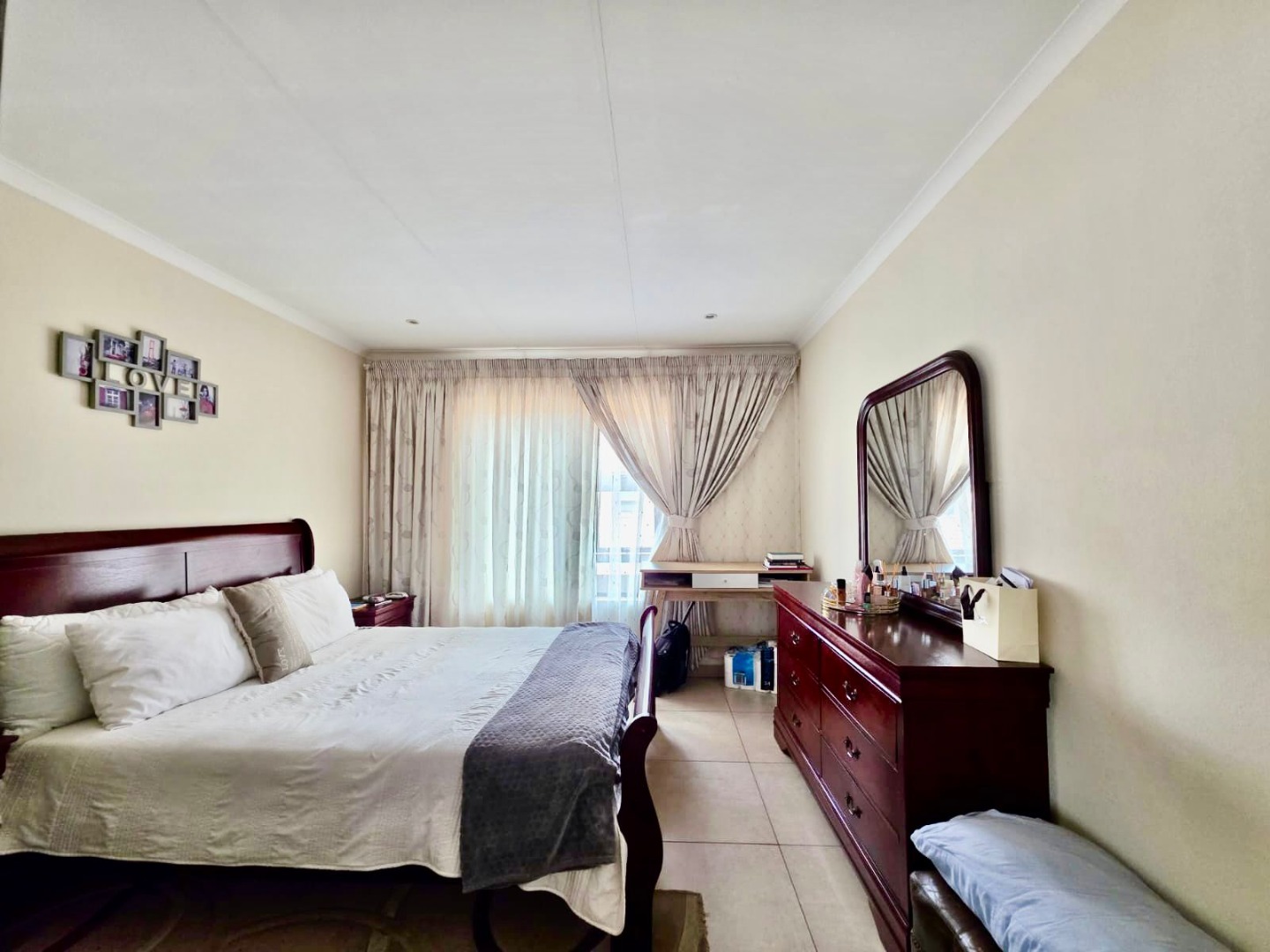This distinguished two-story residence, ideally situated in the desirable suburban enclave of Montana, Pretoria, presents an exceptional opportunity for discerning buyers seeking a harmonious blend of comfort and contemporary living. The property’s exterior, characterized by a peach/beige finish and classic terracotta roof tiles, offers a welcoming aesthetic, complemented by modern window frames and a double garage with dark brown doors, accessible via a paved driveway. Upon entry, residents are greeted by an expansive open-plan living environment, meticulously designed to facilitate seamless interaction between the lounge, dining area, and a contemporary kitchen. The kitchen stands as a focal point, featuring elegant light wood-grain cabinetry, dark granite countertops, and a stylish tiled backsplash. It is comprehensively equipped with stainless steel appliances, including an integrated oven, hob, and extractor fan, alongside a built-in microwave. A functional breakfast bar extends from the main counter, providing an informal dining option, while a dedicated dining area accommodates a glass table, perfect for formal gatherings. The living space is further enhanced by a vibrant blue sectional sofa and a tiled feature wall, creating an inviting atmosphere. The residence offers three generously proportioned bedrooms, ensuring ample private accommodation. The master suite benefits from a luxurious en-suite bathroom, providing a private sanctuary. An additional well-appointed bathroom serves the remaining bedrooms, and a convenient guest toilet is located on the ground floor, catering to both residents and visitors. The property's floor plan, spanning 137.00 square meters, is thoughtfully laid out to maximize space and functionality, with tiled flooring extending throughout the main living areas. Exterior amenities include a double garage and a paved driveway, providing secure parking for multiple vehicles. The presence of a garden enhances the outdoor appeal, offering a private space for relaxation or recreation. Situated within a security complex, the property benefits from enhanced safety measures, including an access gate, contributing to a secure and tranquil living environment. Montana, a prominent metropolitan suburb in Pretoria, South Africa, offers a desirable lifestyle characterized by its accessibility to essential amenities, reputable educational institutions, and various retail and recreational facilities. This location ensures convenience without compromising on the suburban tranquility. Key Features of this Residence: * Three Bedrooms * Two Bathrooms (One En-suite) * One Guest Toilet * Open-Plan Living, Dining, and Kitchen * Modern Kitchen with Granite Countertops and Stainless Steel Appliances * Double Garage * Paved Driveway * Garden * Located within a Security Complex with Access Gate * 137 sqm Floor Size