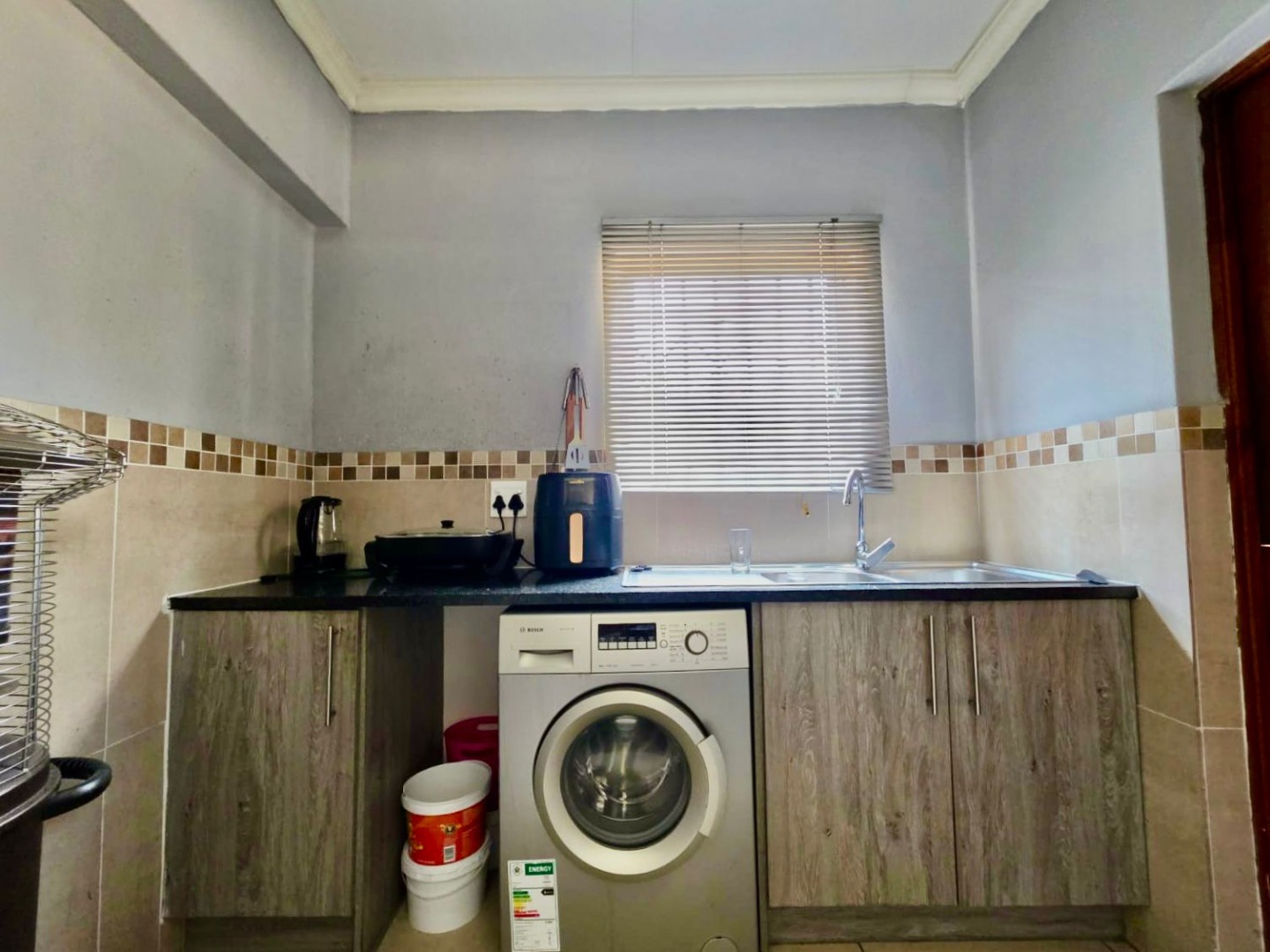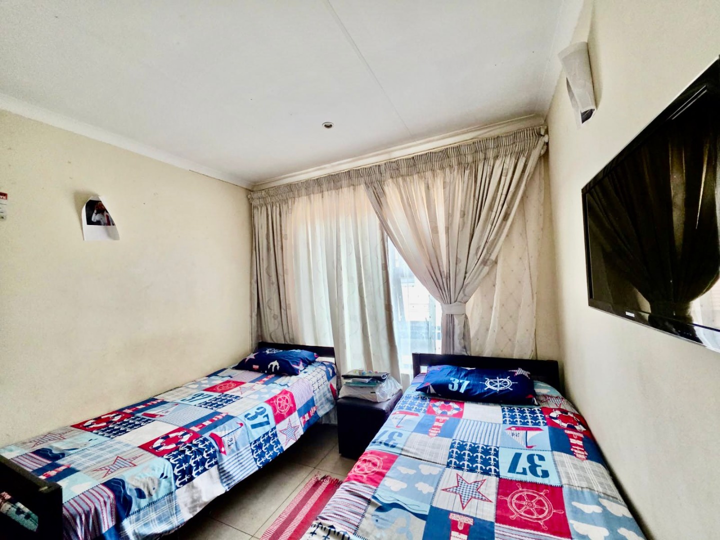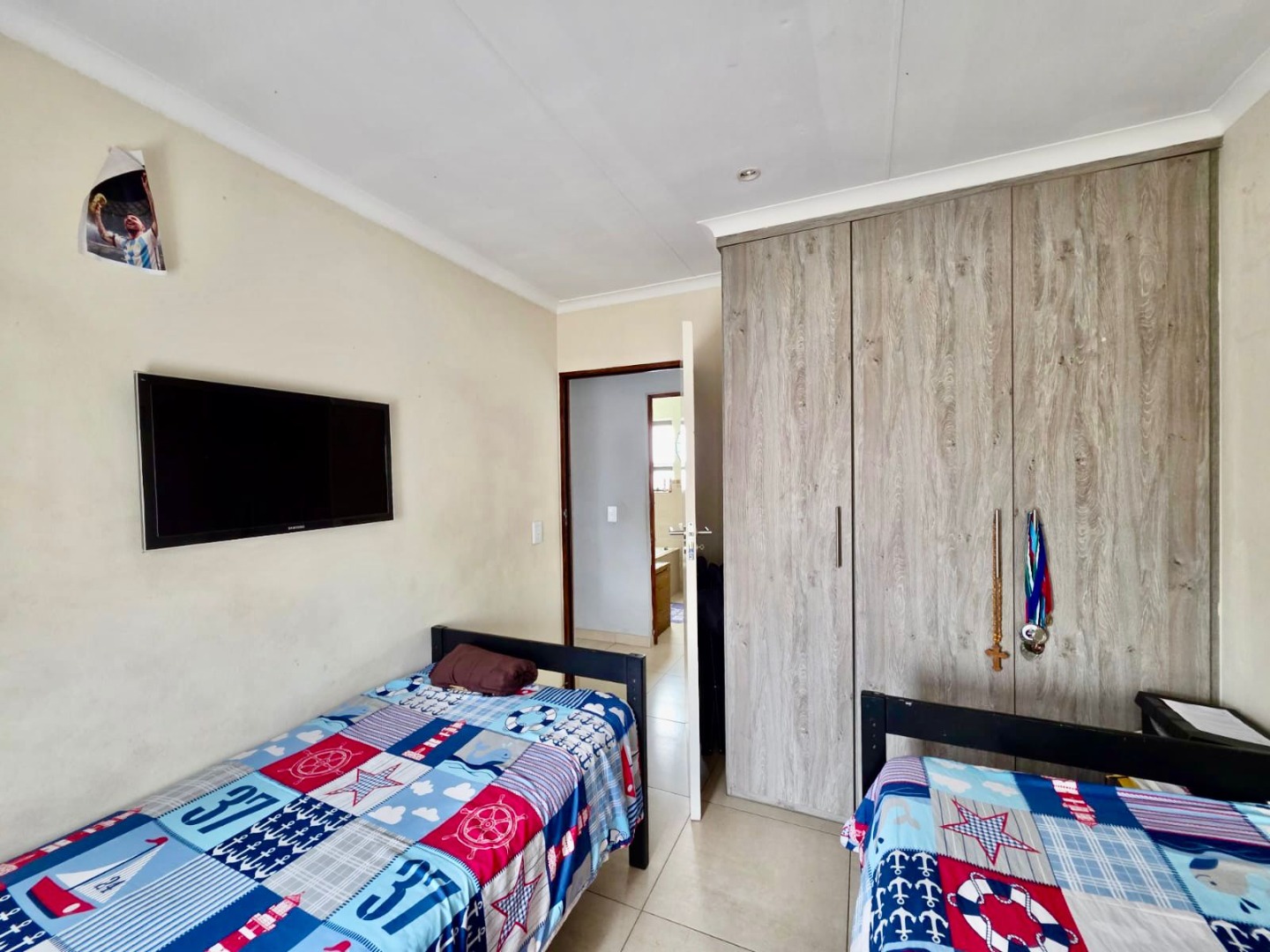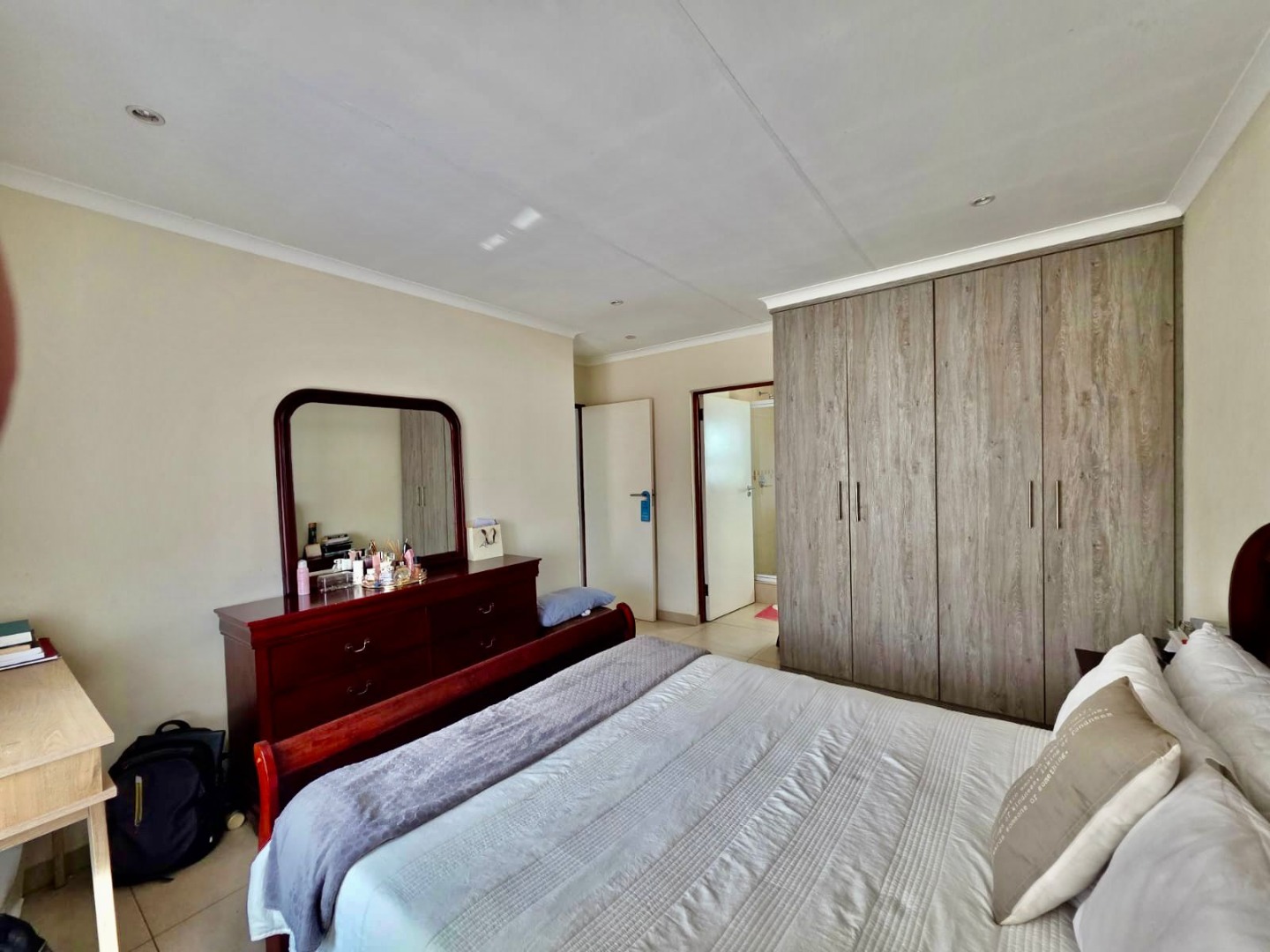 This distinguished two-story residence, ideally situated in the desirable suburban enclave of Montana, Pretoria, presents an exceptional opportunity for discerning buyers seeking a harmonious blend of comfort and contemporary living. The property’s exterior, characterized by a peach/beige finish and classic terracotta roof tiles, offers a welcoming aesthetic, complemented by modern window frames and a double garage with dark brown doors, accessible via a paved driveway. Upon entry, residents are greeted by an expansive open-plan living environment, meticulously designed to facilitate seamless interaction between the lounge, dining area, and a contemporary kitchen. The kitchen stands as a focal point, featuring elegant light wood-grain cabinetry, dark granite countertops, and a stylish tiled backsplash. It is comprehensively equipped with stainless steel appliances, including an integrated oven, hob, and extractor fan, alongside a built-in microwave. A functional breakfast bar extends from the main counter, providing an informal dining option, while a dedicated dining area accommodates a glass table, perfect for formal gatherings. The living space is further enhanced by a vibrant blue sectional sofa and a tiled feature wall, creating an inviting atmosphere. The residence offers three generously proportioned bedrooms, ensuring ample private accommodation. The master suite benefits from a luxurious en-suite bathroom, providing a private sanctuary. An additional well-appointed bathroom serves the remaining bedrooms, and a convenient guest toilet is located on the ground floor, catering to both residents and visitors. The property's floor plan, spanning 137.00 square meters, is thoughtfully laid out to maximize space and functionality, with tiled flooring extending throughout the main living areas. Exterior amenities include a double garage and a paved driveway, providing secure parking for multiple vehicles. The presence of a garden enhances the outdoor appeal, offering a private space for relaxation or recreation. Situated within a security complex, the property benefits from enhanced safety measures, including an access gate, contributing to a secure and tranquil living environment. Montana, a prominent metropolitan suburb in Pretoria, South Africa, offers a desirable lifestyle characterized by its accessibility to essential amenities, reputable educational institutions, and various retail and recreational facilities. This location ensures convenience without compromising on the suburban tranquility. Key Features of this Residence: * Three Bedrooms * Two Bathrooms (One En-suite) * One Guest Toilet * Open-Plan Living, Dining, and Kitchen * Modern Kitchen with Granite Countertops and Stainless Steel Appliances * Double Garage * Paved Driveway * Garden * Located within a Security Complex with Access Gate * 137 sqm Floor Size