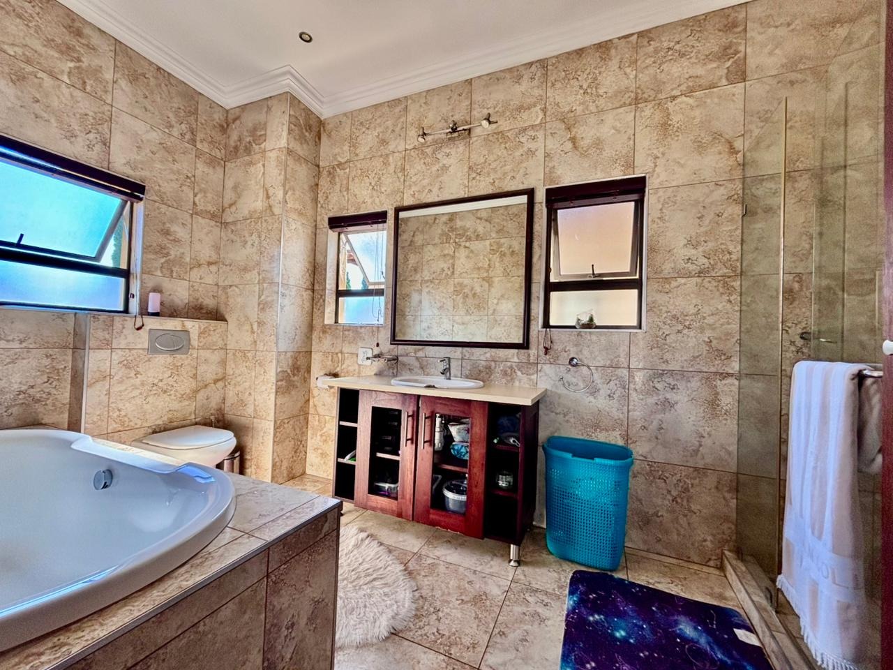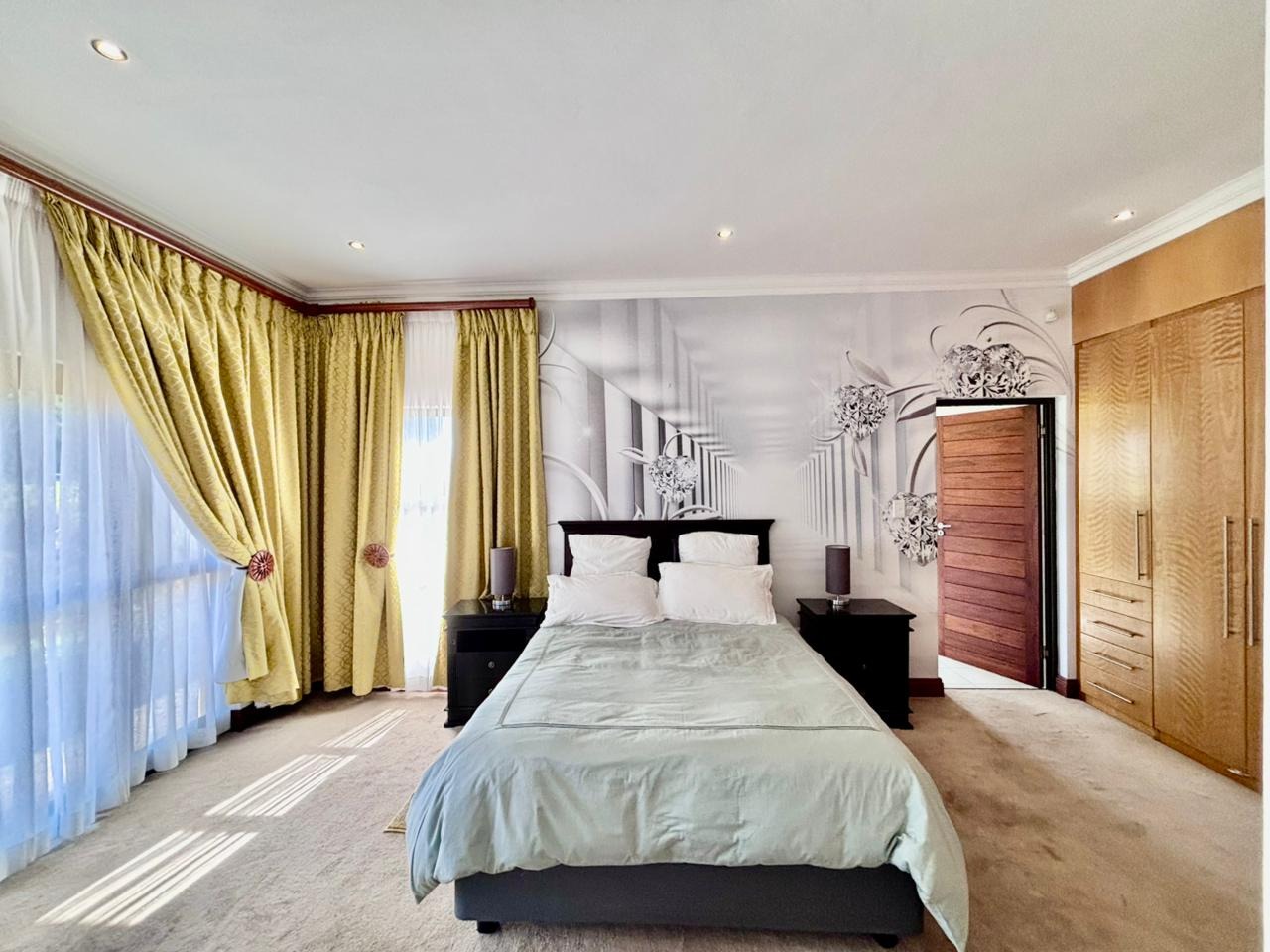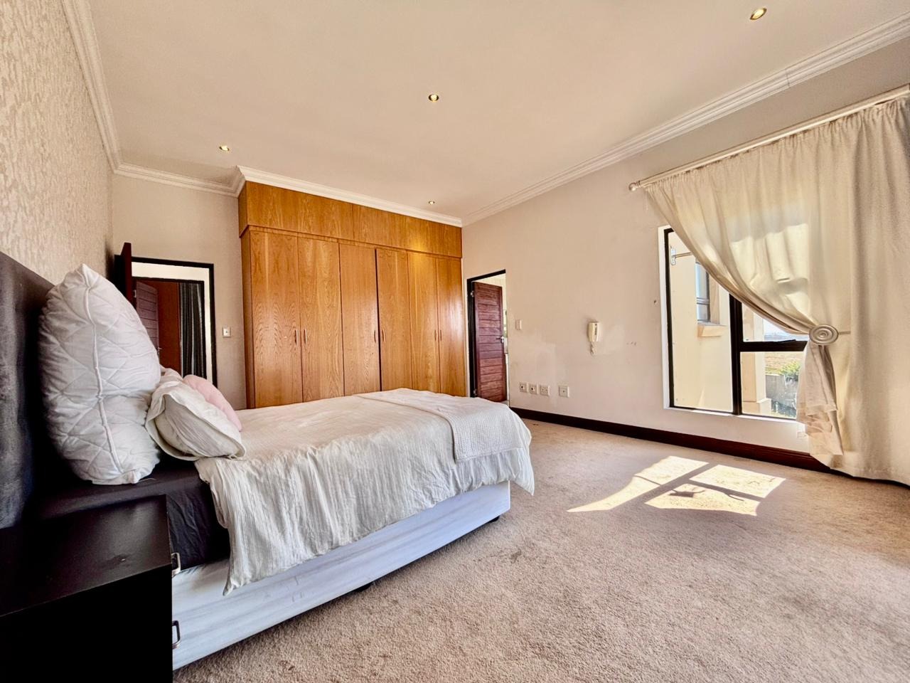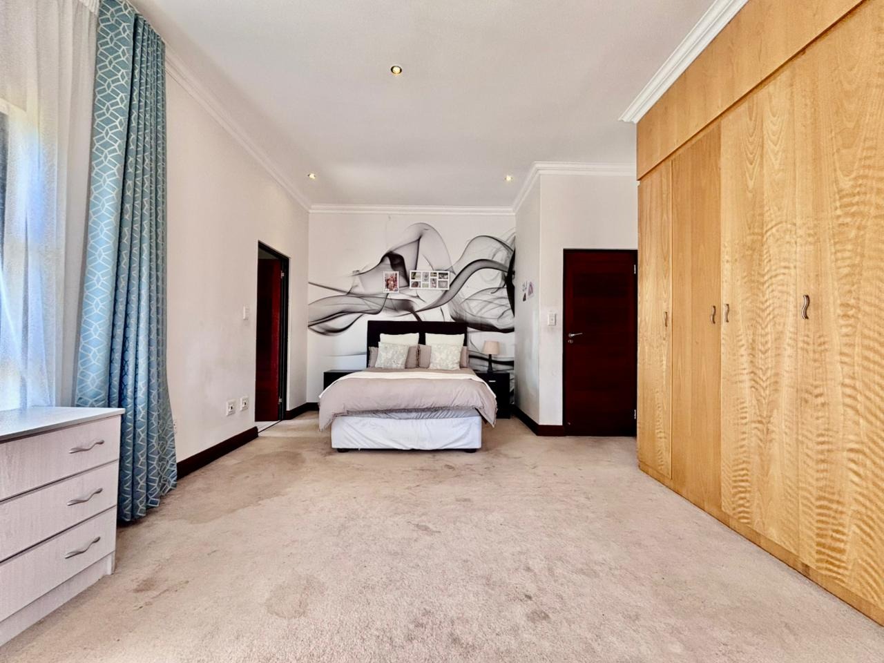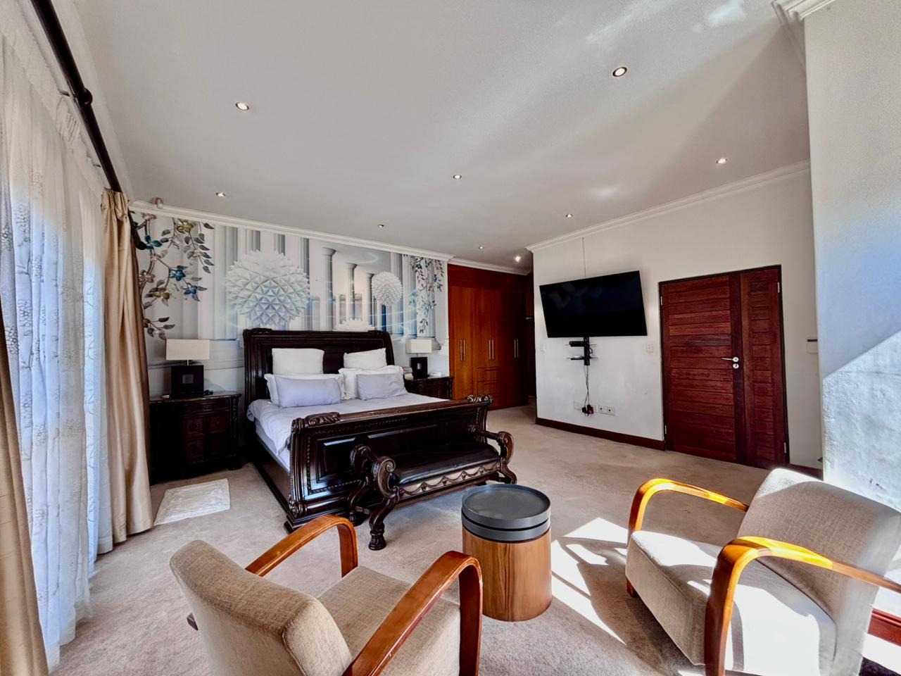 Nestled within the prestigious Mooikloof Glen security estate in Pretoria, South Africa, this magnificent residence epitomises opulent living on an expansive 8785 sqm erf. From the moment of arrival, the property's commanding kerb appeal is undeniable, featuring a grand Mediterranean-inspired architectural style with a classic terracotta roof and a light-coloured facade. An extensive paved circular driveway, adorned with mature palm trees and a decorative water feature, leads to a stately porte-cochère entrance, offering both convenience and an impressive welcome. The elevated position affords distant scenic views, enhancing the sense of exclusivity and tranquility. Step inside to discover an interior designed for grandeur and sophisticated comfort. The double-volume entrance hall is a breathtaking spectacle, boasting high ceilings, polished tile flooring with an elegant medallion, and a dramatic double curved staircase with modern railings, bathed in natural light from soaring windows. This central architectural marvel sets the tone for the home's luxurious flow. The residence offers an abundance of living spaces, including three distinct lounges and a formal dining room, providing versatile settings for both intimate gatherings and lavish entertaining. The presence of two fully equipped kitchens ensures culinary excellence and convenience, while a dedicated study offers a private sanctuary for work or contemplation. The open-plan design seamlessly connects these magnificent spaces, fostering an atmosphere of effortless elegance. Accommodation is nothing short of exceptional, with five generously proportioned bedrooms, each a private retreat. Five of these bedrooms boast luxurious en-suite bathrooms, complemented by an additional guest toilet, ensuring ultimate comfort and privacy for residents and guests alike. The bedrooms are appointed with extensive built-in wooden wardrobes, offering ample storage, and are illuminated by large windows and modern recessed lighting. The bathrooms are spacious and light-filled, featuring separate glass-enclosed showers, built-in tiled bathtubs, and contemporary vanities, creating spa-like environments within the home. Beyond the interiors, the estate unfolds into a resort-like outdoor paradise. A captivating tiered swimming pool complex invites relaxation and recreation, surrounded by multiple balconies and a spacious patio perfect for al fresco dining and entertaining, complete with a built-in braai. The meticulously manicured garden, sustained by an irrigation system and water tanks, provides a lush backdrop to this outdoor haven. Practical amenities include six garages and ten additional parking spaces, ensuring ample accommodation for vehicles. The property further benefits from staff quarters, domestic rooms, and a second house, presenting exceptional potential for dual living or accommodating a large retinue. Residents also enjoy access to a club house within the estate. Security is paramount within this esteemed security estate, featuring 24-hour security, an access gate, intercom system, and security gates, providing peace of mind. The property is equipped with a sprinkler system, ensuring the pristine condition of the grounds. This is more than a home; it is a lifestyle statement, offering unparalleled luxury and comfort in a secure and prestigious setting. Key Features: * 5 Bedrooms, 6.5 Bathrooms (5 En-suite) * 3 Lounges, 1 Dining Room, 2 Kitchens * Grand Double Curved Staircase Entrance Hall * Tiered Swimming Pool & Patio with Built-in Braai * 6 Garages & 10 Parking Spaces * Staff Quarters, Domestic Rooms & Second House * Study, Balcony, Pantry, Guest Toilet * Security Estate with 24-Hour Security & Access Gate * Erf Size: 8785 sqm, Floor Size: 1182 sqm