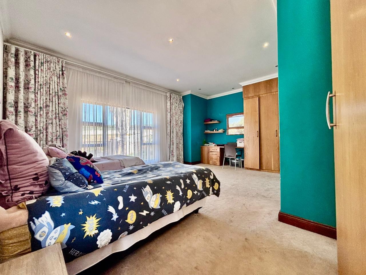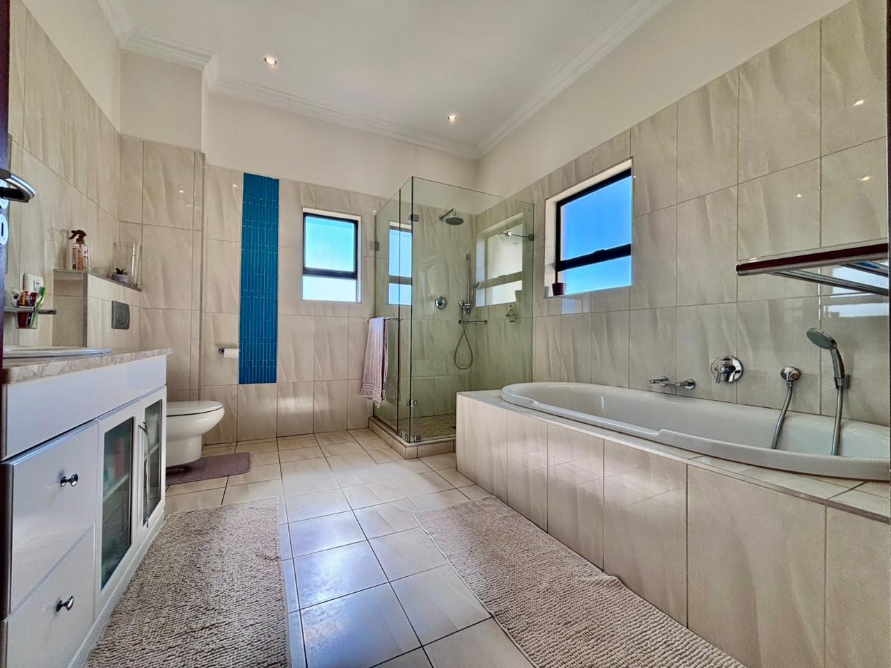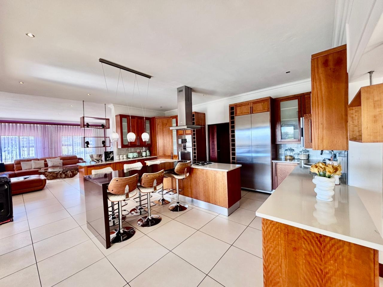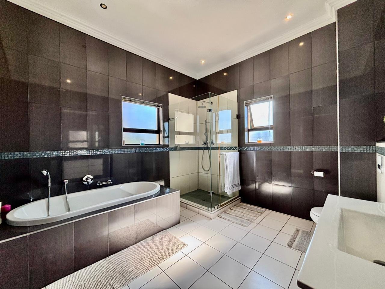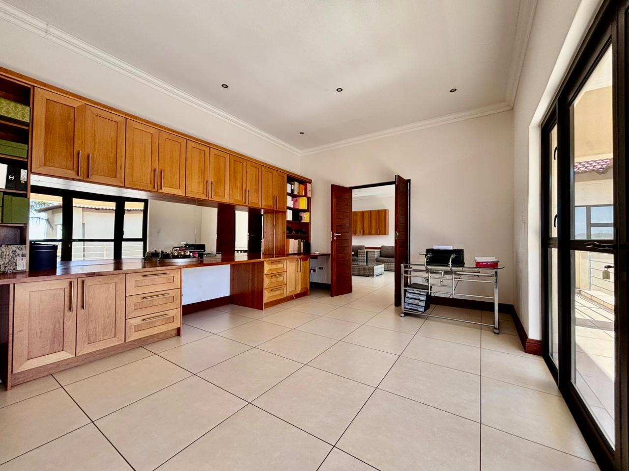 Nestled within the prestigious Mooikloof Glen security estate in Pretoria, South Africa, this magnificent residence epitomises opulent living on an expansive 8785 sqm erf. From the moment of arrival, the property's commanding kerb appeal is undeniable, featuring a grand Mediterranean-inspired architectural style with a classic terracotta roof and a light-coloured facade. An extensive paved circular driveway, adorned with mature palm trees and a decorative water feature, leads to a stately porte-cochère entrance, offering both convenience and an impressive welcome. The elevated position affords distant scenic views, enhancing the sense of exclusivity and tranquility. Step inside to discover an interior designed for grandeur and sophisticated comfort. The double-volume entrance hall is a breathtaking spectacle, boasting high ceilings, polished tile flooring with an elegant medallion, and a dramatic double curved staircase with modern railings, bathed in natural light from soaring windows. This central architectural marvel sets the tone for the home's luxurious flow. The residence offers an abundance of living spaces, including three distinct lounges and a formal dining room, providing versatile settings for both intimate gatherings and lavish entertaining. The presence of two fully equipped kitchens ensures culinary excellence and convenience, while a dedicated study offers a private sanctuary for work or contemplation. The open-plan design seamlessly connects these magnificent spaces, fostering an atmosphere of effortless elegance. Accommodation is nothing short of exceptional, with five generously proportioned bedrooms, each a private retreat. Five of these bedrooms boast luxurious en-suite bathrooms, complemented by an additional guest toilet, ensuring ultimate comfort and privacy for residents and guests alike. The bedrooms are appointed with extensive built-in wooden wardrobes, offering ample storage, and are illuminated by large windows and modern recessed lighting. The bathrooms are spacious and light-filled, featuring separate glass-enclosed showers, built-in tiled bathtubs, and contemporary vanities, creating spa-like environments within the home. Beyond the interiors, the estate unfolds into a resort-like outdoor paradise. A captivating tiered swimming pool complex invites relaxation and recreation, surrounded by multiple balconies and a spacious patio perfect for al fresco dining and entertaining, complete with a built-in braai. The meticulously manicured garden, sustained by an irrigation system and water tanks, provides a lush backdrop to this outdoor haven. Practical amenities include six garages and ten additional parking spaces, ensuring ample accommodation for vehicles. The property further benefits from staff quarters, domestic rooms, and a second house, presenting exceptional potential for dual living or accommodating a large retinue. Residents also enjoy access to a club house within the estate. Security is paramount within this esteemed security estate, featuring 24-hour security, an access gate, intercom system, and security gates, providing peace of mind. The property is equipped with a sprinkler system, ensuring the pristine condition of the grounds. This is more than a home; it is a lifestyle statement, offering unparalleled luxury and comfort in a secure and prestigious setting. Key Features: * 5 Bedrooms, 6.5 Bathrooms (5 En-suite) * 3 Lounges, 1 Dining Room, 2 Kitchens * Grand Double Curved Staircase Entrance Hall * Tiered Swimming Pool & Patio with Built-in Braai * 6 Garages & 10 Parking Spaces * Staff Quarters, Domestic Rooms & Second House * Study, Balcony, Pantry, Guest Toilet * Security Estate with 24-Hour Security & Access Gate * Erf Size: 8785 sqm, Floor Size: 1182 sqm